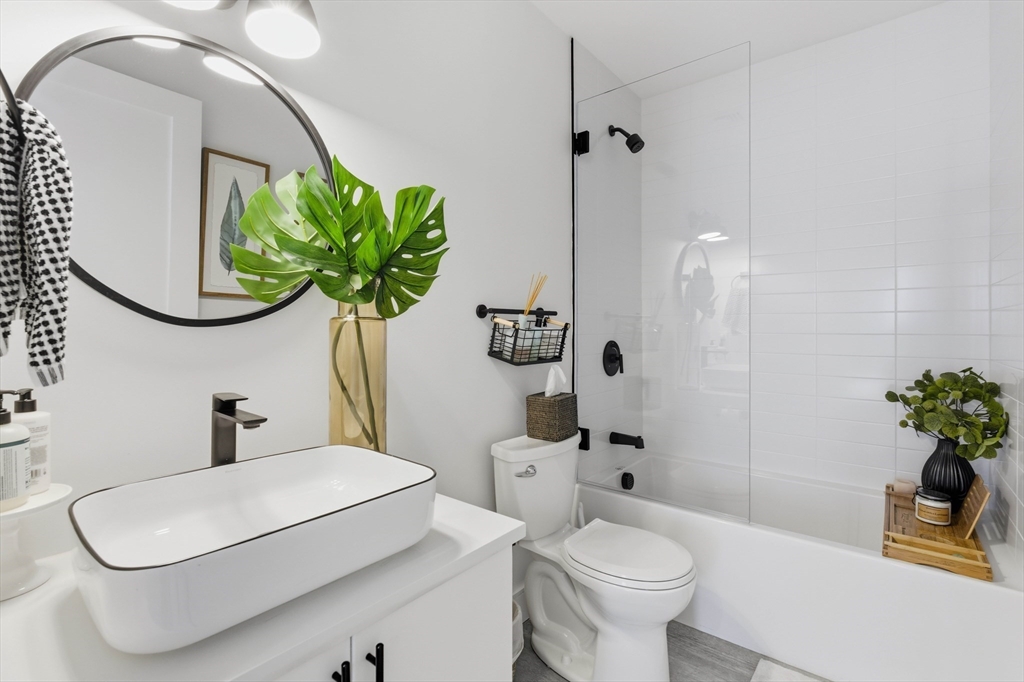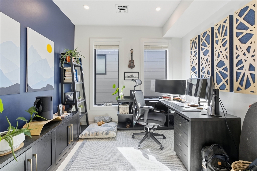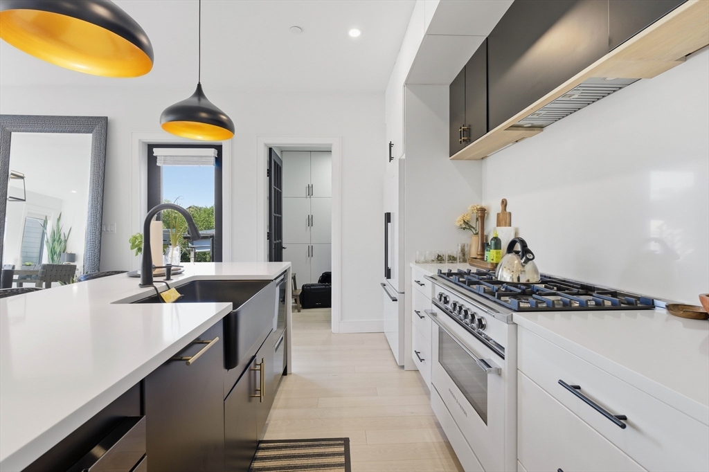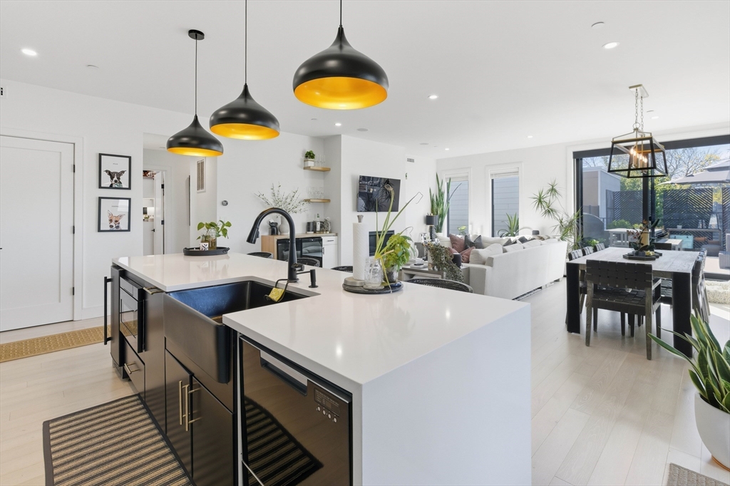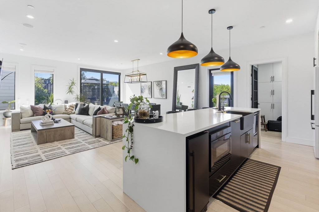 Modern Jeffries Point Penthouse with Private Roof Deck. Experience modern East Boston living in this newer-construction penthouse built in 2021. This 3-bed, 2-bath home offers 1,428 sq ft of living space plus 1,000+ sq ft of private outdoor space, including a roof deck with panoramic city and harbor views. The open layout features a chef’s kitchen with quartz waterfall island, high-end appliances, and a bright living area that opens to a private terrace, perfect for entertaining. The primary suite offers dual closets and a spa-like bath with glass shower. Two additional bedrooms, one with a private deck, provide space for guests or an office. Enjoy hardwood floors, recessed lighting, built-in sound, in-unit laundry, and garage parking. Minutes from Harborwalk, East Boston Greenway, parks, and waterfront trails, plus neighborhood favorites like Starbucks, The Quiet Few, Mida, ReelHouse, and Santarpio’s. Quick access to Maverick Station, East Boston Ferry, and major highways.