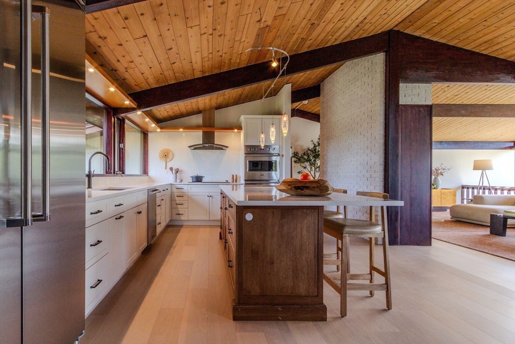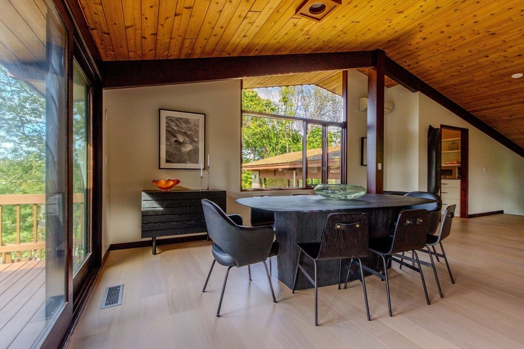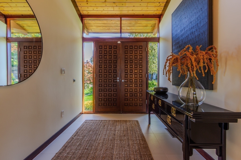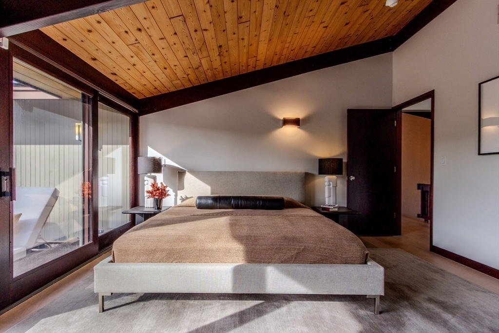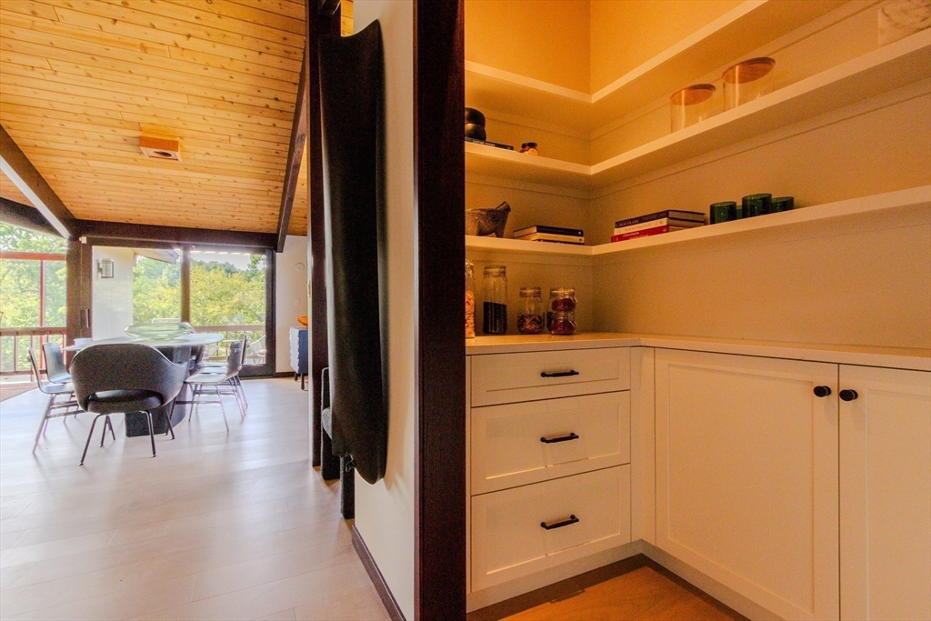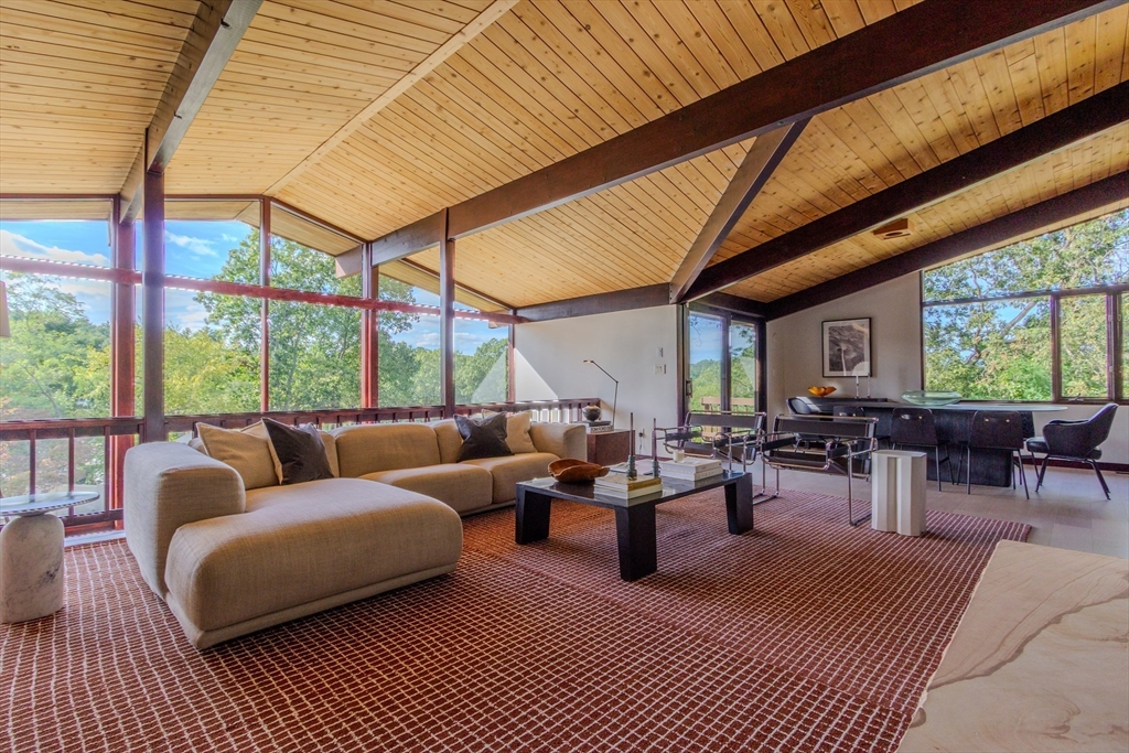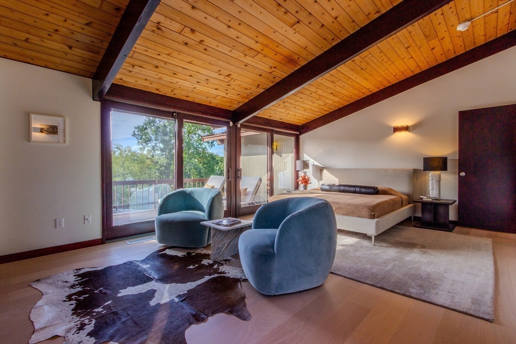 Spectacular new renovation by noted builder. This multi-level contemporary home features vaulted ceilings and an open-concept main floor. The updated Viking kitchen with large breakfast island, flows into the living and dining rooms, offering floor-to-ceiling views of the pool, jacuzzi, and fenced yard. A large bonus room, currently a library/game room. The primary suite is open and airy, with a slider to a private deck and a spa-like marble bath with a separate soaking tub, large shower, and double vanity. This floor also includes an additional home office and guest bath. A second family room, three additional bedrooms, a full bath, laundry, and a glass-enclosed sun room complete this level. The walk-out lower level offers an in-law suite or recreation space with a large bedroom, full bath, living area and prep/wet bar built ins, with direct access to the in-ground Gunite pool and yard. Two car garage under.