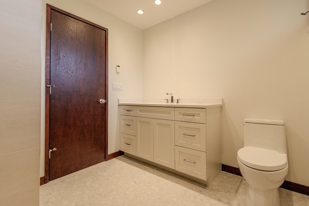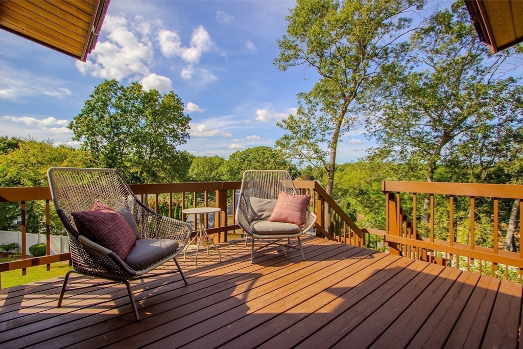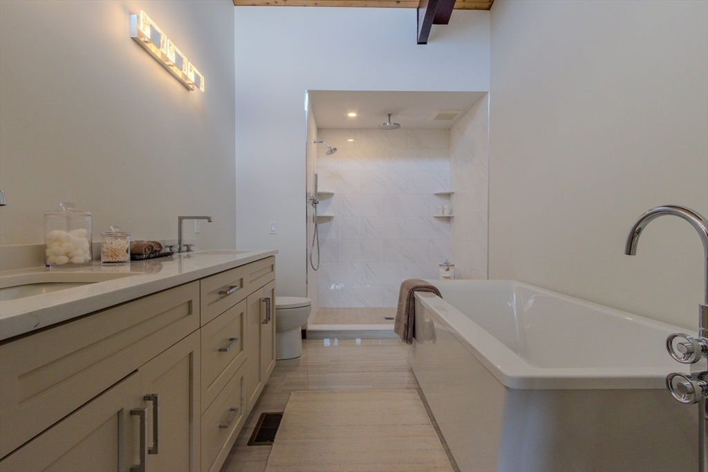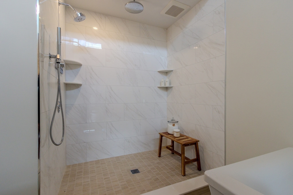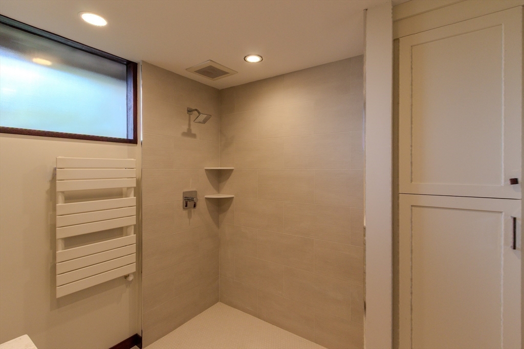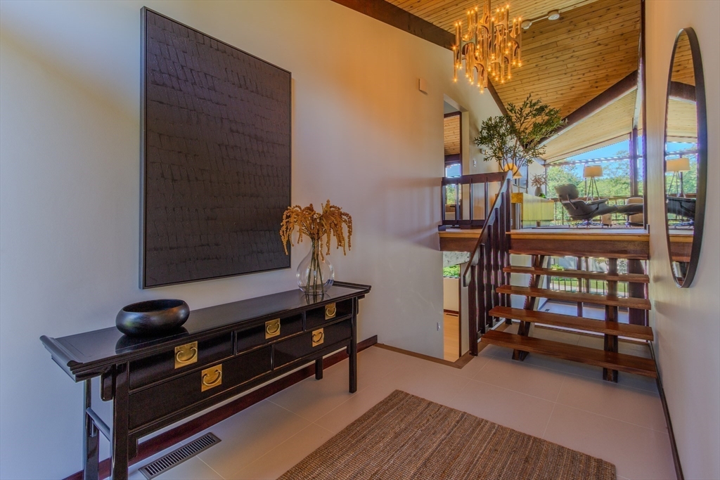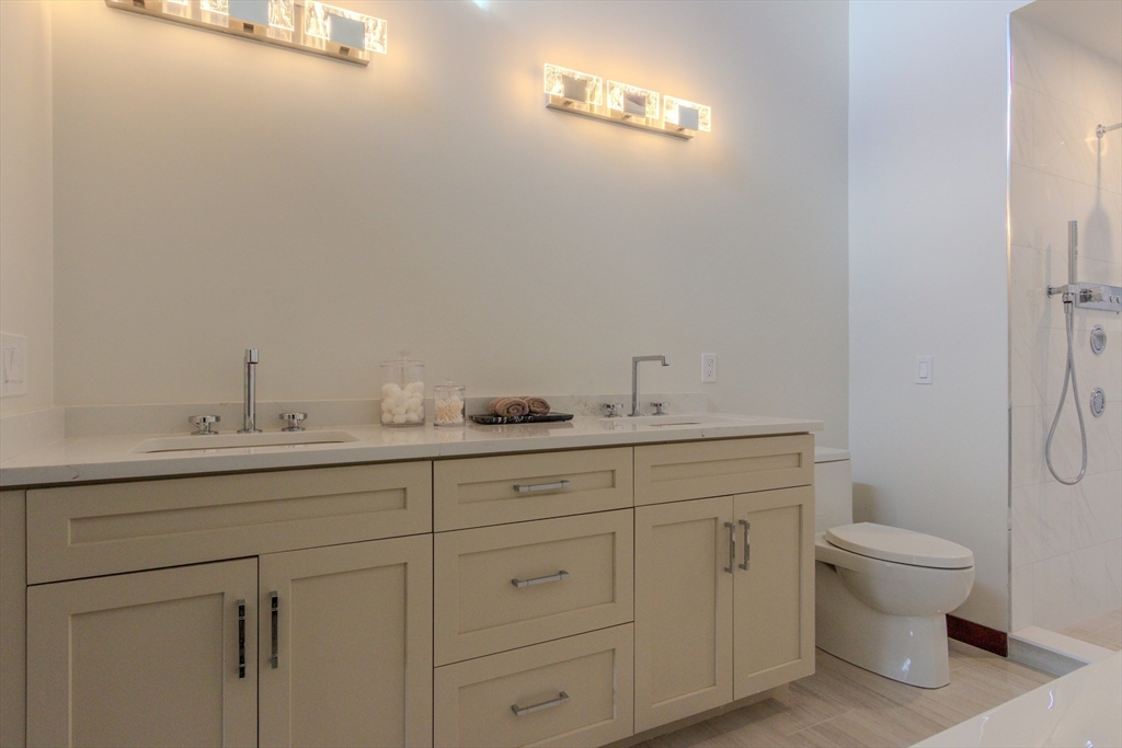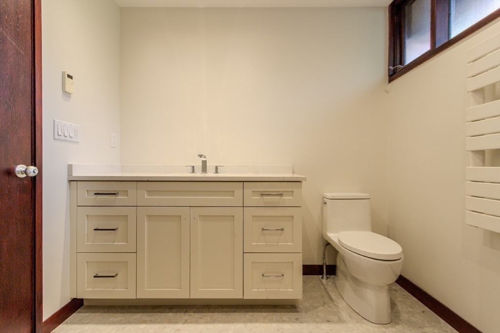 Spectacular new renovation by noted builder. This multi-level contemporary home features vaulted ceilings and an open-concept main floor. The updated Viking kitchen with large breakfast island, flows into the living and dining rooms, offering floor-to-ceiling views of the pool, jacuzzi, and fenced yard. A large bonus room, currently a library/game room. The primary suite is open and airy, with a slider to a private deck and a spa-like marble bath with a separate soaking tub, large shower, and double vanity. This floor also includes an additional home office and guest bath. A second family room, three additional bedrooms, a full bath, laundry, and a glass-enclosed sun room complete this level. The walk-out lower level offers an in-law suite or recreation space with a large bedroom, full bath, living area and prep/wet bar built ins, with direct access to the in-ground Gunite pool and yard. Two car garage under.