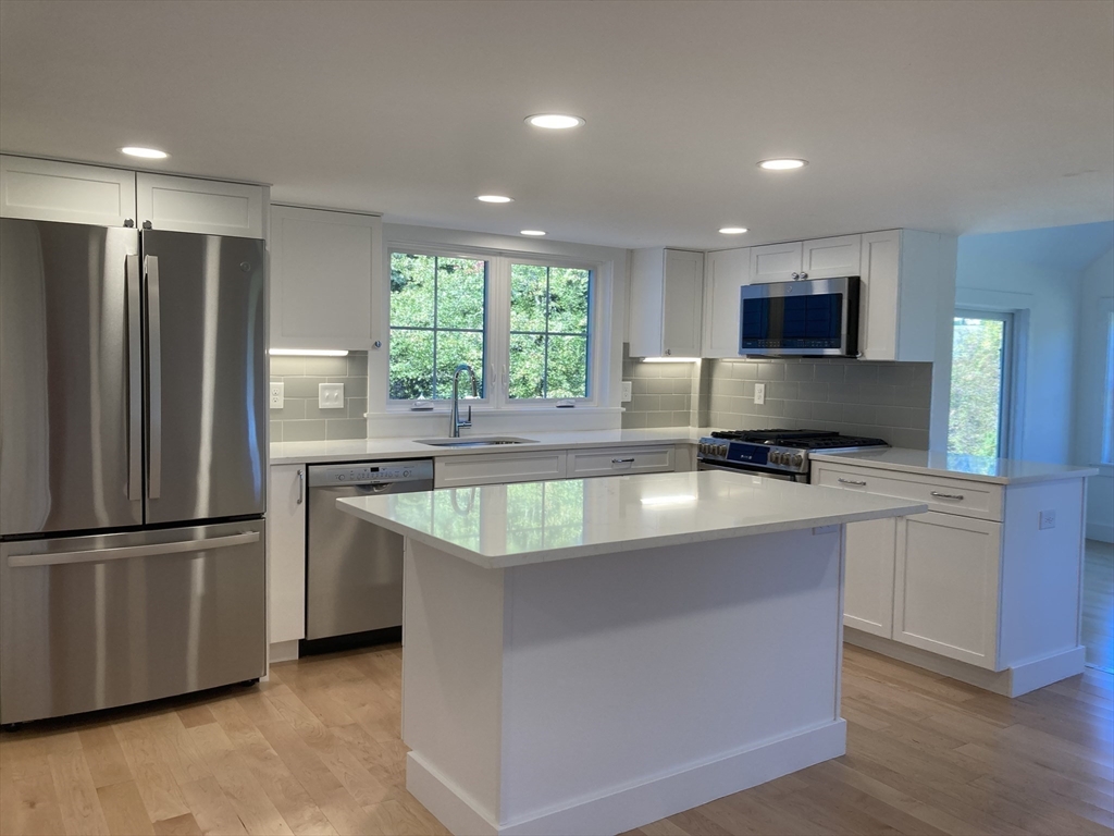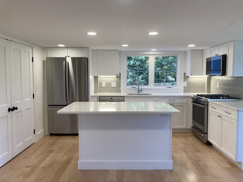 RENOVATED HISTORIC HOME WITH BREATHTAKING VIEWS!!! Beautifully updated home, combining classic charm with modern living. Flooded with light and move-in ready. Pristine interiors with gorgeous mix of original and new wood flooring throughout. Brand new eat-in kitchen with quartz countertops, stainless steel appliances, and large pantry. 3 bedrooms, 2 brand new baths, living room with original wood burning fireplace, formal dining room, 4-season sunroom with gas fireplace, and large great room. Excellent layout with ample closet space. Enjoy outdoor living with a professionally landscaped brick and fieldstone patio overlooking a large private yard surrounded by conservation land and miles of woodland trails. Serene setting with stunning meadow views. Steps from the historic Town Common, Country Store, and Library. Minutes to Route 2, 122, 32, and 32A for easy commuting. A rare opportunity to own a turnkey home in an exceptional location!