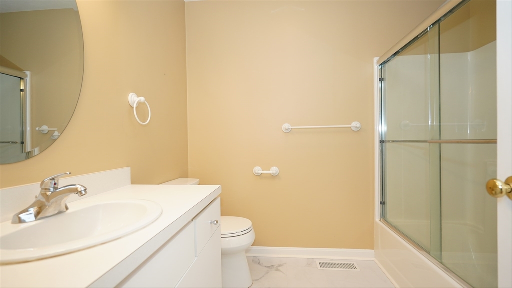 Located within the "Village at Oak Hill", a much sought-after 55+ community, this updated 2 bedroom condo is the perfect blend of location, space and condition. White shaker cabinets w/gold hardware, quartz counters, extra cabinetry & coordinating lighting set the tone for a modern, upscale dwelling. The entry hall has a mudroom area, double pantry closet & half bath with pedestal sink. The large living room soars with cathedral ceilings, lots of glass & light, a slider to the private deck w/motorized awning and easy access to the lawn area. There are 2 master living areas...a full suite on the first floor w/cathedral ceilings, a dressing room plus full bath with a 5ft walk-in shower w/2 seats & a large vanity. Floor two also has a primary bedroom with a huge, walk-in closet & full bath just outside the door. A small den, office or craft room finishes off this second level. The basement is full & unfinished w/very high ceilings...well suited for finishing or storage.