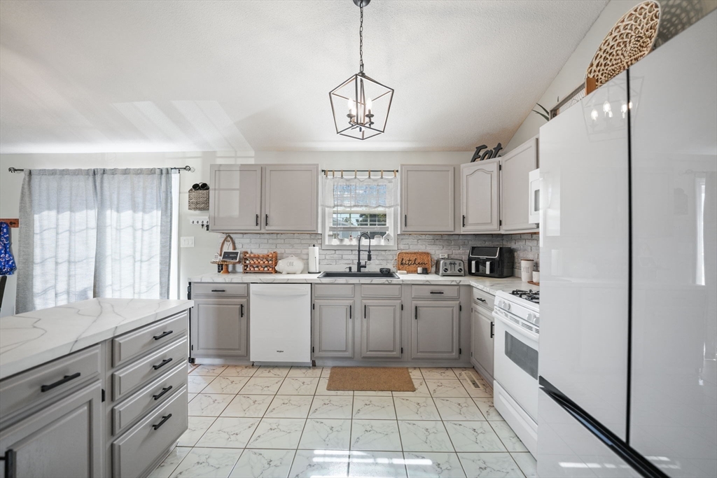 One level living in a fantastic location! This 3-bedroom ranch is light and bright with cathedral ceilings, an open floor plan, and modern updates throughout. Just steps to Mount Hope Bay and Sandy Beach, on a spacious fully fenced-in corner lot! All the big ticket items have been done for you: brand new central air, high efficiency gas furnace, and vinyl replacement windows. Nor'easter? No problem. This home also has a 5000 watt Generac whole house generator. The clean, dry basement has a finished studio room, updated electric, and high ceilings perfect for future additional living space. Large back deck and storage shed too. Gorgeous sunsets year round. No flood insurance required. Open house on Sunday, October 19th, 12:00-1:30.