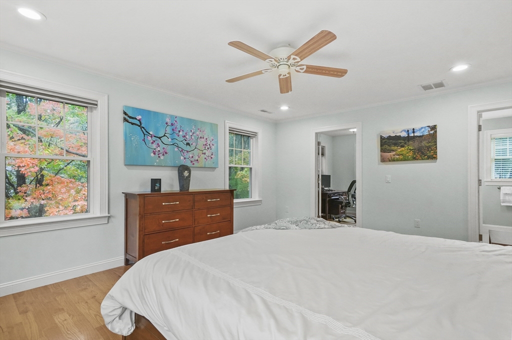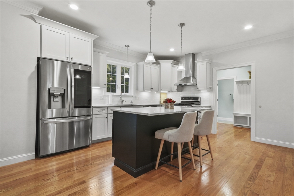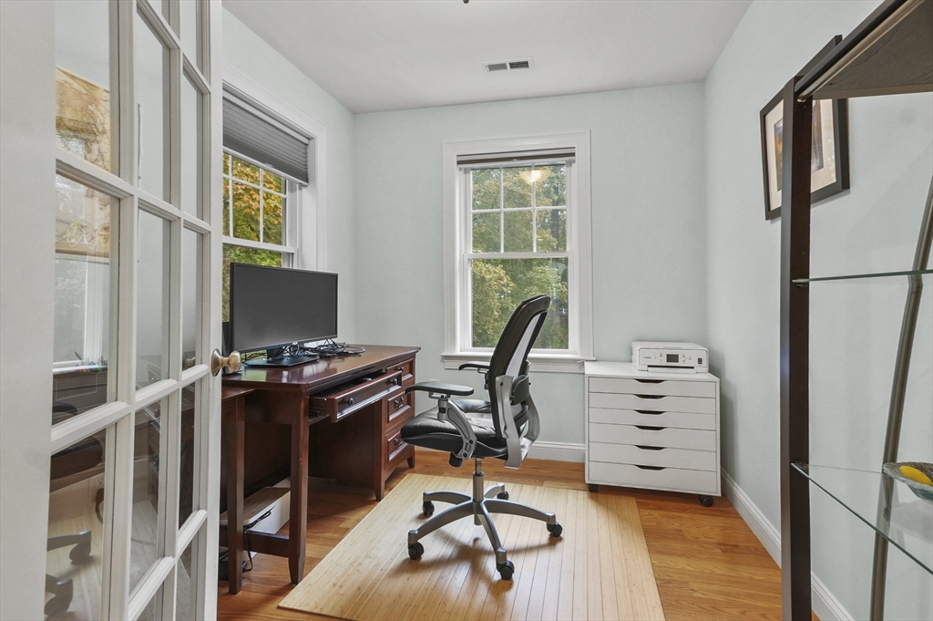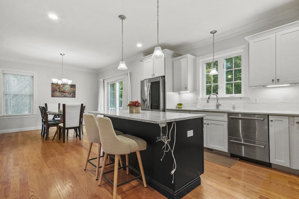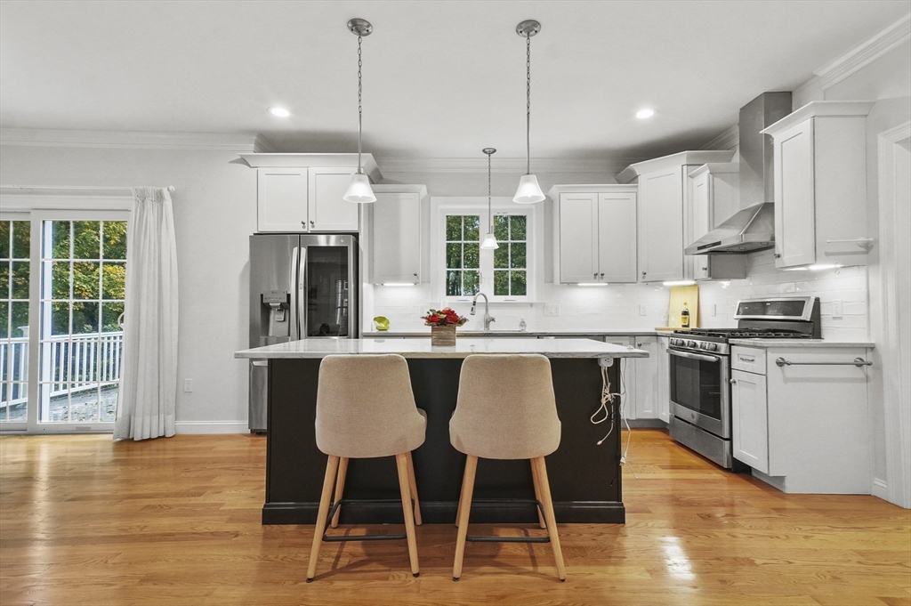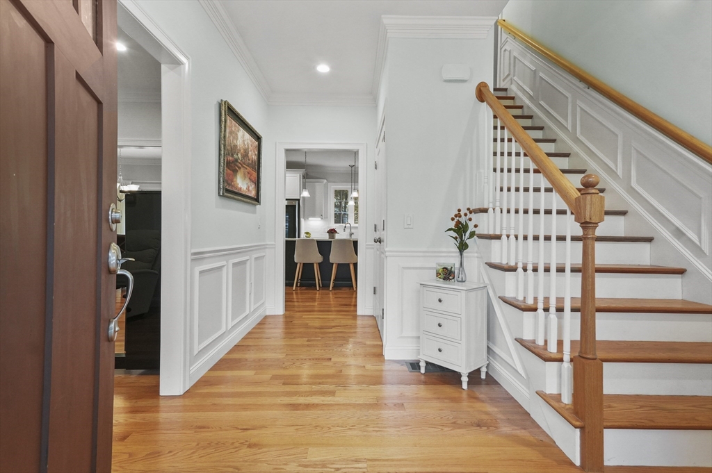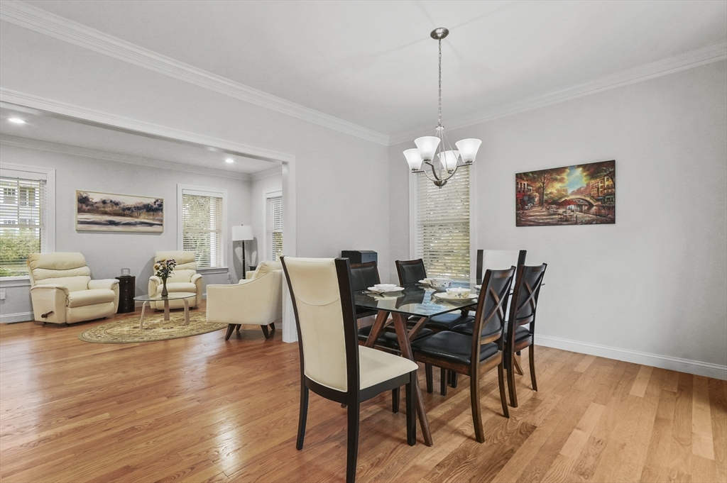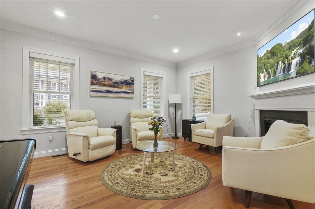 Stunning 5 year old townhouse offers luxury living at it's finest.This like new townhome has the look and feel of single family living. You can't go wrong when you buy a quality built home, by one of the areas finest building families. This home, with it's impressive accents boasts 9' ceilings, 2-piece crown mldgs, gas fireplace with inlay accent in hdwd floors, cook's kitchen with stove vented to exterior, island w/seating and gleaming HW floors on both 1st and 2nd floors. Lge prim ensuite w/dual vanitites and w/in closet plus french door to pvt den/office off prim bdrm. Separate 2nd flr laundry room along with 2 other generous sized bdrms complete the 2nd floor. Want more room...huge finished 3rd flr bonus room plus full walkout unfinished bsmt w/sliders, windows and rough plumbing for bath. Prof landscaped w/sprinkler system. Enjoy Horn Pond Recreation area at the end of the street. Commuters Dream....located near bus, minutes to hghwy, plus near many fine restaurants and shopping!