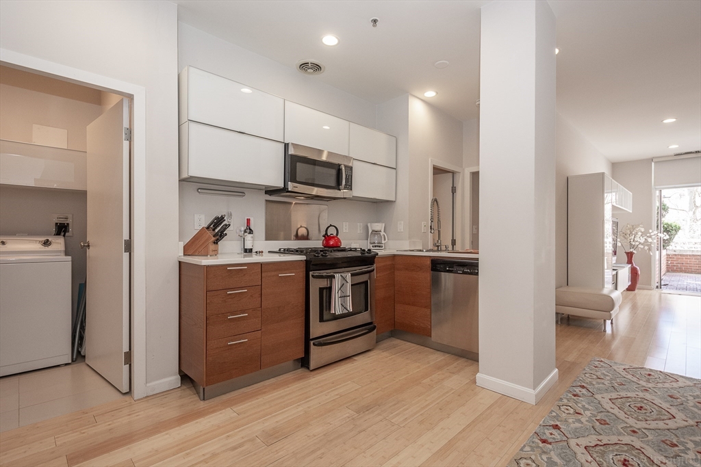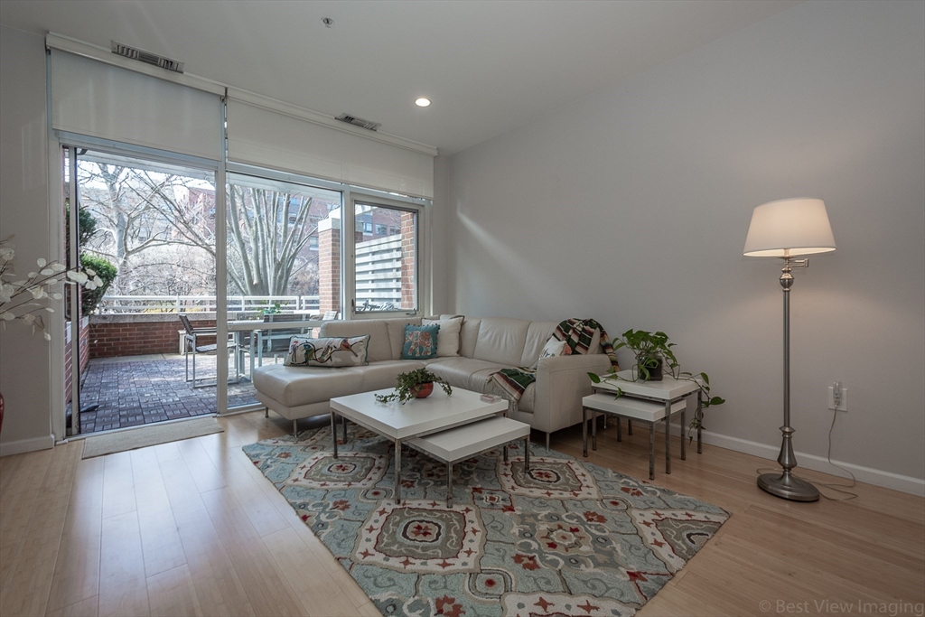 Welcome to a rare offering at Thomas Graves Landing—a beautifully renovated, southwest-facing condominium that effortlessly blends sophistication, comfort, and urban convenience. This exceptional canal-facing patio unit is a true sanctuary in the city, nestled beside the Charles River Canal and steps from the CambridgeSide Galleria. Sun-drenched interior with warm bamboo flooring throughout. Stainless steel applianced kitchen, in-unit laundry room, and a 200+ sq ft private patio overlooking the canal. The unit also comes with deeded garage parking and additional storage. This a luxury full-service building with 24/7 concierge service, on-site professional management and amenities including a fitness center, pool, sauna/steam, and function room. Easy access to Green Line MBTA Lechmere stop, MGH, shopping Mall, Cambridge Crossing, and restaurants. Condo fees include one garage parking space, hot water and gas for cooking. Non-smoking building.