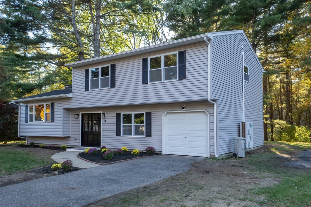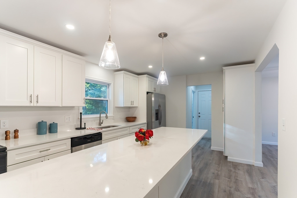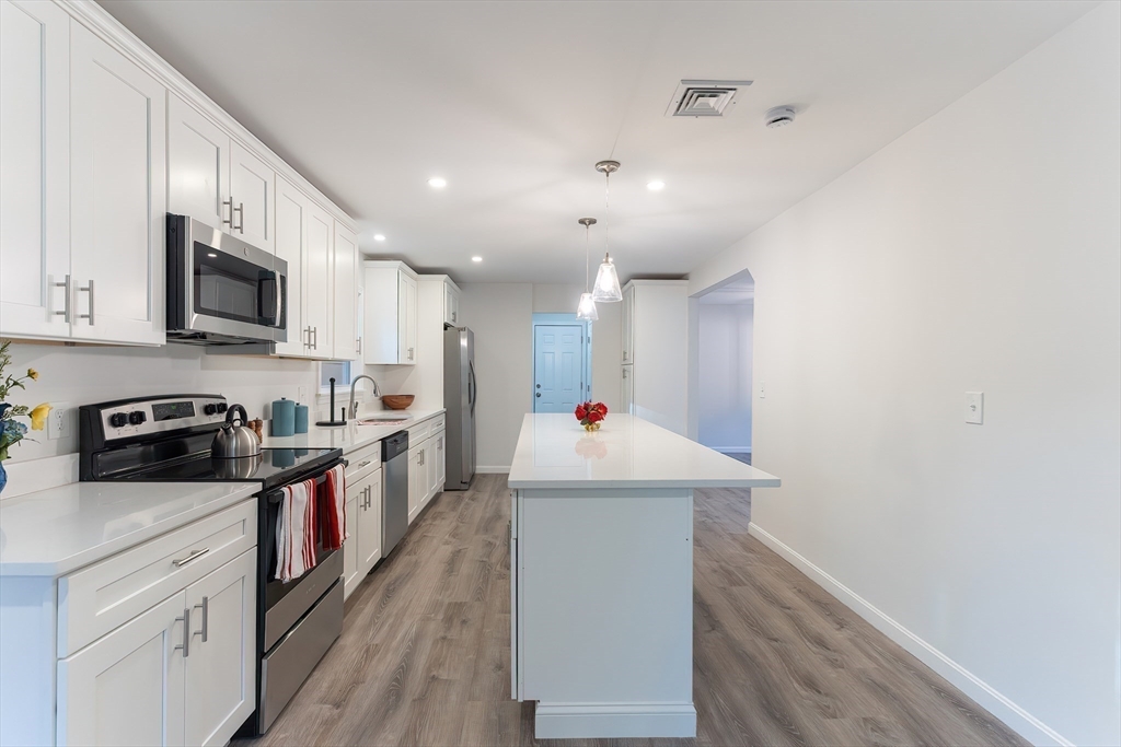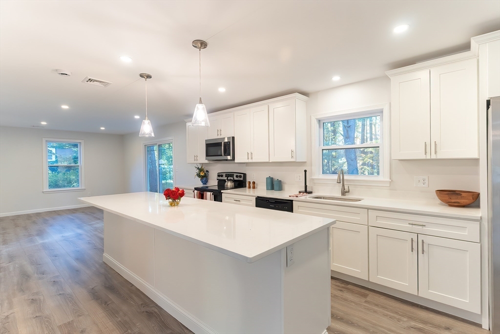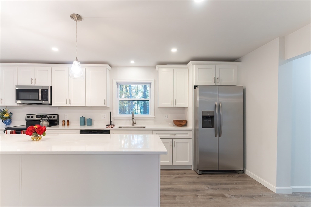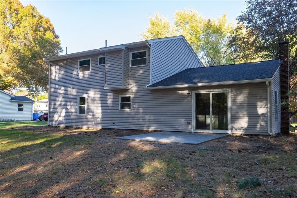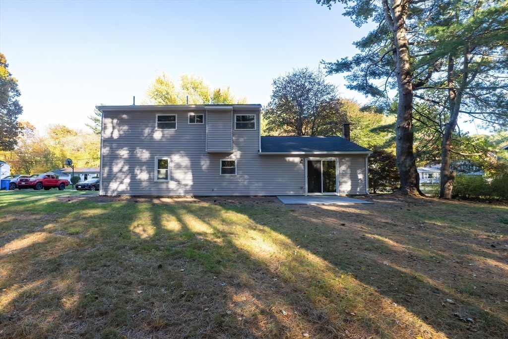 COMPLETELY RENOVATED 4 Br/2 bath 1 car garage colonial in a highly desirable East Holliston Neighborhood! Brand New Shaker style kitchen cabinets with recessed light, 2 pantry closets and a large 10 foot island! Kitchen opens to both the family room and dining room making this home great for entertaining! Brand new LVP flooring throughout first floor. Brand New Full 1st floor bathroom off kitchen with laundry. Spacious Living room and front entry! Back yard features brand new patio and private wooded back yard! 4 2nd floor spacious bedrooms with gleaming hardwood floors and a completely renovated bathroom with a double vanity! BRAND NEW IN 2025: NEW ROOF, NEW SIDING, NEW WINDOWS, HIGH EFFICIENCY HVAC HEAT PUMP. NEW PLUMBING AND ELECTRICAL, NEW INSULATION, NEW HOT WATER TANK, NEW INTERIOR DOORS AND TRIM, UPDATED FOM STUDS OUT! 2015 Installed Septic system! Enjoy a like New construction home in an amazing neighborhood. See this home today!!