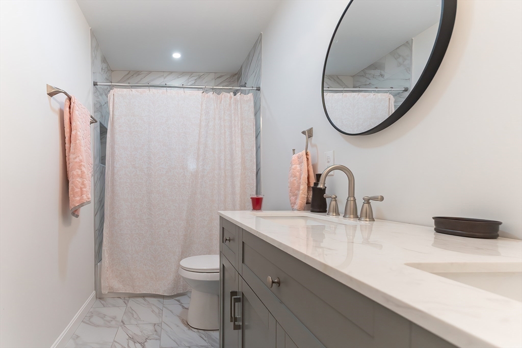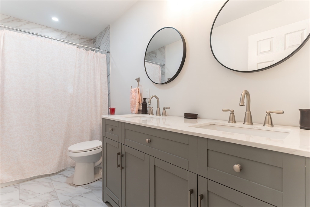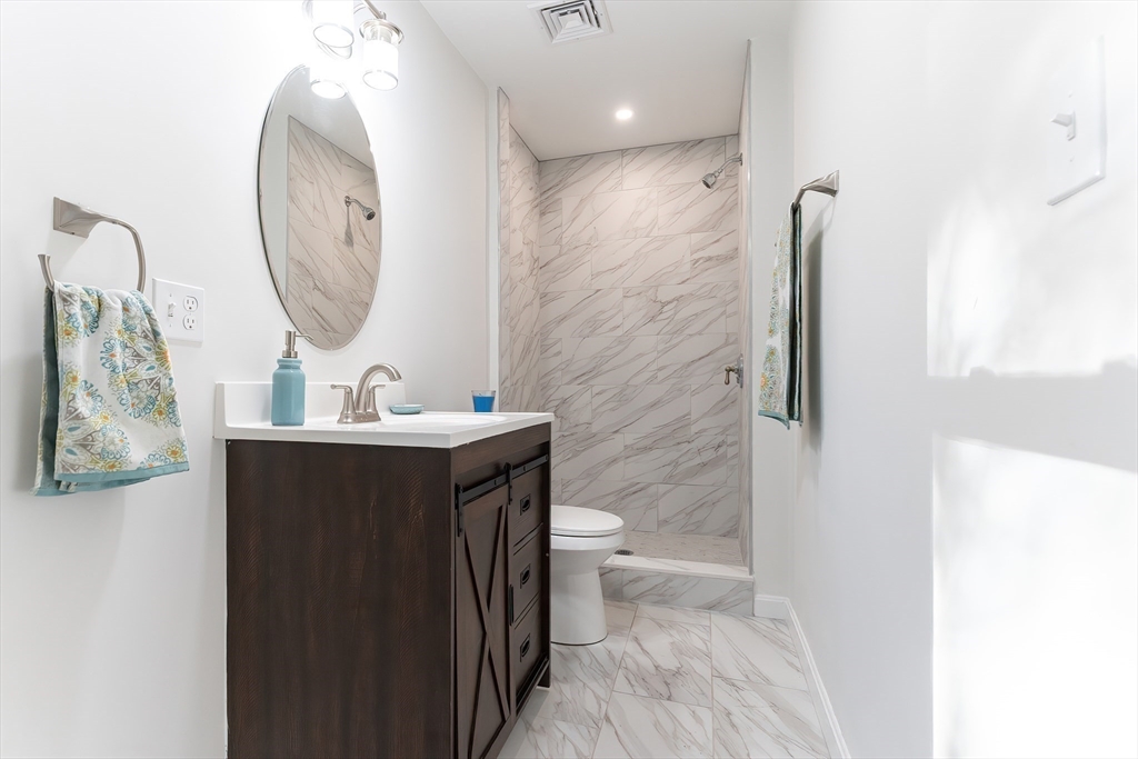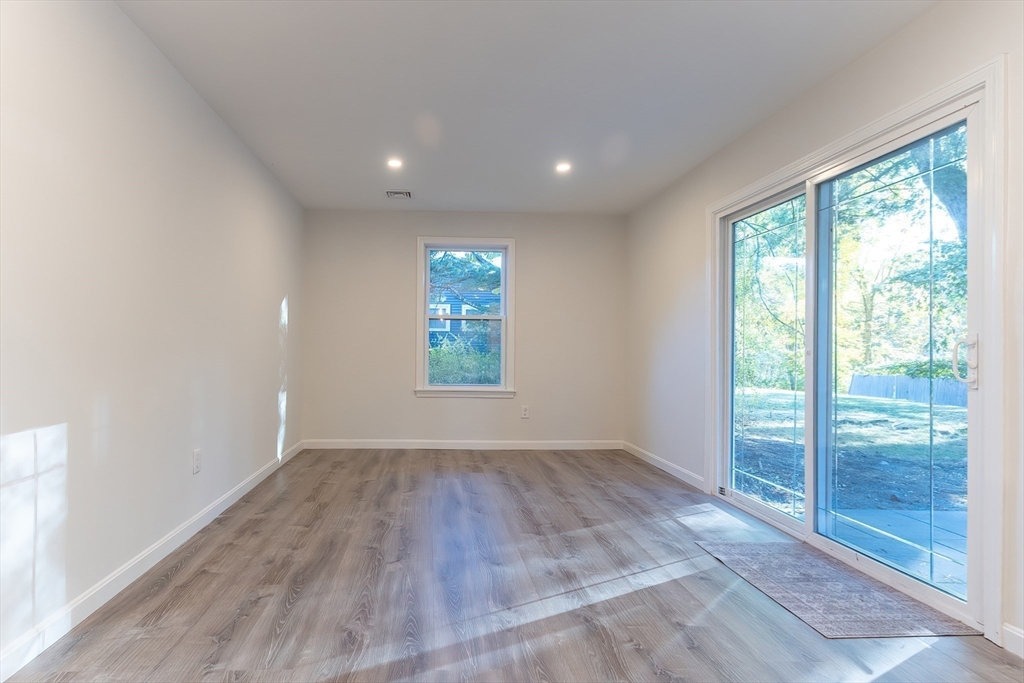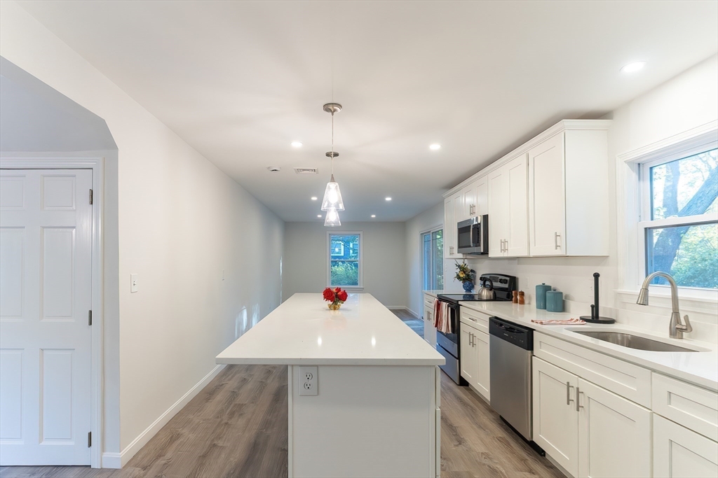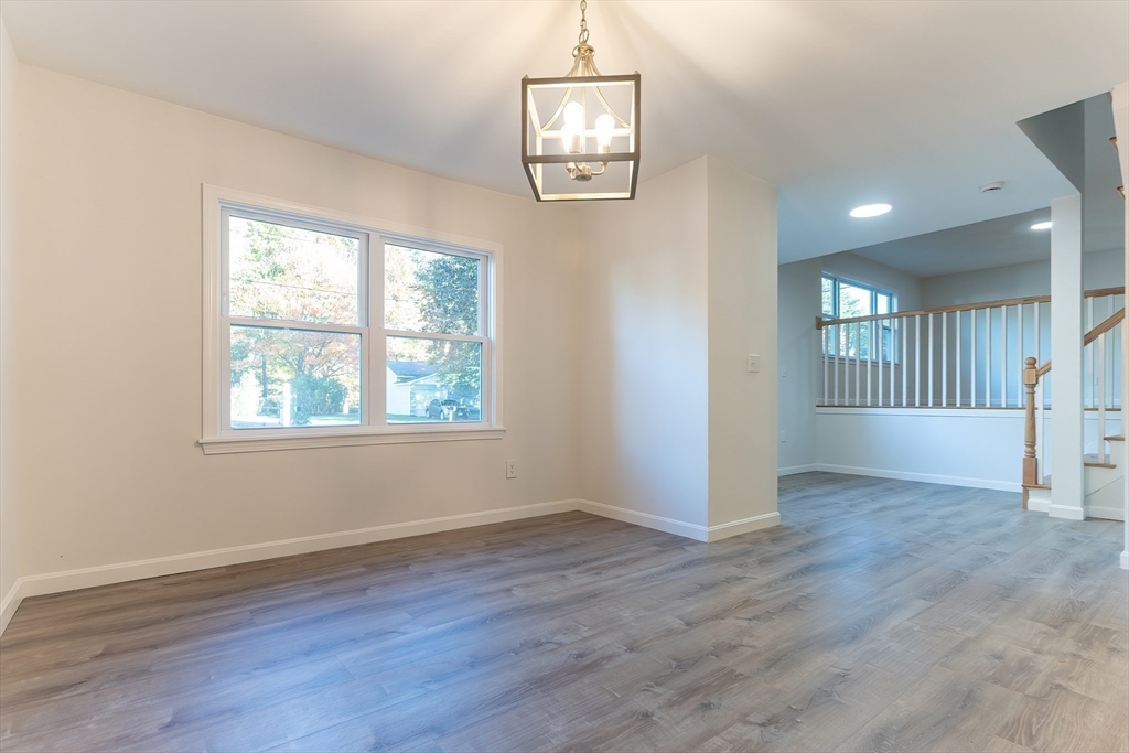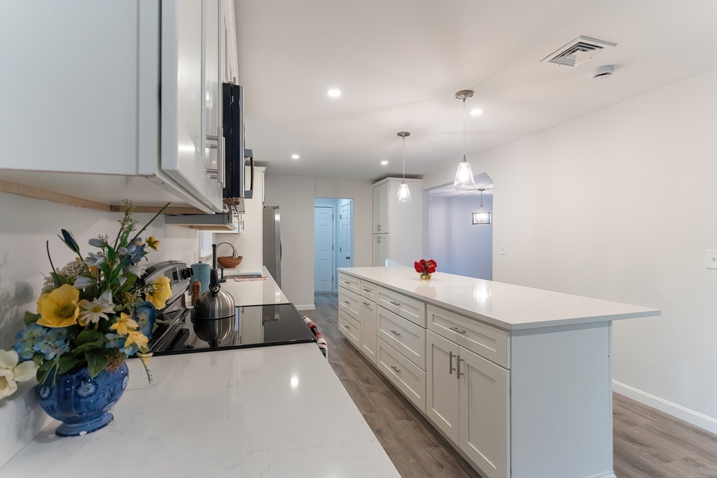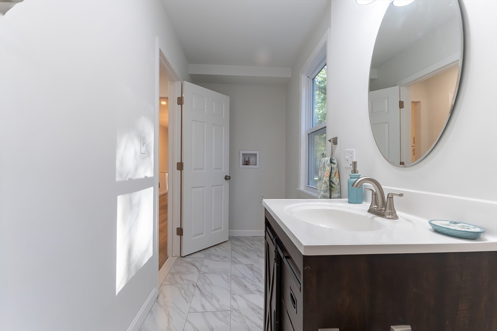 COMPLETELY RENOVATED 4 Br/2 bath 1 car garage colonial in a highly desirable East Holliston Neighborhood! Brand New Shaker style kitchen cabinets with recessed light, 2 pantry closets and a large 10 foot island! Kitchen opens to both the family room and dining room making this home great for entertaining! Brand new LVP flooring throughout first floor. Brand New Full 1st floor bathroom off kitchen with laundry. Spacious Living room and front entry! Back yard features brand new patio and private wooded back yard! 4 2nd floor spacious bedrooms with gleaming hardwood floors and a completely renovated bathroom with a double vanity! BRAND NEW IN 2025: NEW ROOF, NEW SIDING, NEW WINDOWS, HIGH EFFICIENCY HVAC HEAT PUMP. NEW PLUMBING AND ELECTRICAL, NEW INSULATION, NEW HOT WATER TANK, NEW INTERIOR DOORS AND TRIM, UPDATED FOM STUDS OUT! 2015 Installed Septic system! Enjoy a like New construction home in an amazing neighborhood. See this home today!!