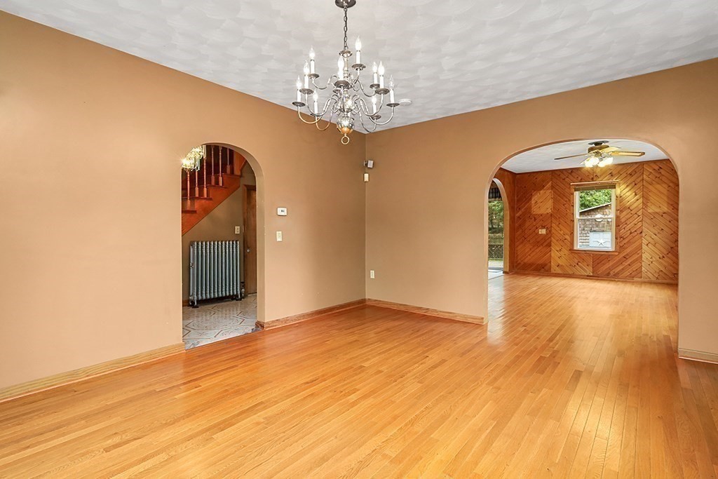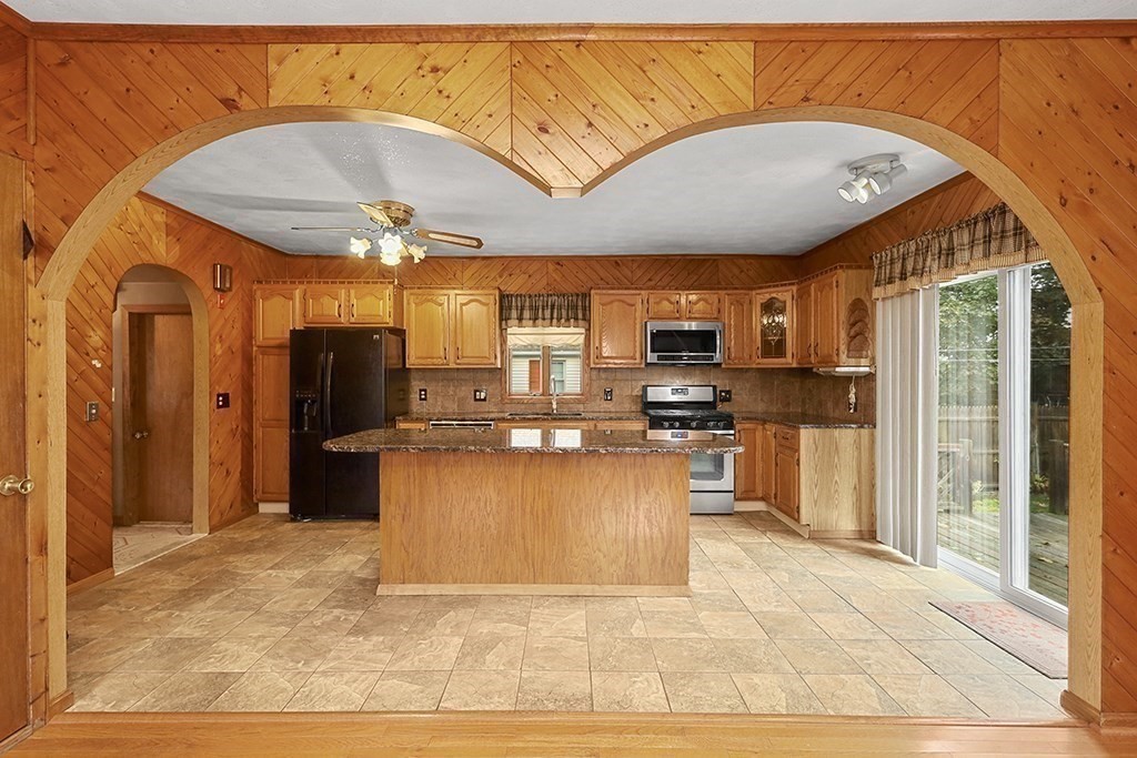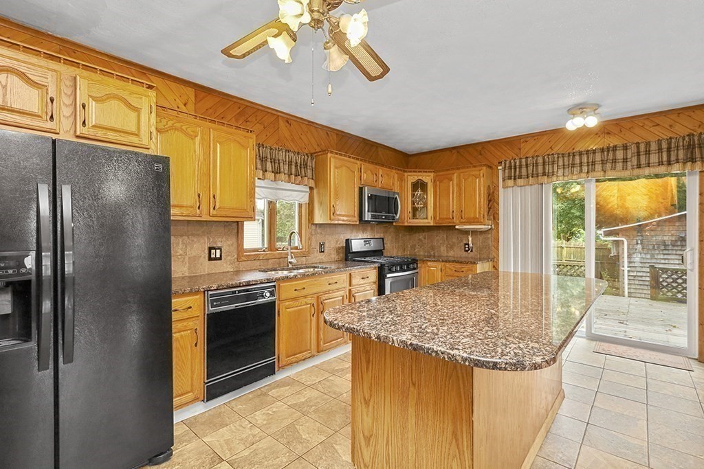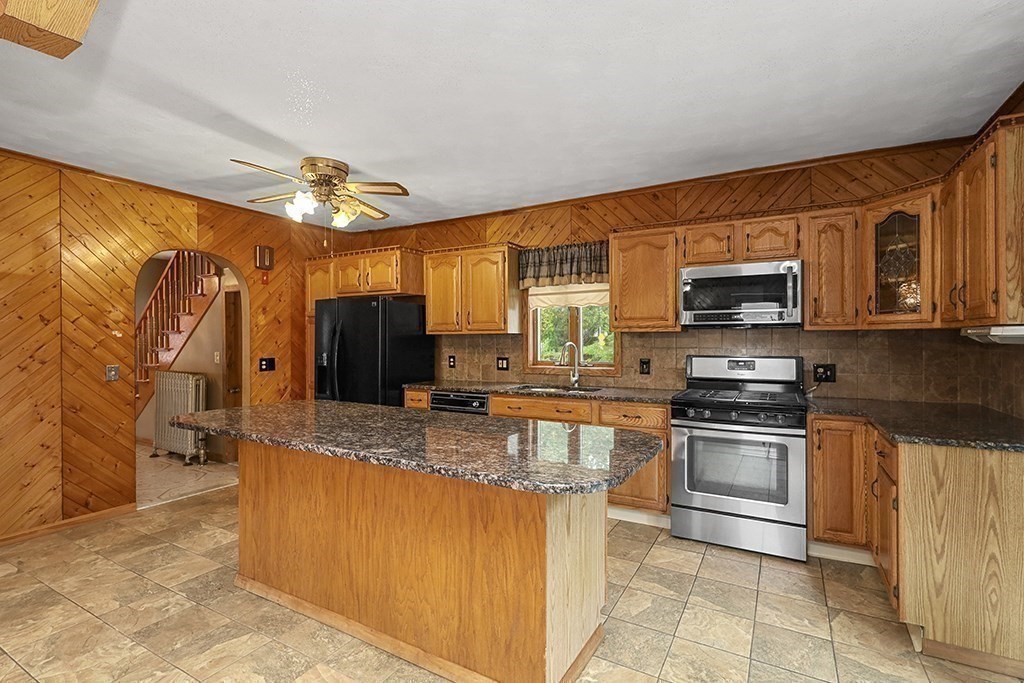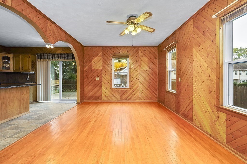 This four bedroom Conventional home is ready for it's next chapter. With many updates, such as a brand new roof, new windows with a lifetime guarantee, and a recent conversion from oil heat, to natural gas. The main floor features an open floor plan, with hardwood flooring throughout the dining, and living rooms. The modern kitchen features, stone countertops, tile flooring, and large center island. The gas range, and microwave are also newer. The second level features three large bedrooms, with hardwood flooring, there is also a fourth bedroom, smaller in size, but perfect for a young child. The basement is finished with a full bath, and second kitchen.The slider opens up to a deck, overlooking the backyard, with many perennial plantings. The single car garage, with attached shed, was used for storage,and work area. The backyard is fenced in, and features a sprinkler system, powered by well water