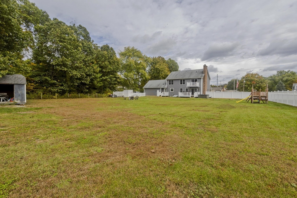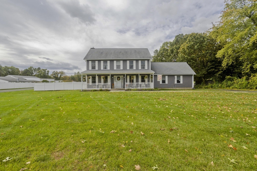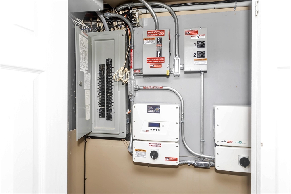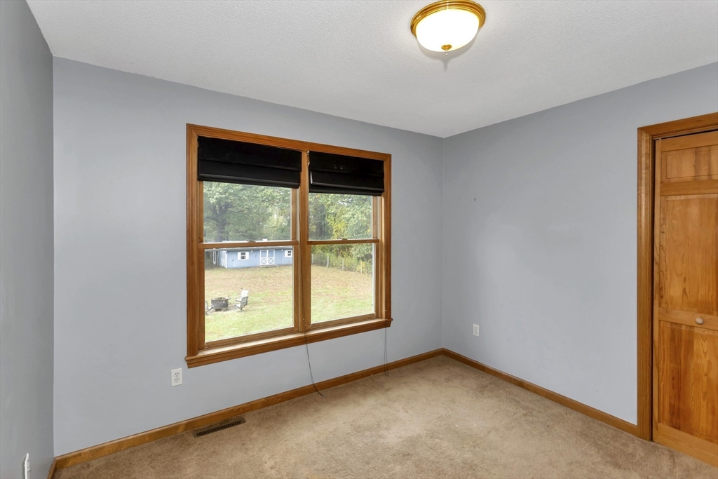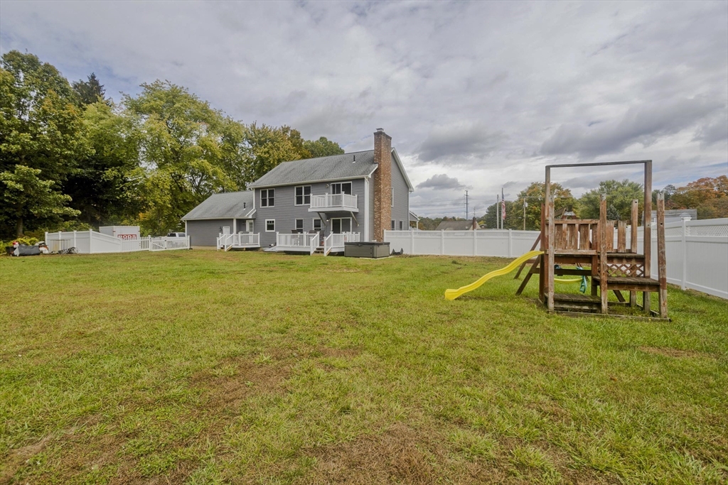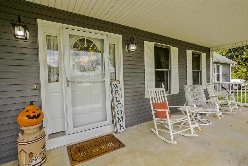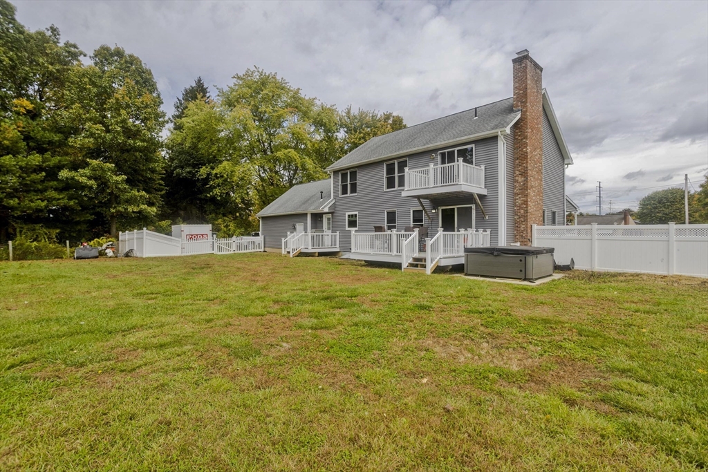 Welcome to this beautifully maintained 4-bed, 3-bath Colonial set on a private 2.29-acre lot. The bright open floor plan features gleaming wood floors, a cozy fireplace, and a kitchen with newer stainless appliances. Upstairs, the primary suite offers a walk-in closet, full bath with jetted tub, and a private balcony overlooking the scenic yard. The finished basement includes three extra rooms perfect for offices, guests, or hobbies. Outside, relax on the spacious porch or in the hot tub while enjoying peaceful views of the fenced yard bordered by trees. Featuring a newer furnace (less than 4 years old), instant tankless hot water system, and seller-owned solar panels for incredible energy savings. So many additional features to list—this home is a must see!