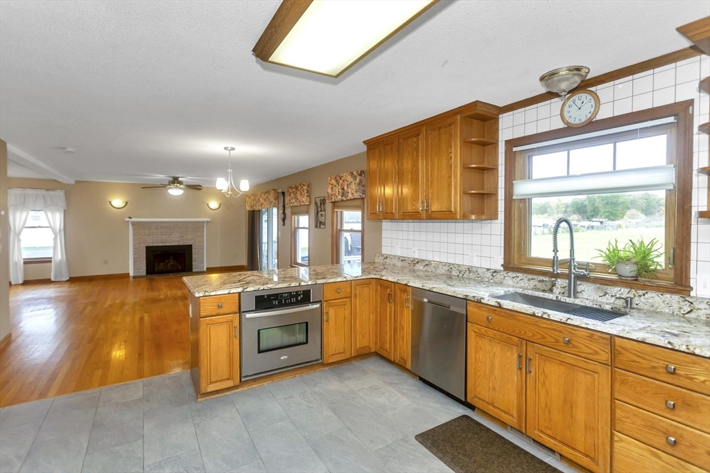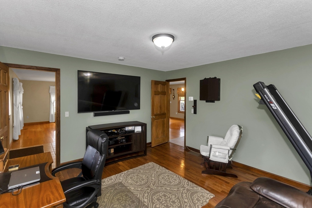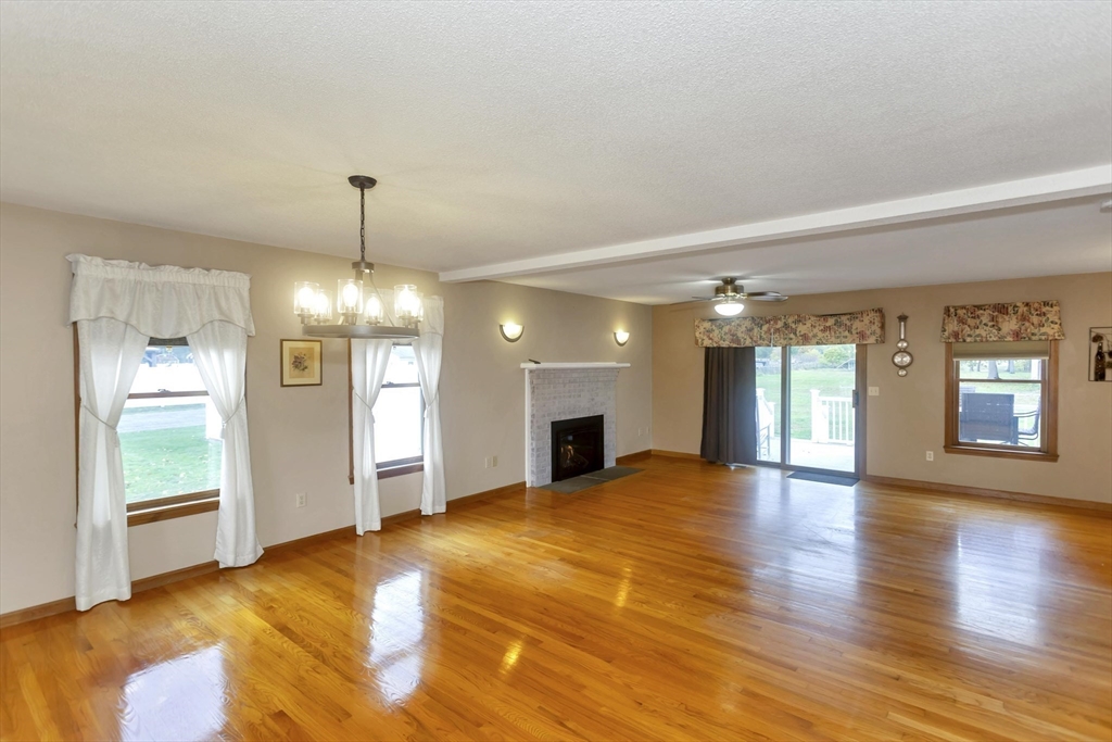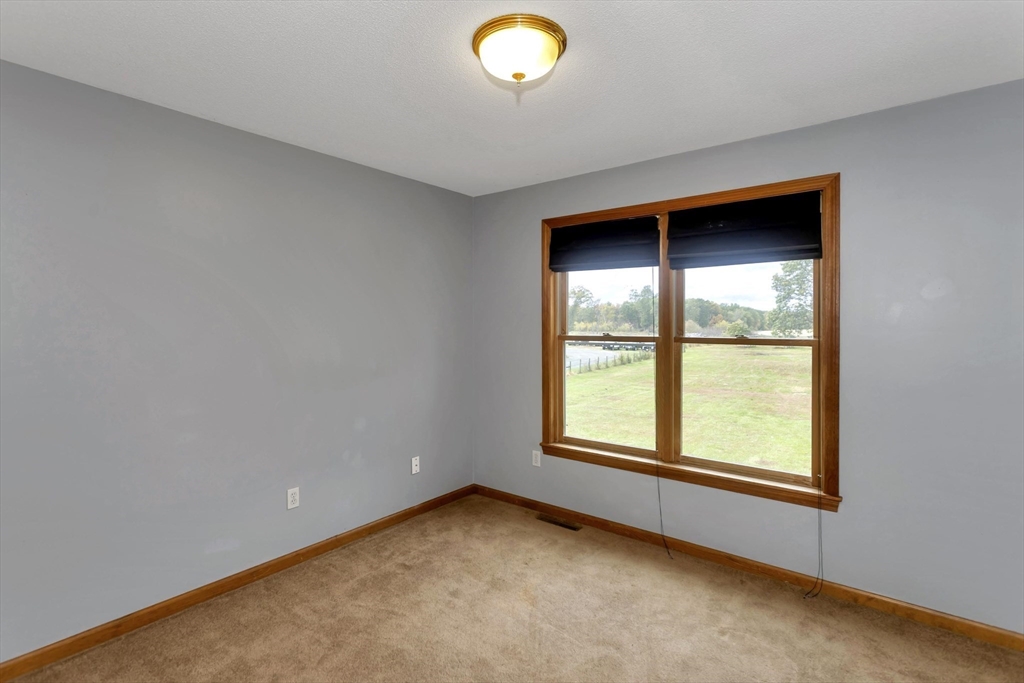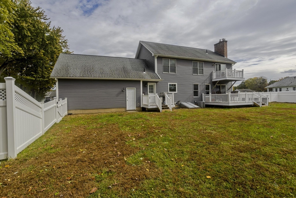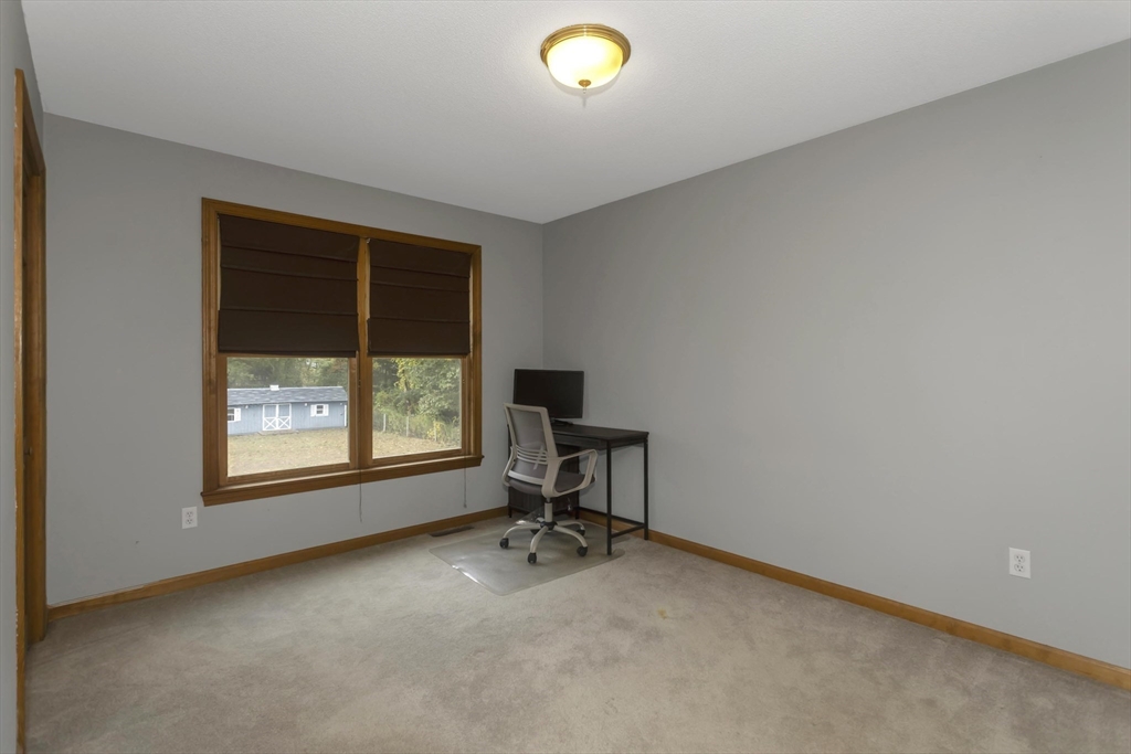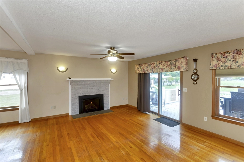Welcome to this beautifully maintained 4-bed, 3-bath Colonial set on a private 2.29-acre lot. The bright open floor plan features gleaming wood floors, a cozy fireplace, and a kitchen with newer stainless appliances. Upstairs, the primary suite offers a walk-in closet, full bath with jetted tub, and a private balcony overlooking the scenic yard. The finished basement includes three extra rooms perfect for offices, guests, or hobbies. Outside, relax on the spacious porch or in the hot tub while enjoying peaceful views of the fenced yard bordered by trees. Featuring a newer furnace (less than 4 years old), instant tankless hot water system, and seller-owned solar panels for incredible energy savings. So many additional features to list—this home is a must see!
