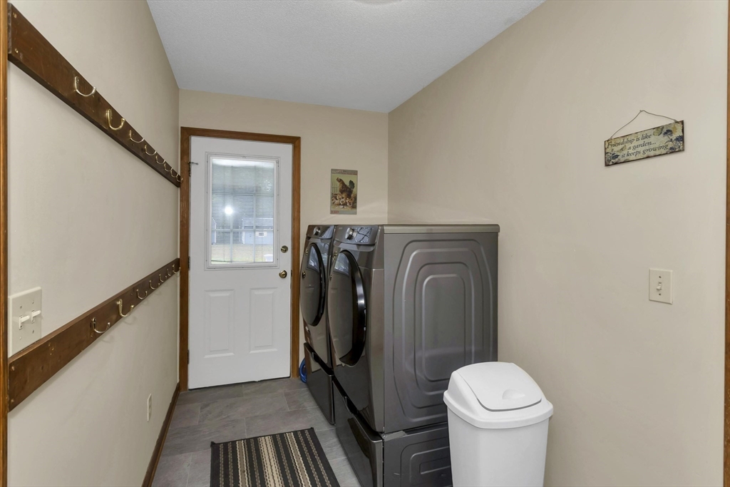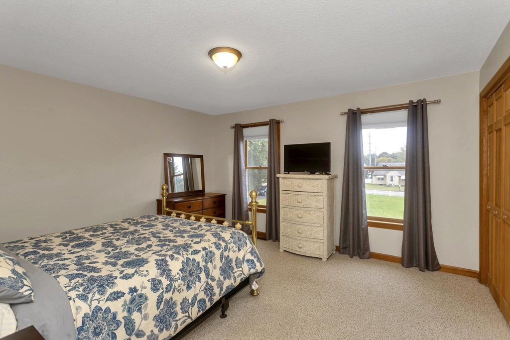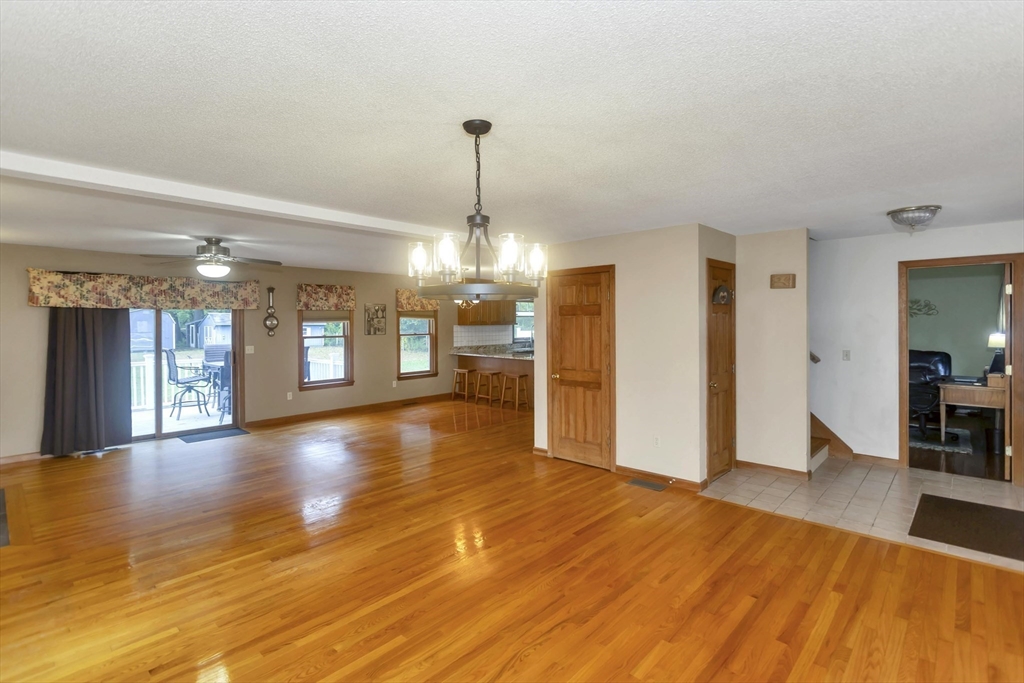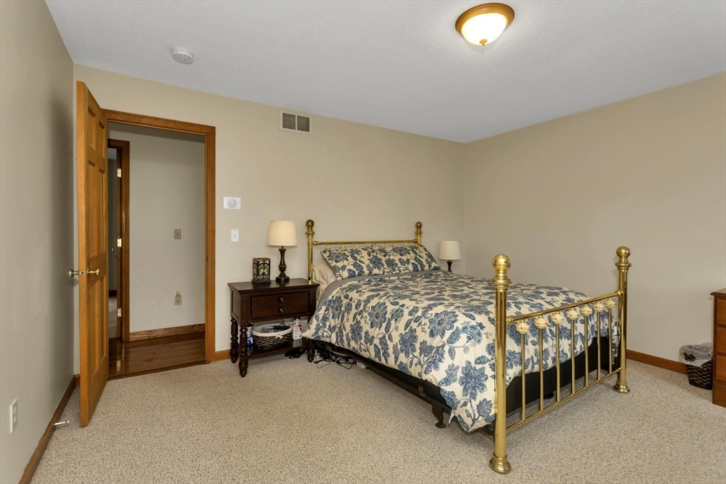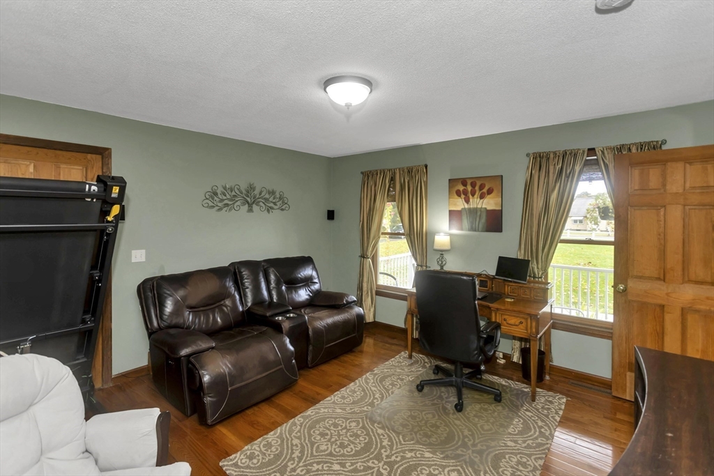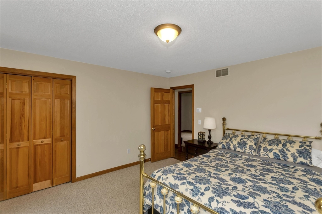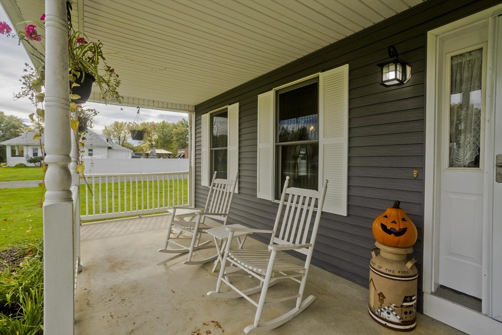 Welcome to this beautifully maintained 4-bed, 3-bath Colonial set on a private 2.29-acre lot. The bright open floor plan features gleaming wood floors, a cozy fireplace, and a kitchen with newer stainless appliances. Upstairs, the primary suite offers a walk-in closet, full bath with jetted tub, and a private balcony overlooking the scenic yard. The finished basement includes three extra rooms perfect for offices, guests, or hobbies. Outside, relax on the spacious porch or in the hot tub while enjoying peaceful views of the fenced yard bordered by trees. Featuring a newer furnace (less than 4 years old), instant tankless hot water system, and seller-owned solar panels for incredible energy savings. So many additional features to list—this home is a must see!