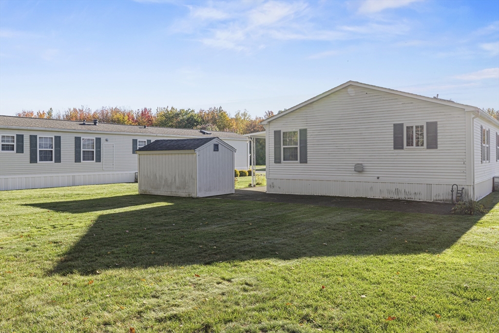 Welcome to Rocky Knoll Estates, Taunton’s 55 and better living community!! This lovely double wide unit which has lovingly been cared for, offers GREAT potential for the next buyer! Featuring a large and open floor plan, one will enjoy all the comforts of single level living featuring a spacious living room, dining room, and generous kitchen. Additionally offered are two bedrooms, two full baths, and a laundry area. The unit features a newer heating system replace in 2023, a private yard which abut a woodland area for enjoyment, a shed for additional storage, and private driveway. This home has so much to offer! The community also features a community club house which offers potential for social sharing and gatherings and is located conventionally on Rt 140 (Tremont Street) and within minutes to grocery, shopping, banking and other major highways. This lovely unit is meant for you!