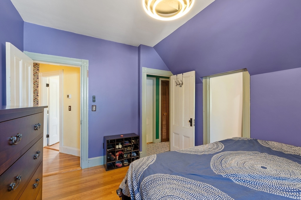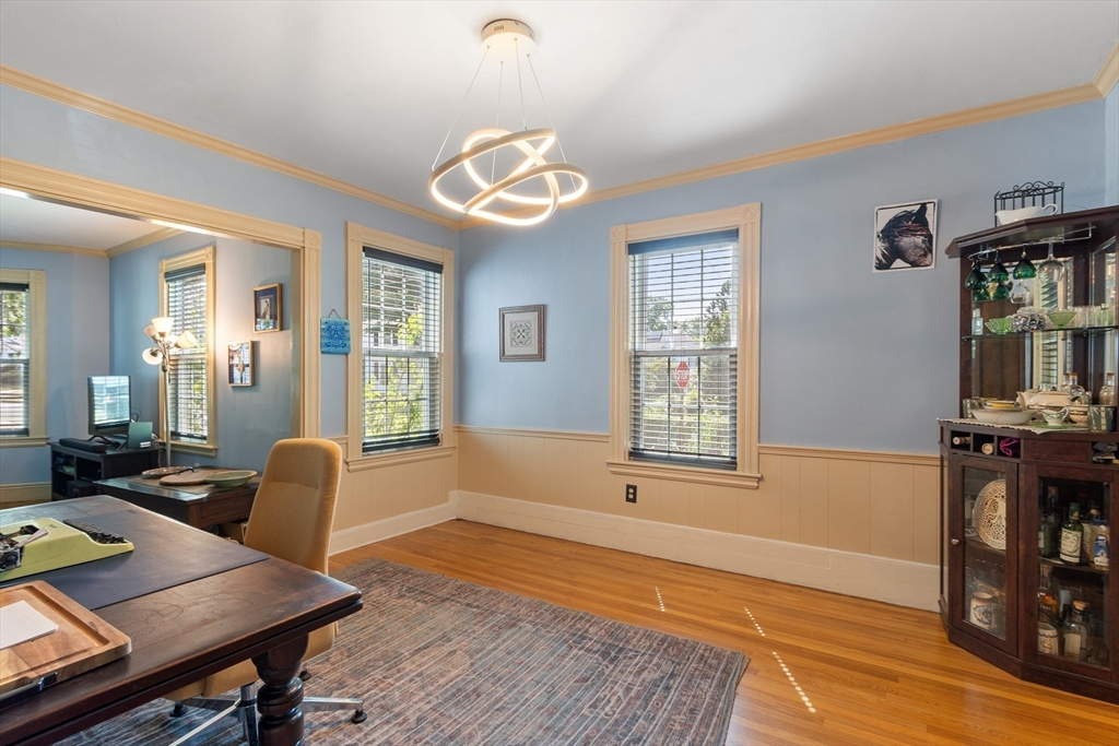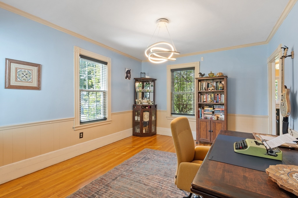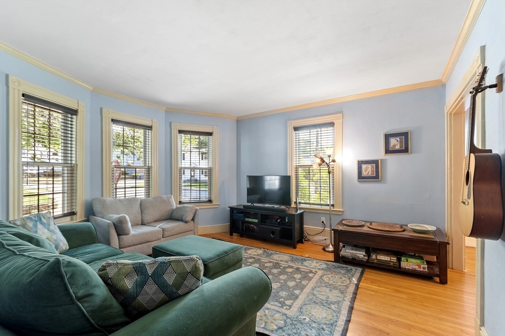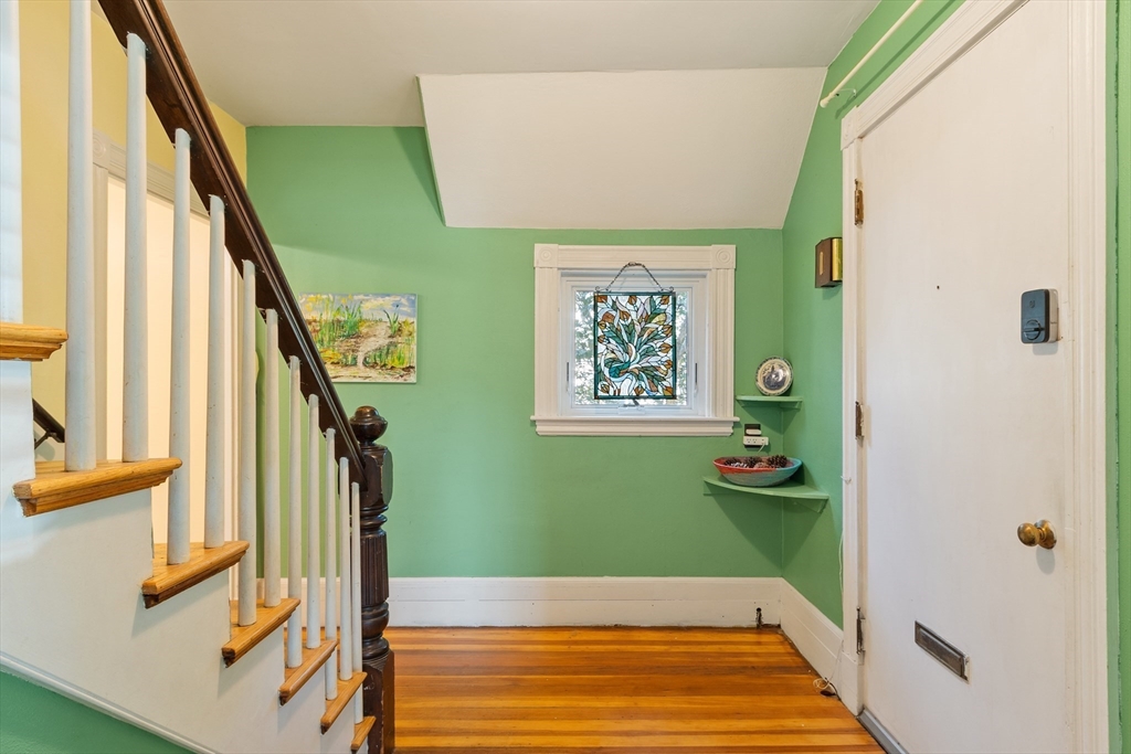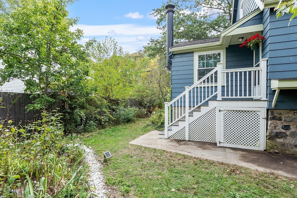 Desirable East Side location in Melrose, close to Melrose Common Park. Spacious 3 bedroom 2 full bath home blends the charming details of an older home with updates and amenities of a newer home. Enter the home from the enclosed front porch that leads to the foyer and formal living & dining rooms, just waiting for holiday gatherings. Nice open kitchen is well equipped with convenient mud room access that leads to parking and yard. Family room is perfect for chilly nights with cozy wood/pellet stove plus full bath completes the first floor. The second floor offers the main bedroom with unique sitting room, 2 additional bedrooms and a full bath. High ceilings throughout. Basement space offers a bonus room - ideal for gym/workshop. Organic perennial gardens and butterfly garden. Less than one mile to charming downtown Melrose with abundance of restaurants and shopping. Enjoy easy access to public transportation at Oak Grove, Rte 1 and more!