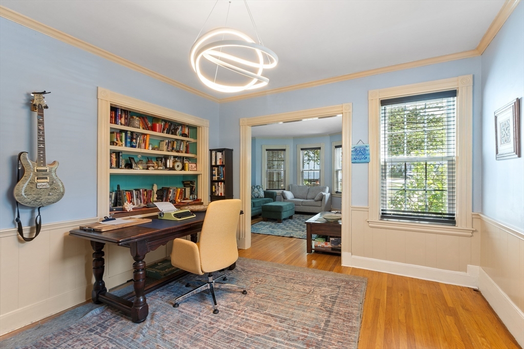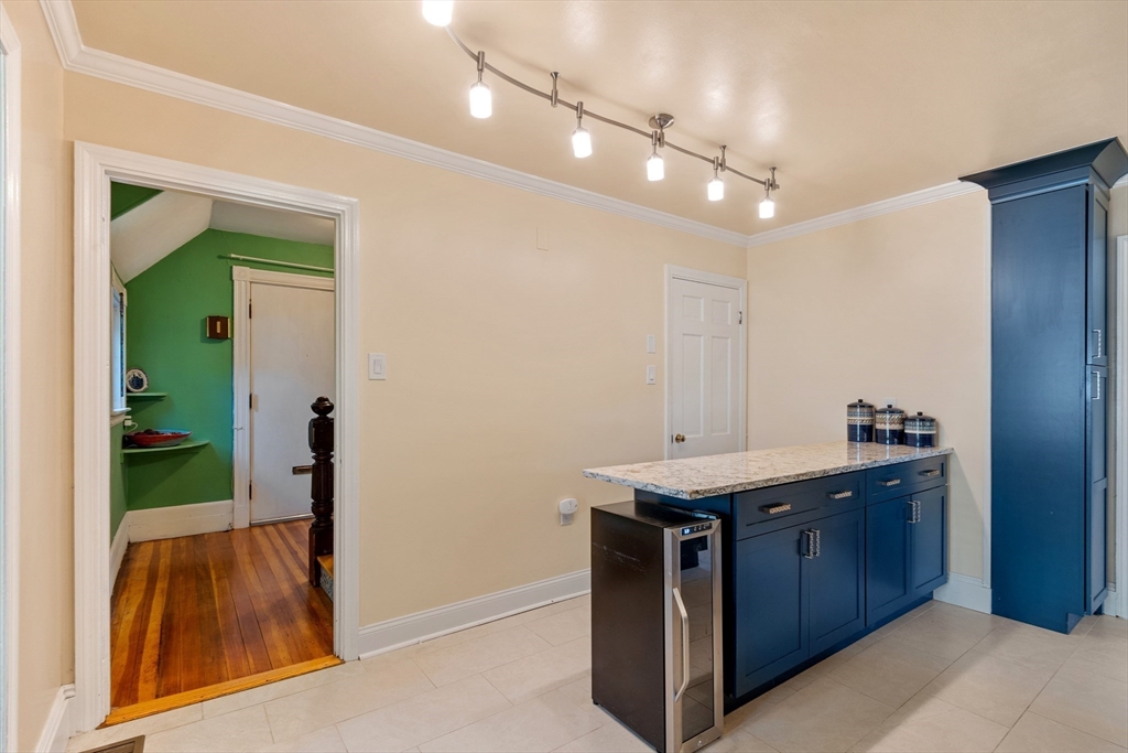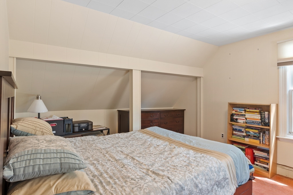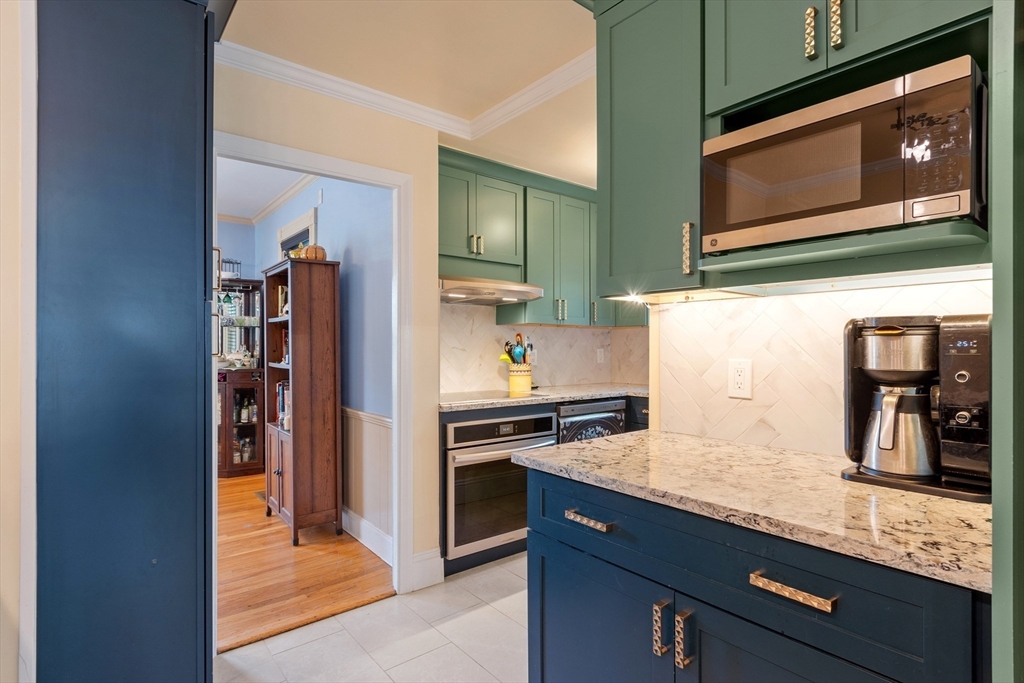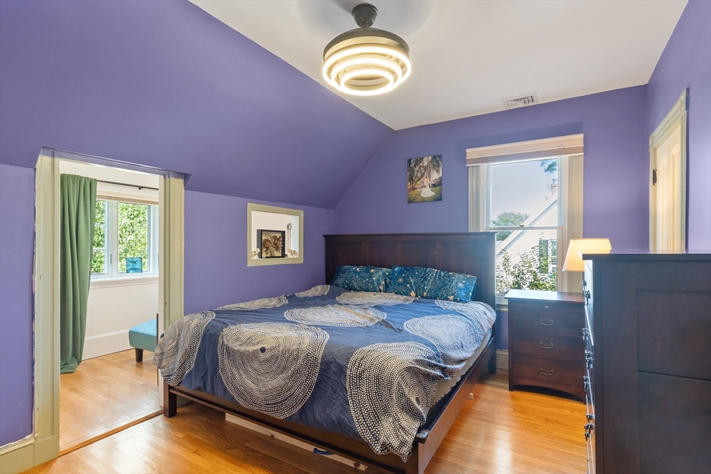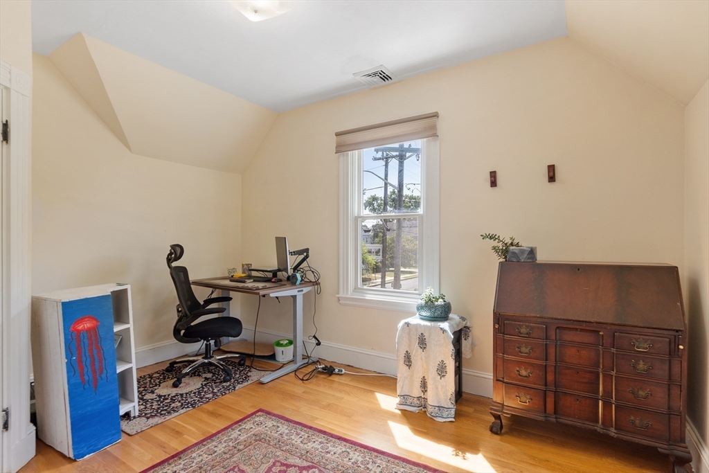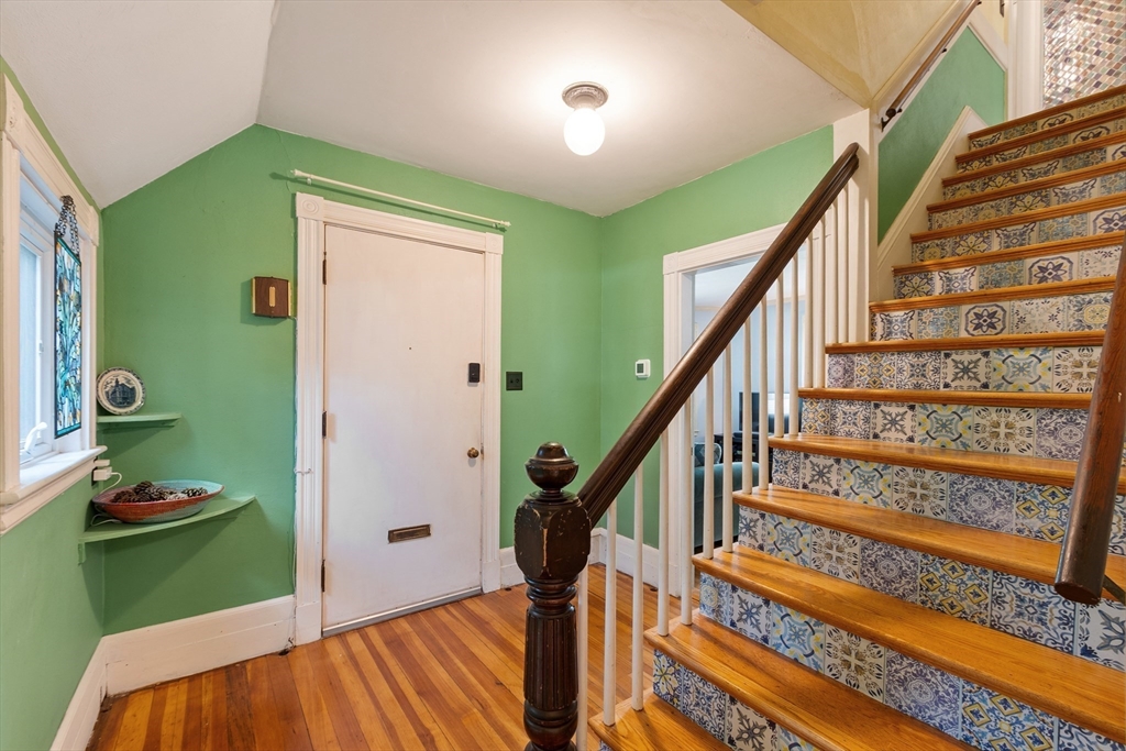 Desirable East Side location in Melrose, close to Melrose Common Park. Spacious 3 bedroom 2 full bath home blends the charming details of an older home with updates and amenities of a newer home. Enter the home from the enclosed front porch that leads to the foyer and formal living & dining rooms, just waiting for holiday gatherings. Nice open kitchen is well equipped with convenient mud room access that leads to parking and yard. Family room is perfect for chilly nights with cozy wood/pellet stove plus full bath completes the first floor. The second floor offers the main bedroom with unique sitting room, 2 additional bedrooms and a full bath. High ceilings throughout. Basement space offers a bonus room - ideal for gym/workshop. Organic perennial gardens and butterfly garden. Less than one mile to charming downtown Melrose with abundance of restaurants and shopping. Enjoy easy access to public transportation at Oak Grove, Rte 1 and more!
