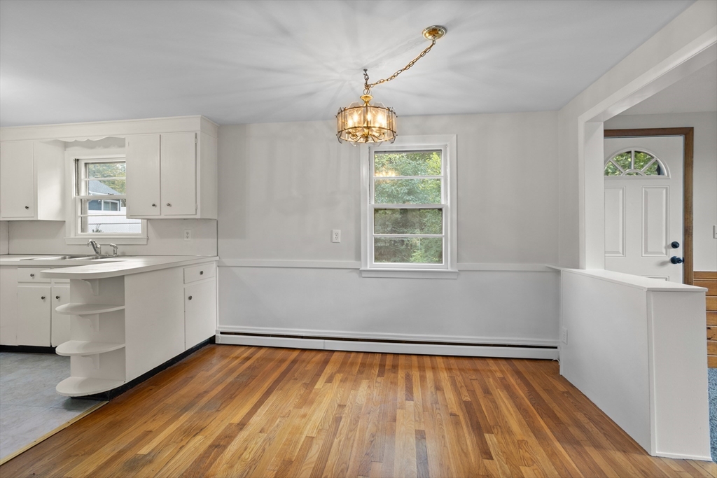 Charming ranch home available in a fantastic Littleton location! As you enter the front door into the spacious living room, notice the hardwood floors and the fireplace which is wood burning, and is the focal point of the room. The inviting family room with its cathedral ceiling and skylights providing abundant natural light. The family room has access to the deck which overlooks the back yard. The three bedrooms also boast gleaming hardwood floors. The kitchen, dining room and full bath complete the main floor. But wait! There is more! The expansive lower level with over 650 square feet is newly carpeted and freshly painted, providing abundant space for recreation, media, home office or playroom! A half bath and laundry room complete the floor along with the utility area. Littleton offers top rated schools, a vibrant Park & Rec, a brand new senior center and library, shopping, restaurants, playgrounds and Long Lake is very close by! Showings begin October 20th!