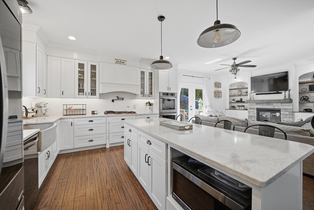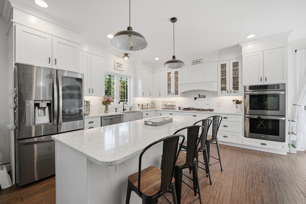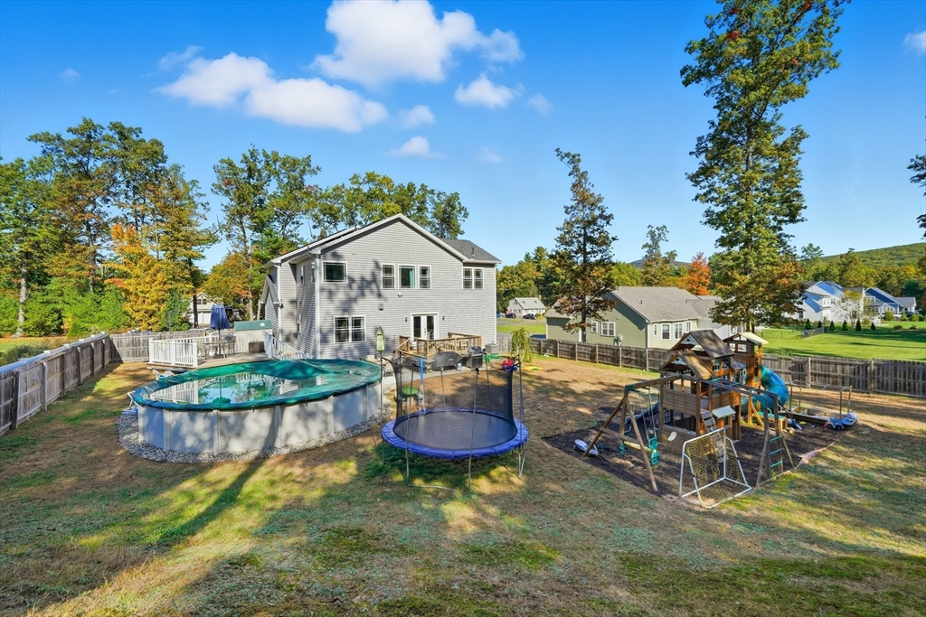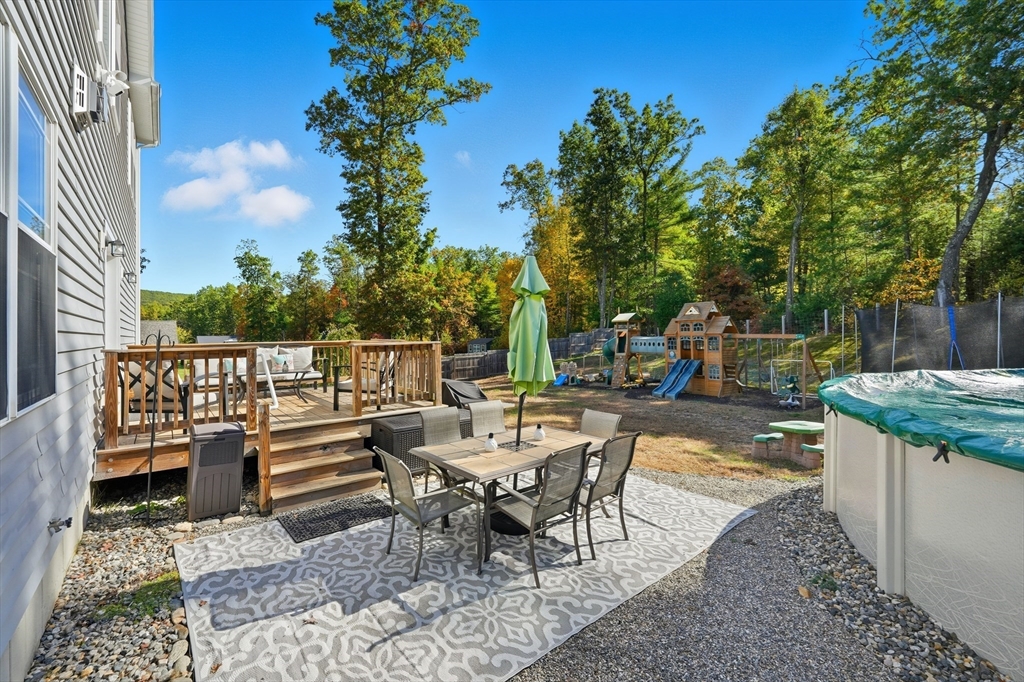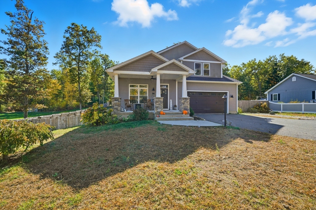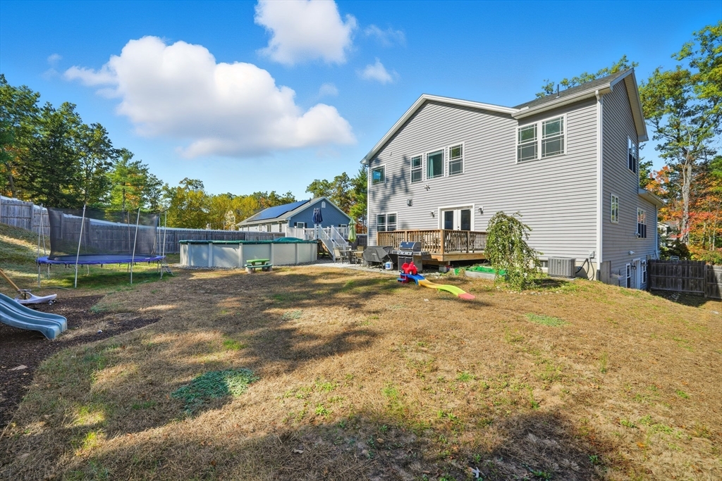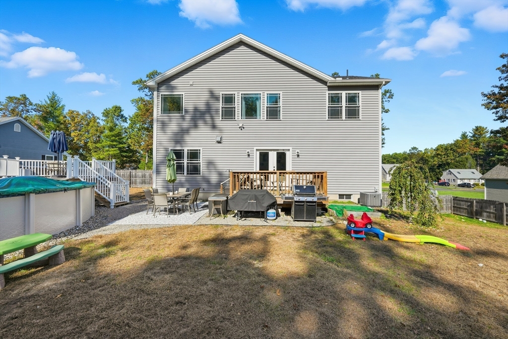 This 7-year-young 5 BR, 3 BA home offers over 2,700 sq. ft. of living space on a one-acre lot, delivering the style of today’s new builds without the new-construction price. Step onto the front porch, inside you will find the open first floor featuring ample entry spaces, bamboo wood floors, and a stunning quartz kitchen with a large island, farmer sink, pot filler, gas range, double oven, open to the living area with gas fireplace and built-ins. French doors leading to a deck, above-ground pool, patio and a large fenced yard. A first-floor bedroom and full bath provide valuable use options, while 2nd floor the primary suite offers a walk-in closet, double vanity, soaking tub, tiled shower, and private commode. Second floor loaded with 3 more generous bedrooms. Enjoy added amenities like an oversized 2-car garage, first-floor laundry, central air, solar panels, and a walk-out basement rough-plumbed for another bath, this home offers multiple spaces to meet a variety of needs.