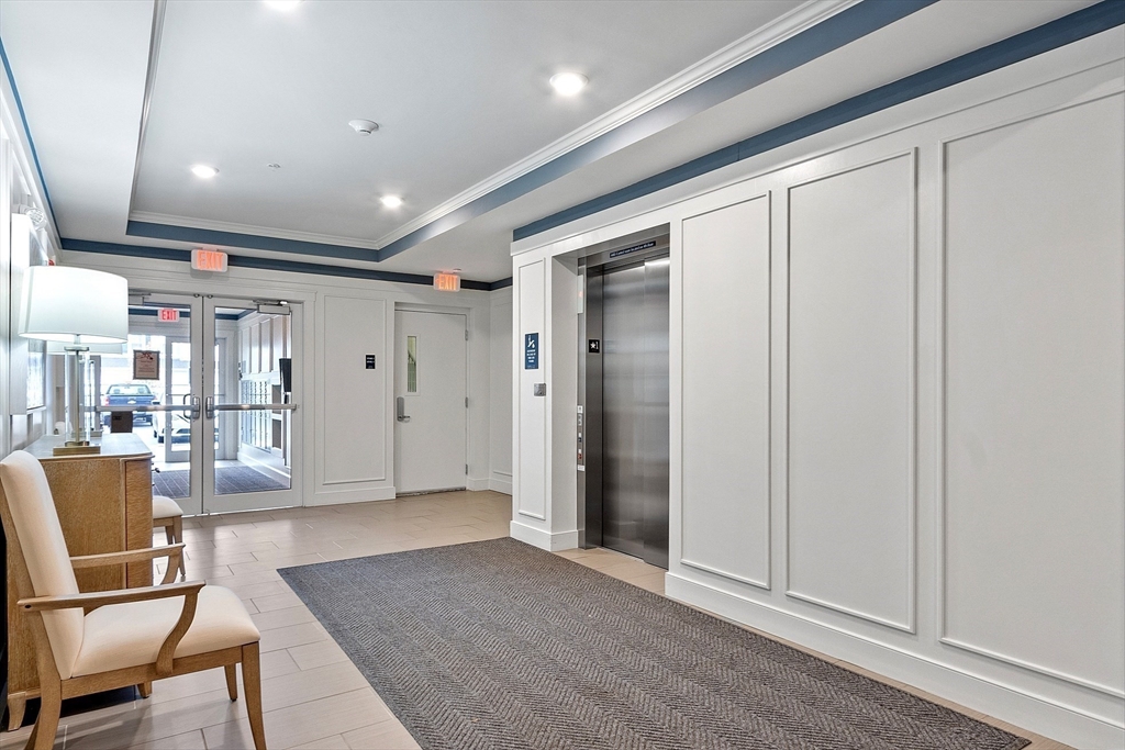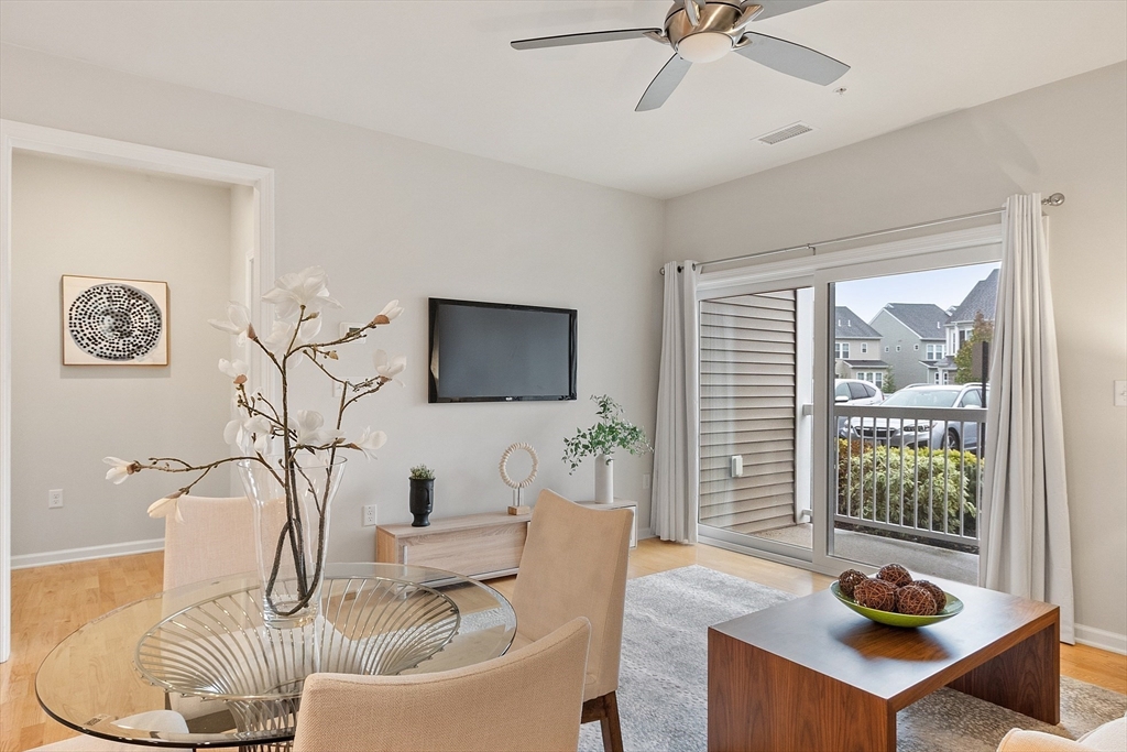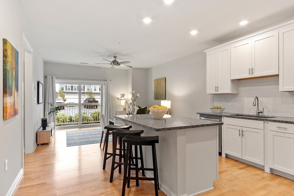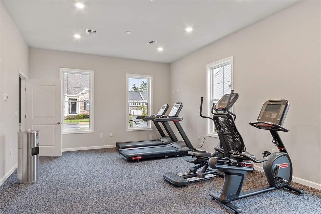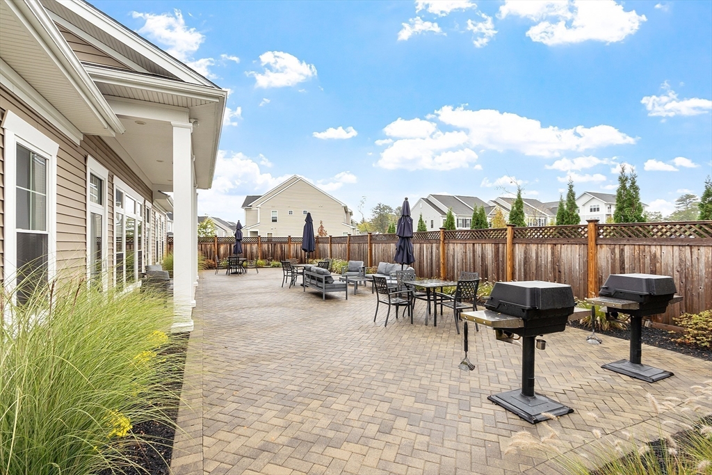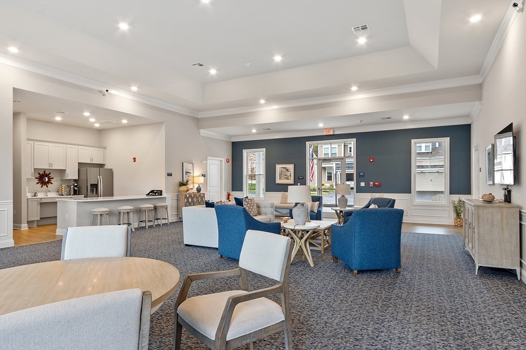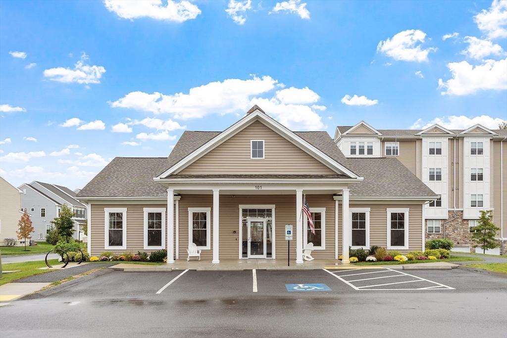 Pristine, nearly new 1-bedroom plus condo in an exceptional 55+ community, just two years young! Enjoy a bright, open-concept layout featuring a modern kitchen with stainless appliances and a large island with seating for 2+. First floor convenience with a pet-friendly slider to an exterior deck. Separate laundry room. Roomy private and luxurious Primary suite with oversized walk in closet. Bonus, flex space room for home office or den. Impeccable and bright with walls of windows and high ceilings throughout. Residents enjoy a myriad of amenities including access to a beautifully appointed clubhouse with room to unwind and relax, fitness equipment, outdoor grills, and a full kitchen. Ideally located near the Concord line, the Rail Trail, and Verrill Farm. EV charging, ample parking, elevator and an owned heated garage space below complete this outstanding offering! Welcome Home!