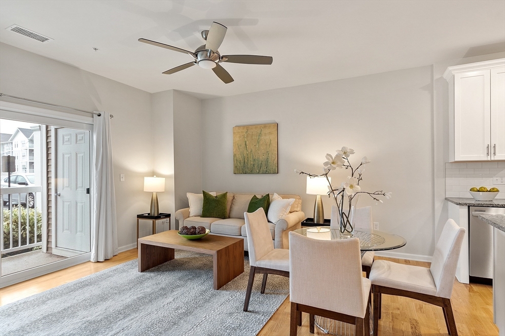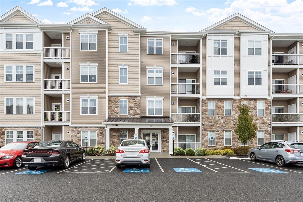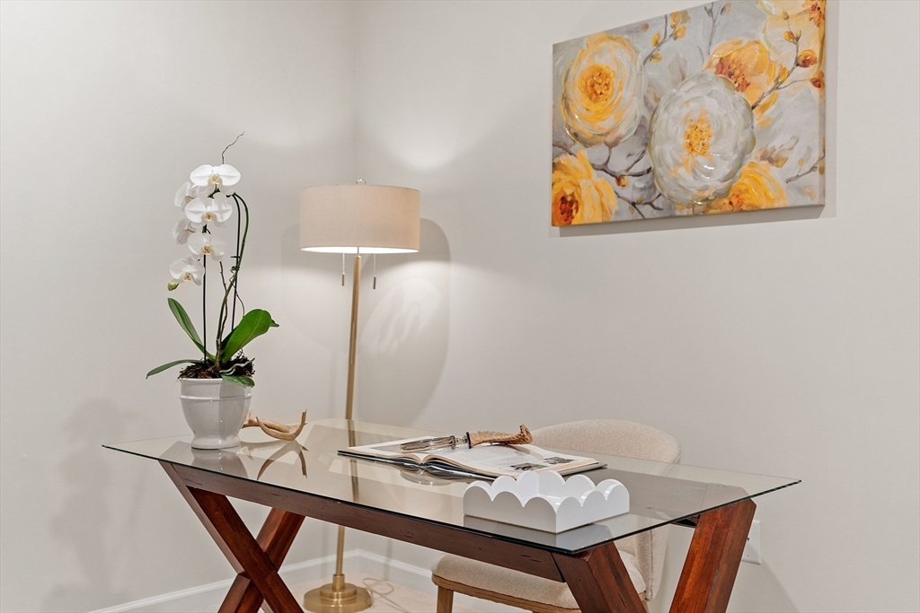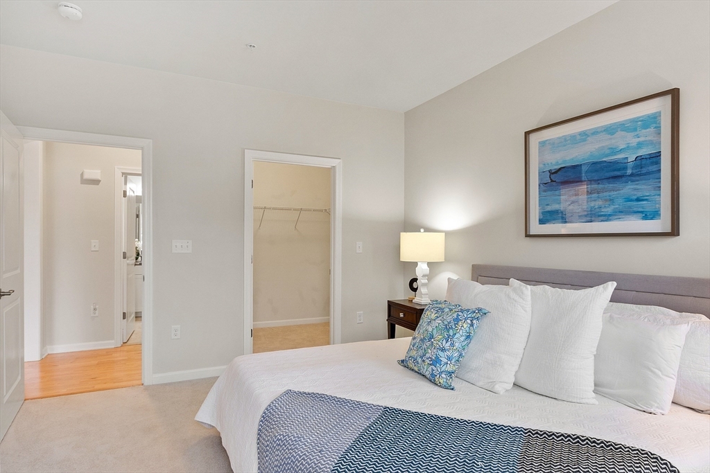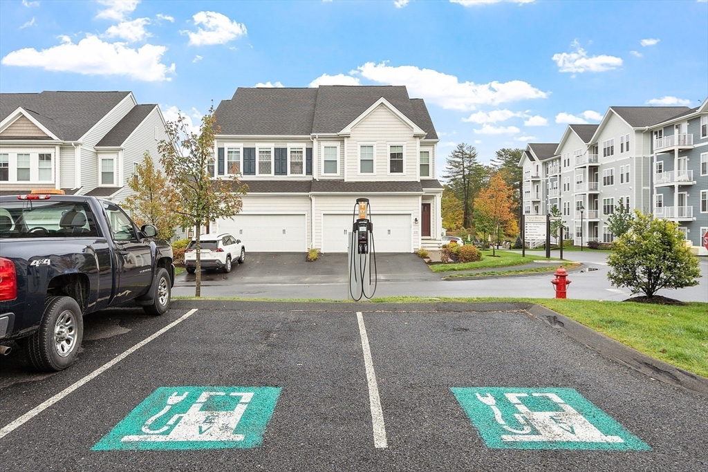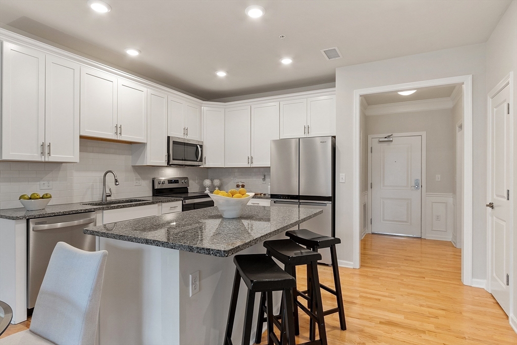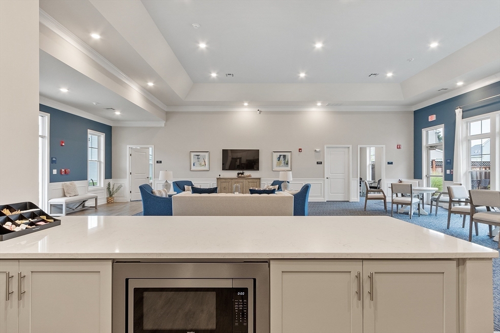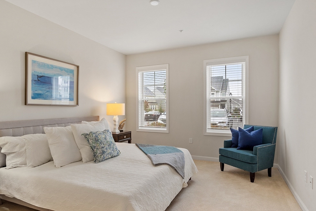 Pristine, nearly new 1-bedroom plus condo in an exceptional 55+ community, just two years young! Enjoy a bright, open-concept layout featuring a modern kitchen with stainless appliances and a large island with seating for 2+. First floor convenience with a pet-friendly slider to an exterior deck. Separate laundry room. Roomy private and luxurious Primary suite with oversized walk in closet. Bonus, flex space room for home office or den. Impeccable and bright with walls of windows and high ceilings throughout. Residents enjoy a myriad of amenities including access to a beautifully appointed clubhouse with room to unwind and relax, fitness equipment, outdoor grills, and a full kitchen. Ideally located near the Concord line, the Rail Trail, and Verrill Farm. EV charging, ample parking, elevator and an owned heated garage space below complete this outstanding offering! Welcome Home!