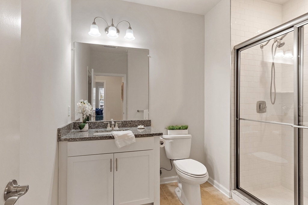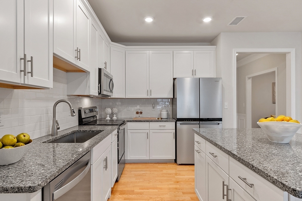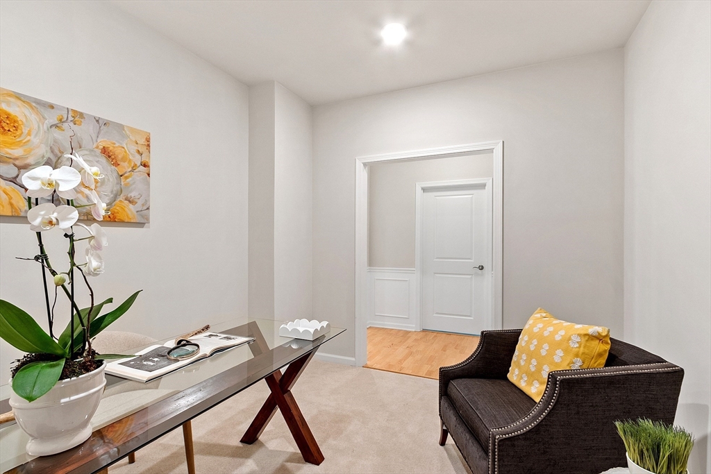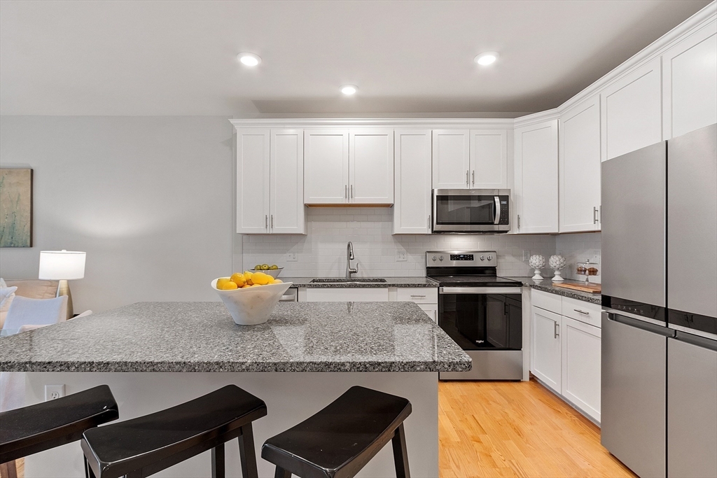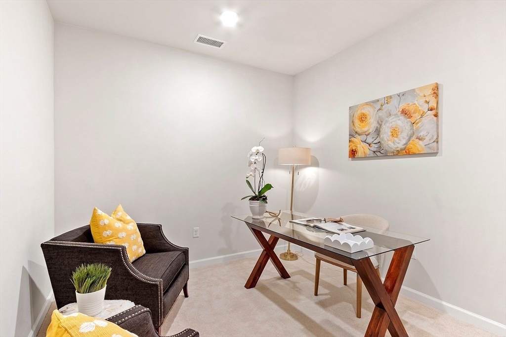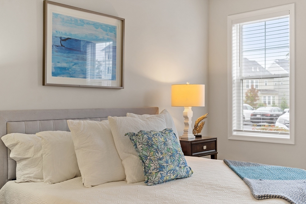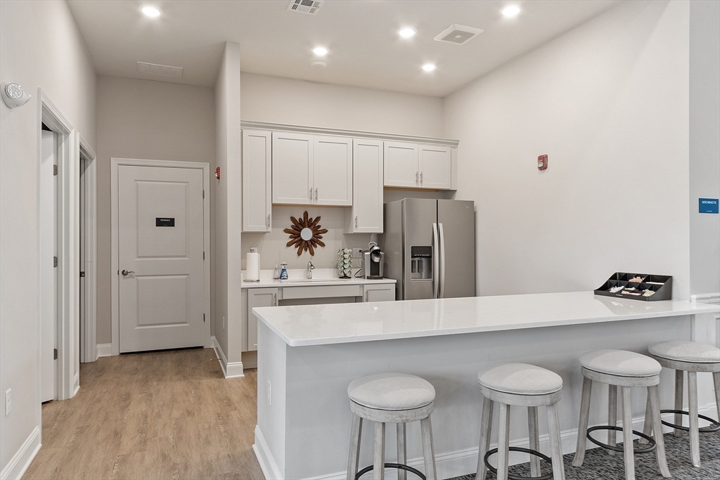 Pristine, nearly new 1-bedroom plus condo in an exceptional 55+ community, just two years young! Enjoy a bright, open-concept layout featuring a modern kitchen with stainless appliances and a large island with seating for 2+. First floor convenience with a pet-friendly slider to an exterior deck. Separate laundry room. Roomy private and luxurious Primary suite with oversized walk in closet. Bonus, flex space room for home office or den. Impeccable and bright with walls of windows and high ceilings throughout. Residents enjoy a myriad of amenities including access to a beautifully appointed clubhouse with room to unwind and relax, fitness equipment, outdoor grills, and a full kitchen. Ideally located near the Concord line, the Rail Trail, and Verrill Farm. EV charging, ample parking, elevator and an owned heated garage space below complete this outstanding offering! Welcome Home!