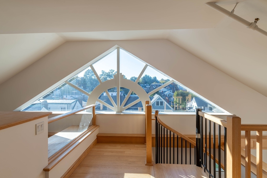Downtown penthouse condo in a landmark building—filled with natural light! Enjoy seamless single-floor living with elevator access—bedroom, bath, kitchen, living, and entry all conveniently on one level for comfort and ease. A dramatic spiral staircase leads to a spacious loft perfect for a home office, studio, or retreat. Original exposed beams, solid oak woodwork, and maple cabinetry offer warmth and character, with hardwood floors throughout. Unique radius and triangular windows frame stunning city views. Modern kitchen with granite countertops and stainless appliances. Professionally managed, shared laundry on your floor, rare dedicated downtown parking spot. Monthly fee covers heat, AC, hot water, master insurance, snow plowing, trash removal, water/sewer, elevator, security, and management—maintenance-free living in vibrant downtown Northampton.