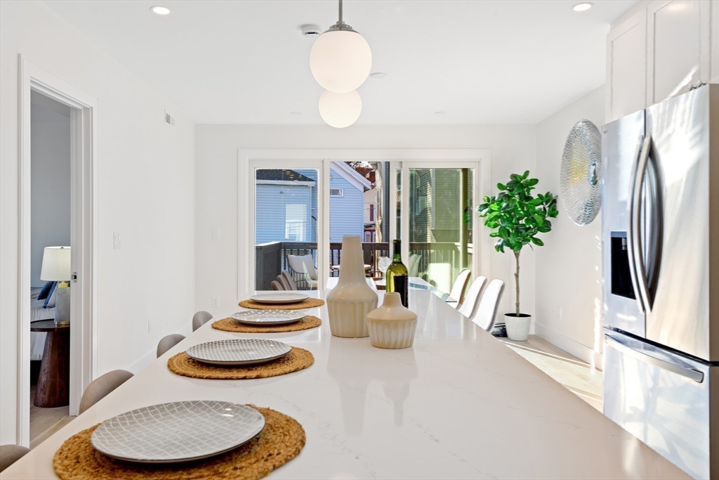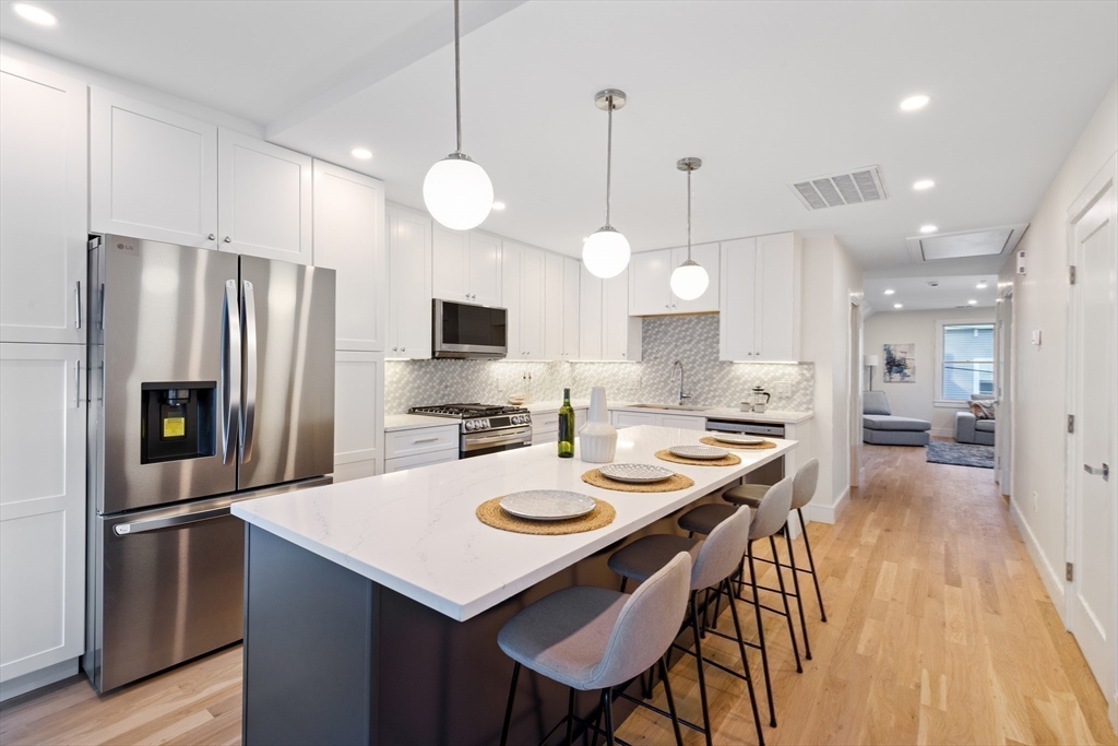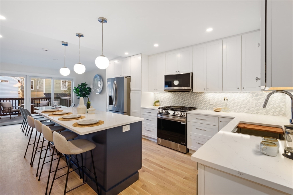 Located at 71 Mozart St U:3 in the vibrant city of Jamaica plain. This condo offers a superb living experience within a well-established neighborhood. The kitchen is a culinary enthusiast's dream, featuring stunning quartz white countertops that provide ample workspace and a sophisticated aesthetic. Shaker cabinets offer generous storage while maintaining a clean, classic design, and the backsplash adds a touch of elegance, protecting the walls while enhancing the room's style. A large kitchen island serves as a central gathering point, perfect for meal preparation and casual dining. The bathroom is designed for comfort and rejuvenation, featuring a tiled walk in rain shower that provides a spa-like experience within the comfort of your own home. All brand-new construction and the builder thought of everything when putting the finishing touches. Large windows, bright sunny interior, open relaxing concept that blends everything into an awesome living space. Quick closing is available.