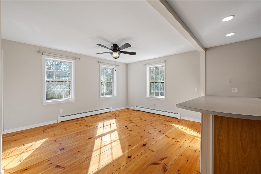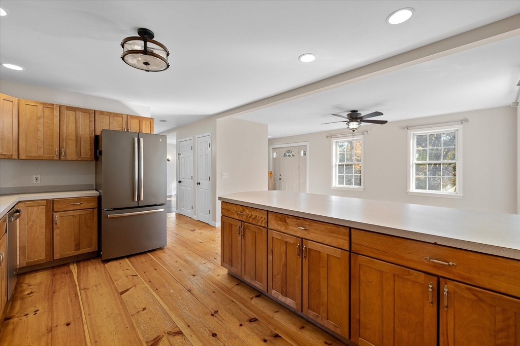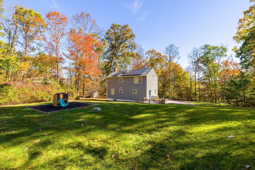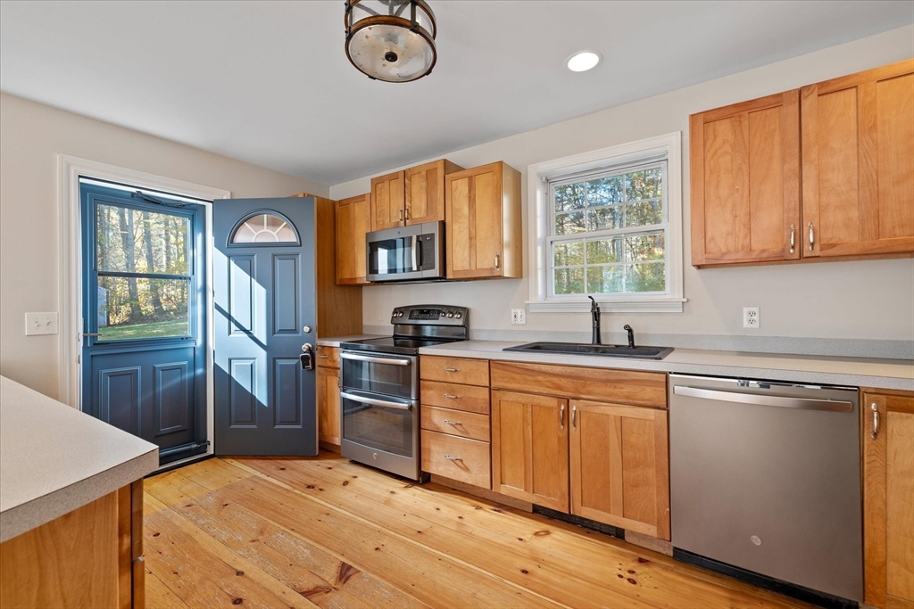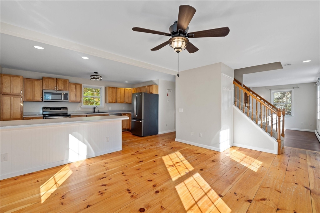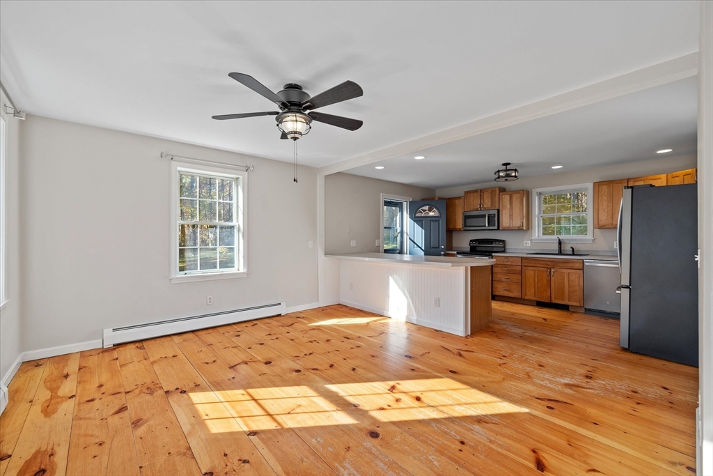Welcome to 9 Town Farm Rd! Step inside and you will find yourself in the heart of the home; the kitchen. The kitchen boasts gorgeous wide plank wood floors and stainless steel appliances and flows right into the adjoining dining room, which offers plenty of space to host friends & family. The living room is centered around a cozy fireplace with wood stove. Upstairs, a spacious primary bedroom awaits with cathedral ceilings and a walk-in closet. An oversized bathroom and the 2 remaining bedrooms complete the second level. Additional space in the basement is a blank canvas for your ideas; make it into a playroom, home gym, you name it! Maximize energy savings with OWNED solar (solar loan to be paid off at closing)!! Nestled on 2.72 acres of tree-line private land you’ll enjoy spending time outdoors just as much as indoors. Your next chapter starts here!