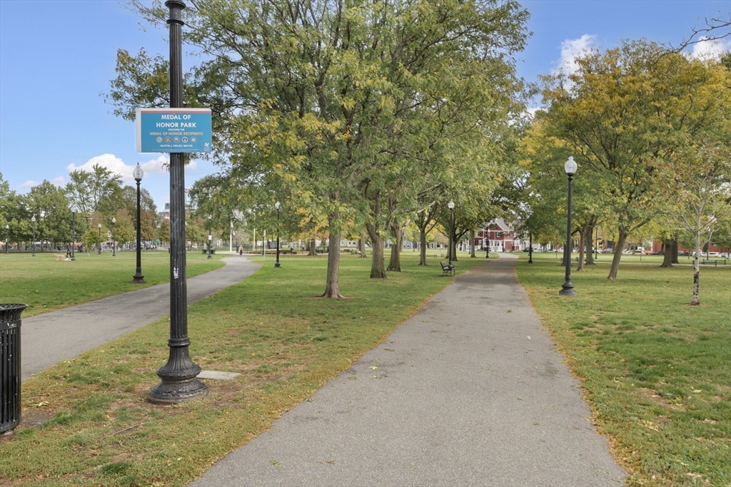Just one block from Medal of Honor Park, this stylish 2-bedroom, 2-bath condo offers the perfect South Boston lifestyle. The bright, open layout features a modern kitchen with ample cabinetry, a large island, and stainless steel appliances that flow into a spacious living area with high ceilings and hardwood floors. A private deck extends the living space outdoors, ideal for relaxing or hosting friends. The two bedrooms are located in the rear of the home and are great size with two south facing windows. Both bathrooms have been tastefully renovated including a walk in glass shower in the primary bathroom. The rarity of this home is the laundry room with great storage space! New split systems were added in 2024. Set in the heart of City Point, you’ll enjoy easy access to Castle Island, the beach, parks, and South Boston’s lively restaurant scene. Combining comfort, convenience, and contemporary style, this home is not to be missed.