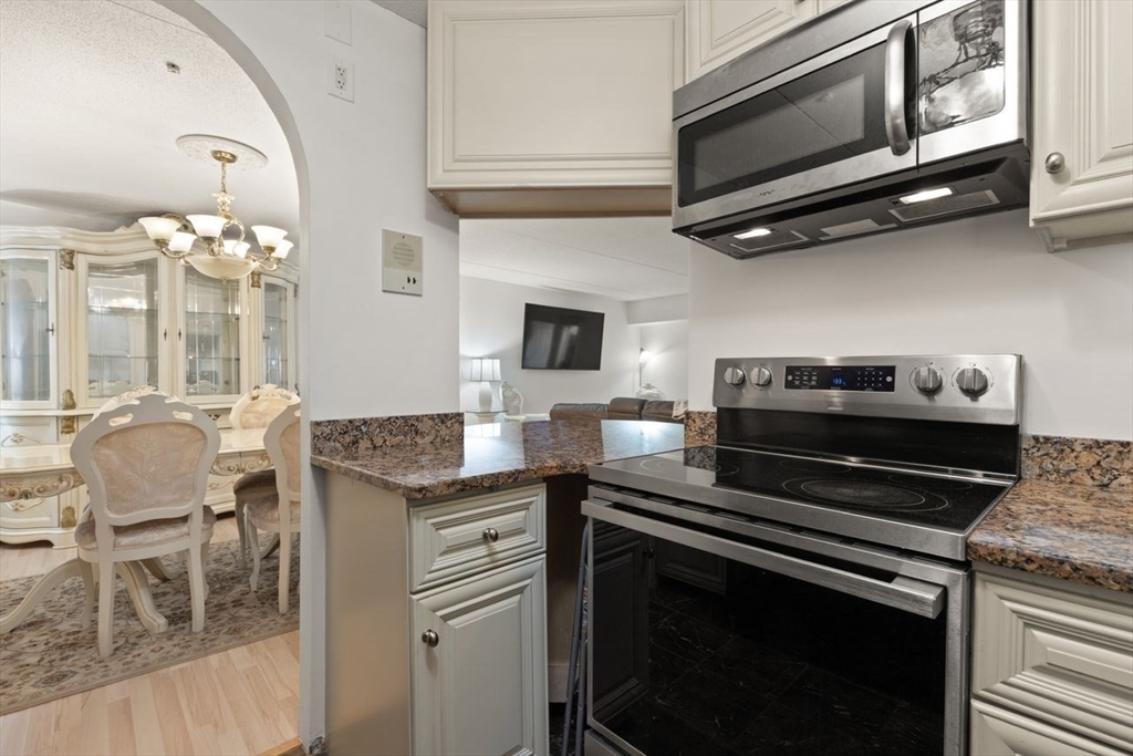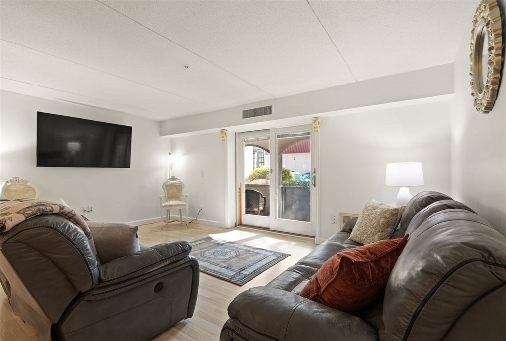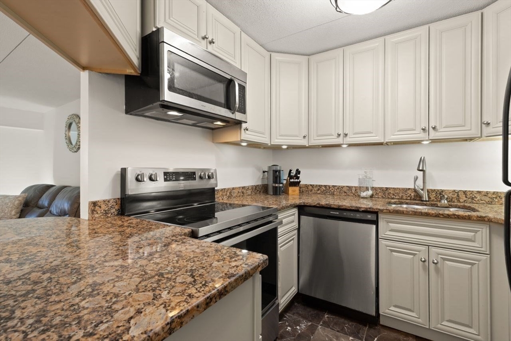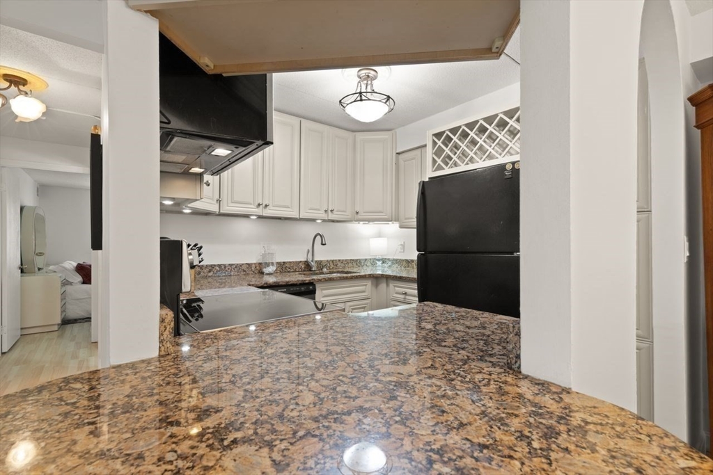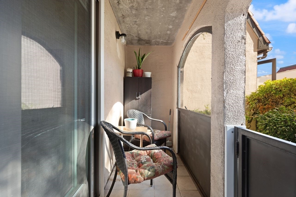 Don't miss this beautifully updated 2 bedroom, 1 full & 1/2 bath garden style, first floor end unit at Madrid Square that awaits you! Many new updates include a new kitchen with beautiful new cabinetry, granite countertops, granite flooring, new stove, microwave. dishwasher & refrigerator! Sit down at your half peninsula with cabinets to enjoy your morning coffee or desk area! Spacious dining area area that opens into a large family room that opens out to a double sliding glass door with privacy screen blinds! Common bath is new with a jacuzzi tub,new vanity & linen closet. Hallway features a large double mirrored closet for storage! Primary bedroom is oversized walk-in closet & updated primary bath! Second bedroom is spacious with a double closet. Renovated in 2018 new patio w/ironworks gate entry to driveway! Patio is partially enclosed.Updated electrical panel, & maintained & serviced HVAC system. Fabulous location with security gate! OPEN HOUSE TUES., OCT. 21st 5:00-6:30 p.m.