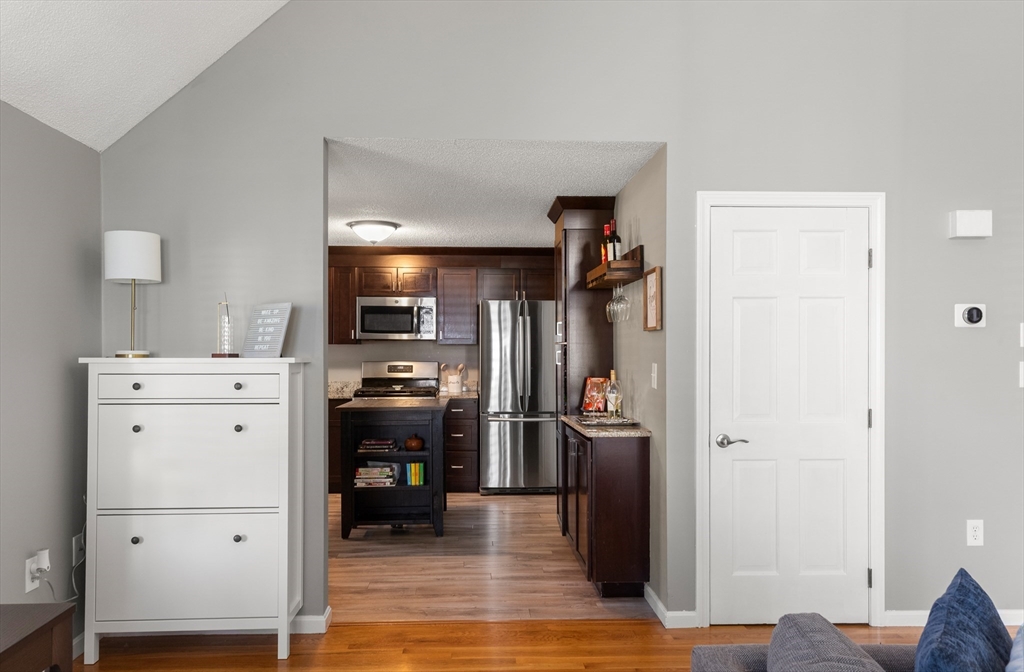 Looking for a home that’s easy to live in and ready to enjoy? This end-unit townhouse at Merrimack Meadows offers the perfect mix of comfort, style, and convenience—with single-level living, natural light throughout, and an open layout that feels instantly welcoming. The vaulted ceilings and hardwood floors add charm, while the kitchen features stainless appliances and plenty of space to cook or gather. Two comfortable bedrooms and a nicely updated bath make for a relaxing retreat. Enjoy your private deck, plus room to expand with both an unfinished attic and basement ready for your ideas. Great Location, offering privacy with convenience. With central air, NEW gas heat, two parking spaces, and a pet-friendly, FHA-approved community, this home delivers easy living in a peaceful setting close to shops, trails, and commuter routes.