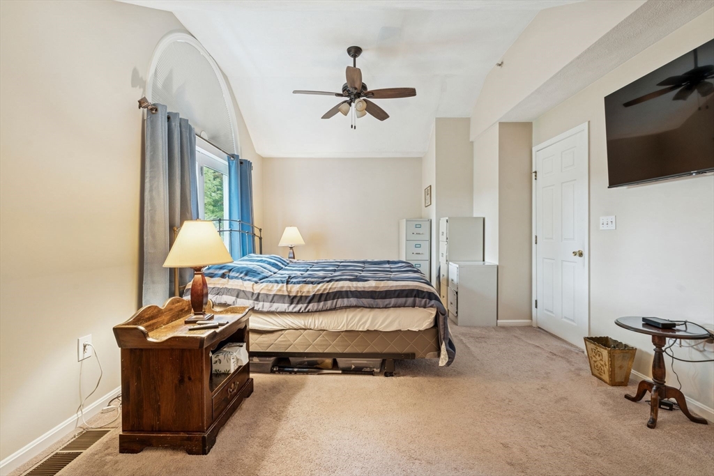 Welcome home to this well maintained multi-level townhouse at Cedar Pond, offering 2 spacious bedrooms, 3 full baths, and 1 half bath. Step into a bright eat-in kitchen with granite countertops, stainless steel appliances, and plenty of cabinet space. The living room features high ceilings, recessed lighting, and a cozy fireplace, with a sitting area that opens to a deck with tranquil views of the pond. Upstairs, the spacious primary suite offers a walk-in closet and ensuite bath with tub/shower combo. The second bedroom includes its own full bath and laundry hookups on the 2nd floor for added convenience. The finished lower level features a large family room, a full bath, and walk-out access to a private patio. Additional highlights include 1-car attached garage, 1 off-street space, central air, and an open floor plan. Enjoy resort-style amenities: pool, clubhouse, gym, tennis & walking trails. Prime location near Rt 1, 95 & 128!