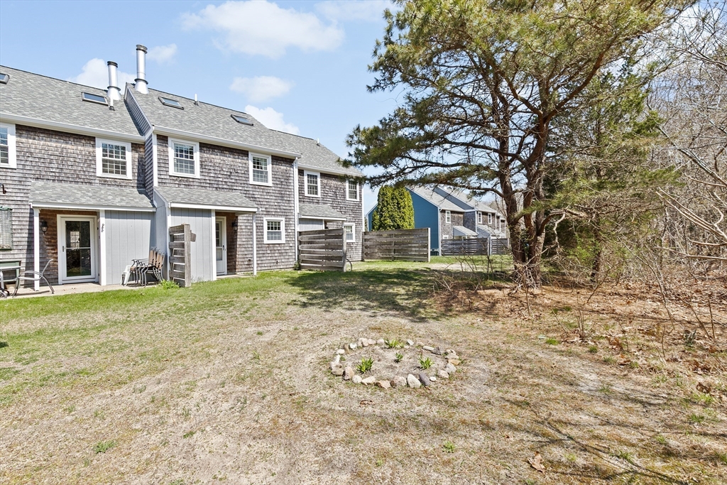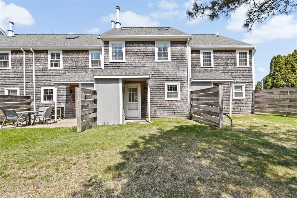 You’ll love this charming townhouse tucked off scenic Route 6A, offering the perfect blend of Cape Cod charm and modern comfort. The first floor features an open floor plan with a cozy wood-burning fireplace, laminate wood flooring, a half bath, and convenient in-unit laundry. Upstairs, two spacious bedrooms include a primary suite with direct access to the full bath for added privacy. The third floor offers a large, versatile bonus room—ideal as a guest space, office, or media room. Enjoy beautifully landscaped grounds that back up to peaceful conservation land, creating a private, picturesque setting: one assigned parking space plus guest parking. Conveniently located near beaches, shops, restaurants, and everything that makes Cape Cod living special. The association allows one small dog (under 10 lbs) or up to two cats. Move right in and start enjoying the Cape Cod lifestyle!