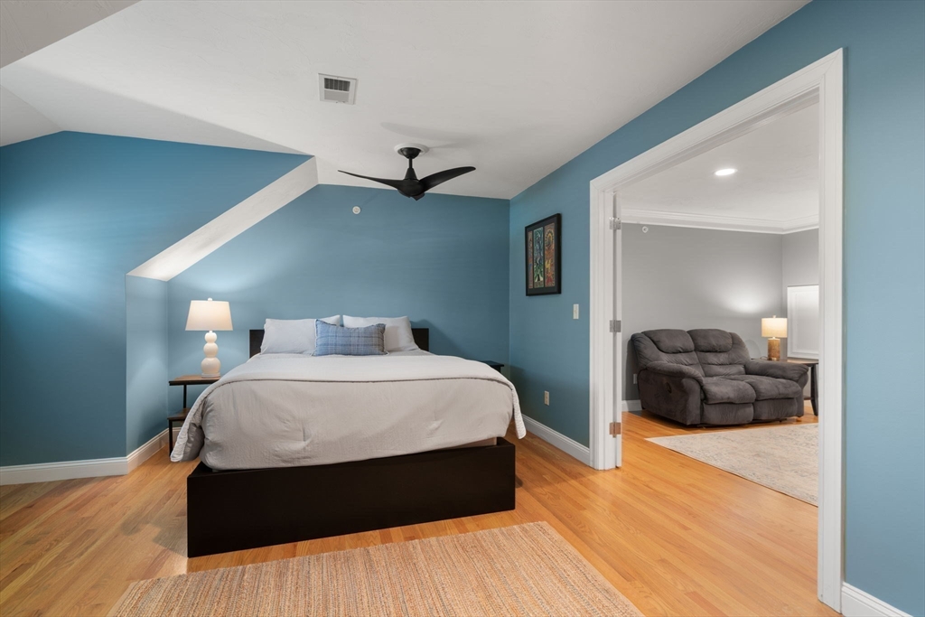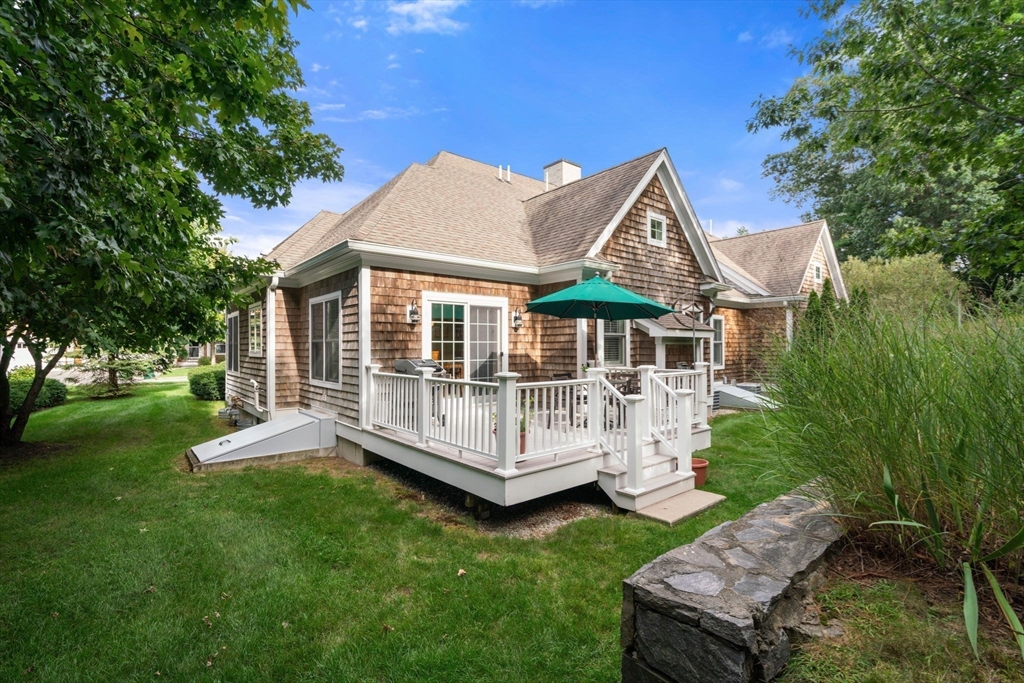 Turnkey unit featuring one of the community’s most desirable floor plans with sought-after one-floor living.The main level offers a dramatic vaulted great room with gas fireplace, abundant natural light, and custom built-ins, a formal dining room with French slider to a lovely deck, and a bright kitchen with stainless-steel appliances.The first-floor primary suite includes an ensuite bath, organized walk-in closet, and custom built-in cabinetry, while the private office showcases detailed millwork and additional built-ins.Upstairs features a loft area, ensuite bedroom, and an additional bonus room ideal for guests or a second office.The finished lower level with luxury vinyl flooring and full bath provides space for a media room, gym, or extra living area, plus ample storage in the unfinished basement and attic.Quietly set back from Old Sudbury Road, close to the town center, rail trail, and new senior center, this home offers easy, low-maintenance living in a central Wayland location.