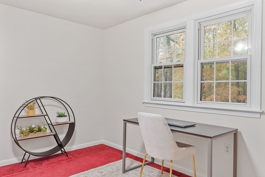 Welcome home to Drummer Farm! Nestled in a quiet off-road neighborhood and bordered by expansive woodlands behind the property, this serene condominium offers a peaceful living environment. The first floor features gleaming hardwood floors and an open-concept layout that allows abundant natural light and excellent airflow. A sliding door leads to a back deck, perfect for enjoying the tranquil backyard. This level also includes an updated half bathroom. Upstairs, you'll find two spacious bedrooms and a full bathroom. The thoughtfully finished basement provides additional living space, ideal for a family room/third bedroom, and exercise area. Top-rated school system. A perfect location for commuters, only 3.6 miles from the South Acton Train, and close to Route 2 and Route 495.