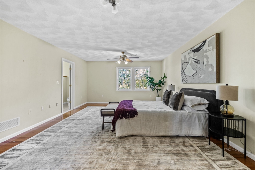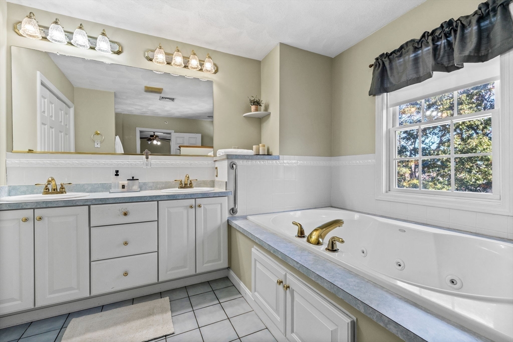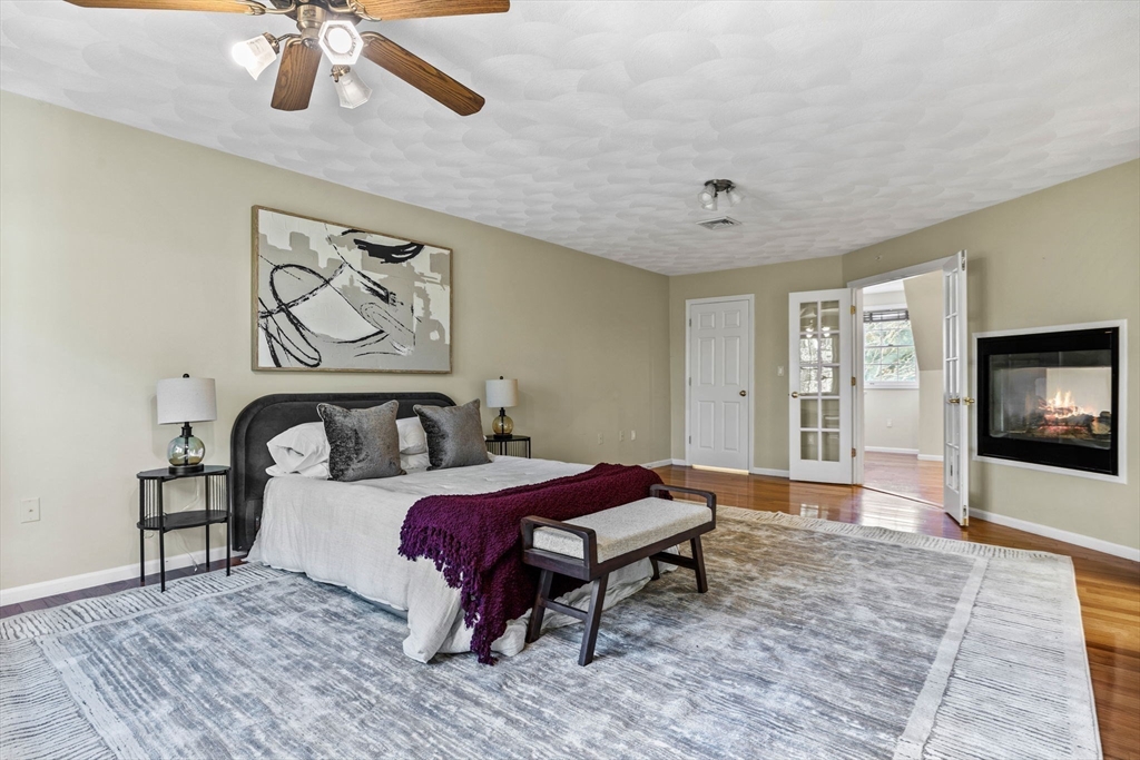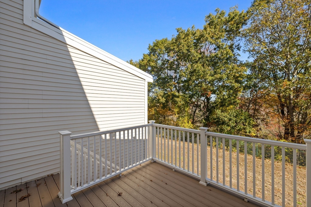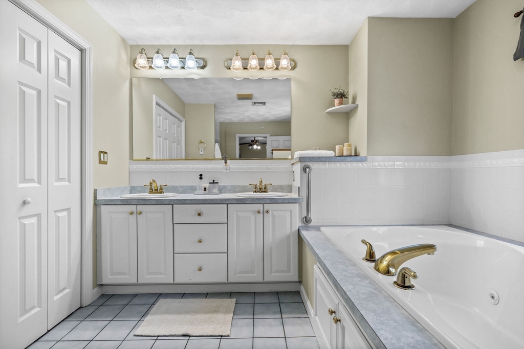 Here is your opportunity to own a townhome in the sought after Evergreen Estates. The tiled foyer leads to a versatile lower level with flex rooms, perfect for a home office, gym, playroom, or guest space. The main level boasts a lovely open floor plan with kitchen, dining & living area with fireplace, hardwood flooring & recessed lighting. The kitchen is an entertainer’s delight with breakfast bar, ample counter space, & cabinetry. This floor also has a bedroom & a full bath with laundry hook-up and a slider leading out to back deck overlooking conservation land, accessible from both the kitchen & bedroom. Upstairs is the primary suite retreat with a fireplace open to both the loft & bedroom. The loft with wet bar is suitable for an office, sitting room, or another room to entertain guests, & the oversized bedroom offers two oversized closets & full bath with jacuzzi tub, shower & double sinks. Just in time for the holiday season, this townhome is waiting for you, truly a MUST SEE!