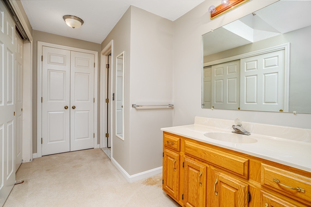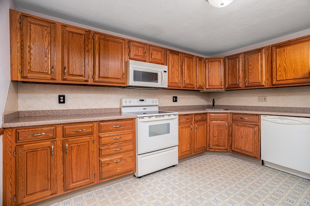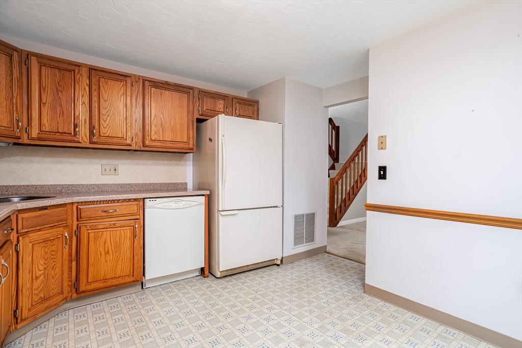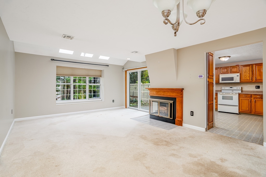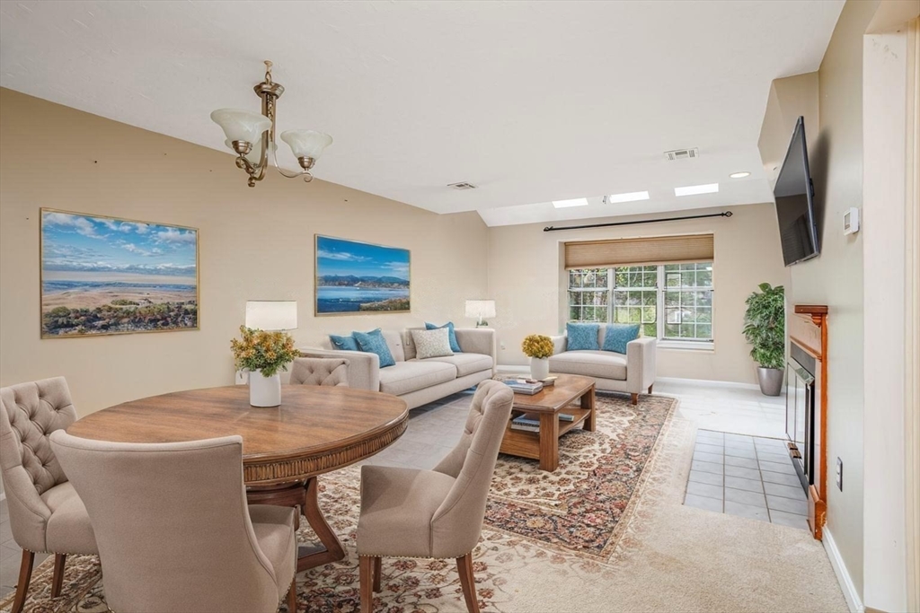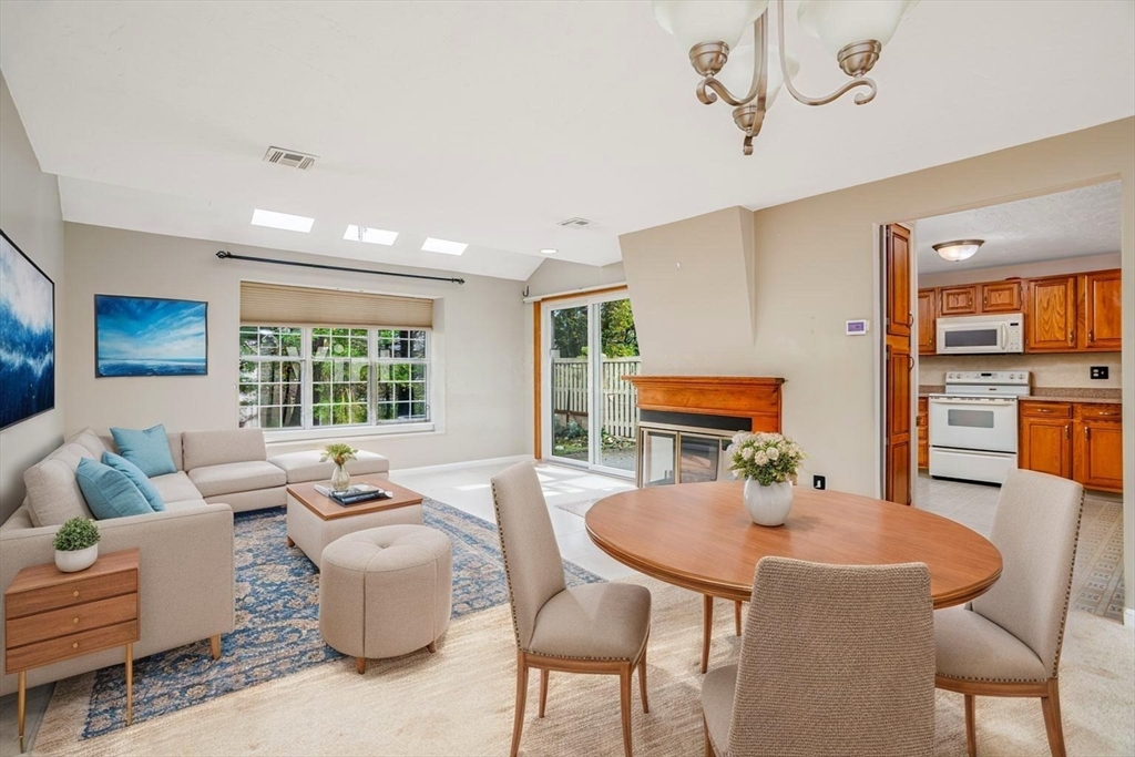 Discover potential in this "Oxford" townhome at Ridgefield! Located in a highly sought after association known for its outstanding amenities & community, this unit is priced BELOW market value & presents an excellent opportunity for those seeking to customize & create their ideal living space! Half bath on the first floor, bright & sunny spacious eat-in kitchen with Corian counters & slider to private yard & patio. Living room & dining area with fireplace, skylights, cathedral ceiling & second slider to patio. Second level includes open loft area & primary bedroom with a fabulous primary suite with a skylit dressing area & bathroom with shower stall. Second bedroom, additional full bathroom & convenient laundry area. Attached garage & central air. Bosch heat pump heating system/AC condenser updated in 2020 & water heater 2023. Condo fee INCLUDES full insurance (in & out), expanded basic cable TV & Internet! Enjoy the clubhouse, pool, tennis, pickleball, gym, social events & more!
