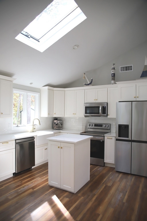 This gem really sparkles from the minute you drive up. The interior will blow you away with its openness, cathedral ceilings with skylights, beautifully updated flooring throughout. 3 Lg Bedrms with master ensuite with nicely updated 3/4 bath. This one level home also has main level laundry, central A/C and great sliders to large rear deck . This property is updated throughout and ready to move right in. Great Monument Beach just about a mile away