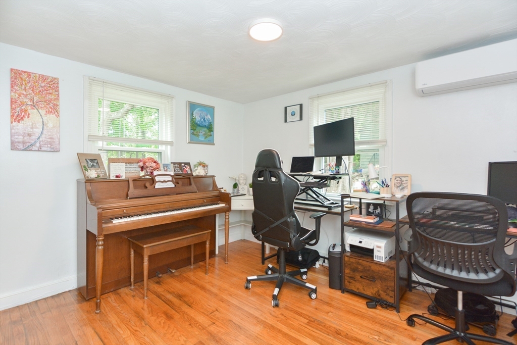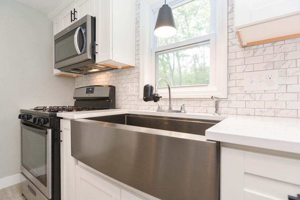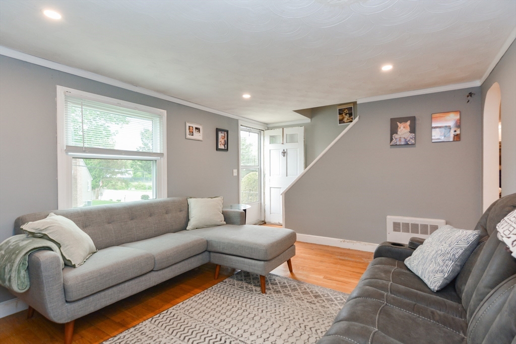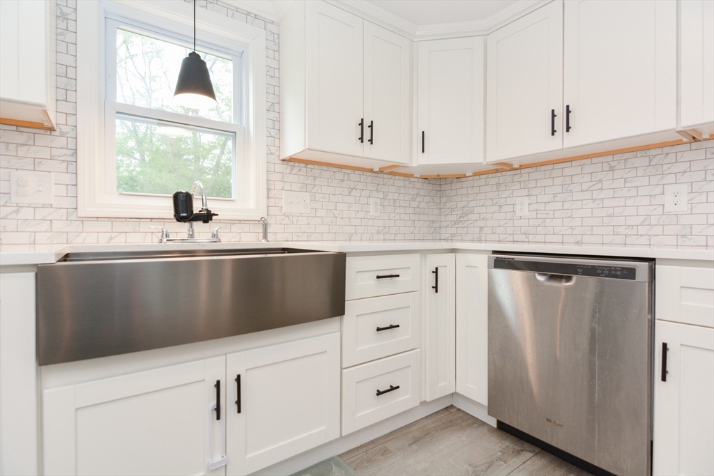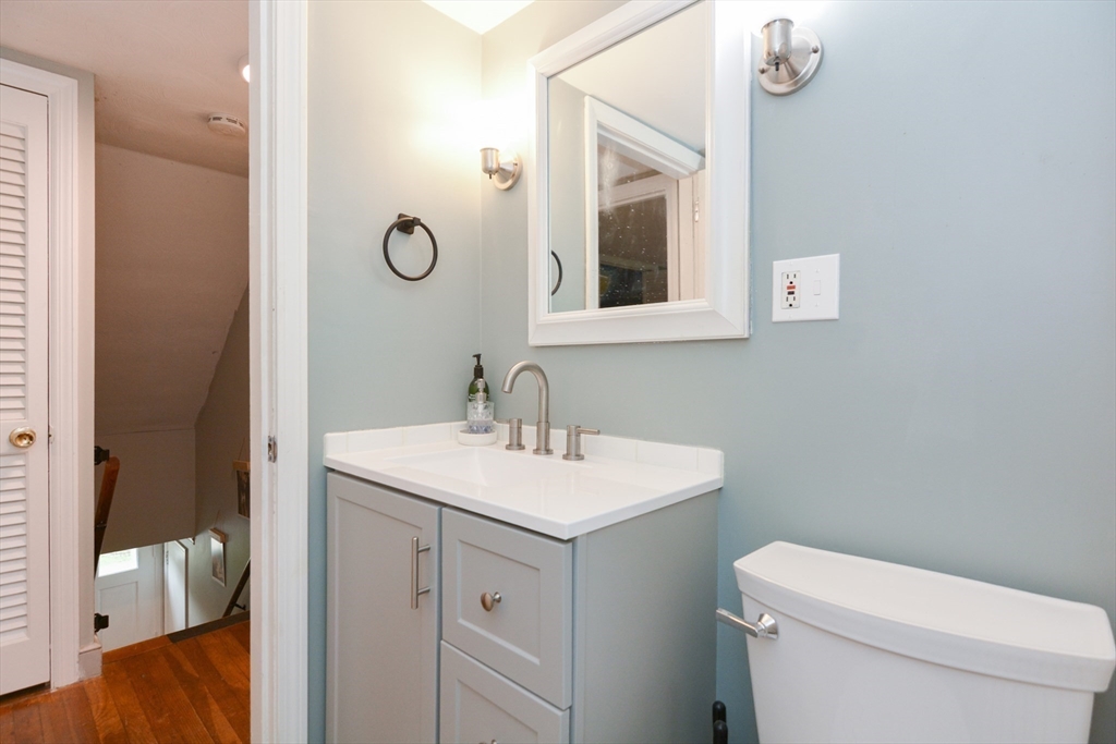 Welcome to this charming and inviting Cape nestled on a quiet street in a desirable Ashland neighborhood. Enter through the sunroom into a beautifully renovated kitchen (2023), opened up to the dining room ideal for entertaining, spacious living room with fireplace, and the option of a first-floor bedroom or home office, plus a full bath. Upstairs offers two generous bedrooms and another full bathroom recently remodeled (2024). Hardwood floors run throughout, with a finished basement adding extra space. Enjoy a private backyard with a storage shed, perfect for outdoor fun. Many other major updates such as mini splits (2024) for heating and cooling, new windows throughout (2024), and chimney repointed and capped (2023). Conveniently located near Ashland and Framingham commuter rails, Routes 9, 495, and the Pike, with quick access to parks, trails, shopping, and dining. Solar panels keep electric bills low – see agent for details!