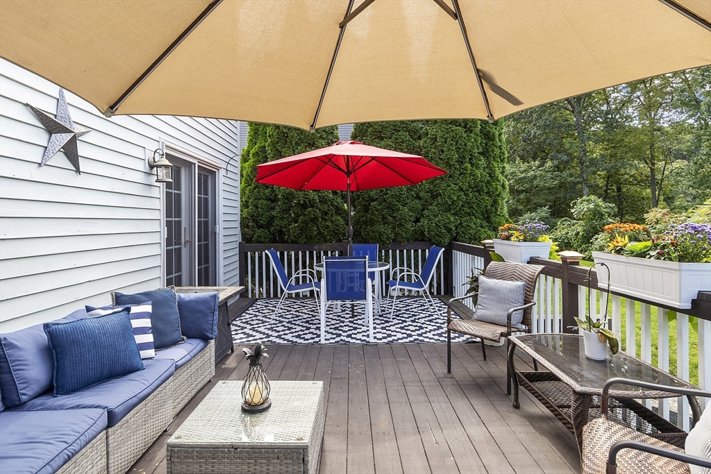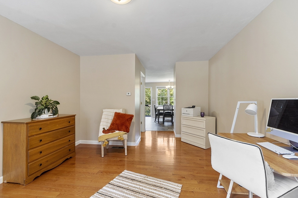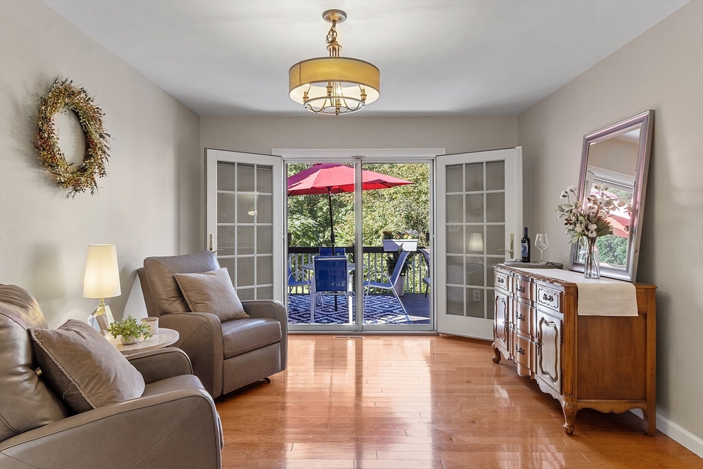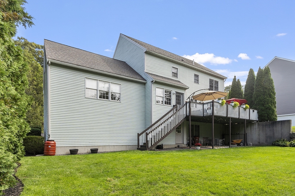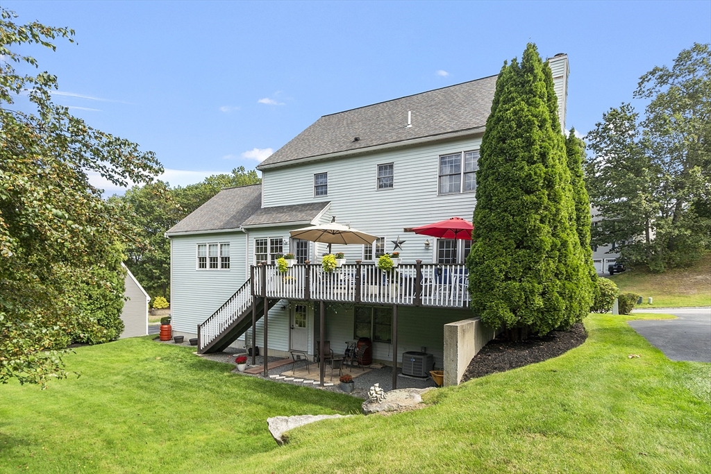 Price Improvement!! Don't miss your opportunity to live in the highly desired Persimmon Woods Heights! This beautifully maintained home overlooks the 18th green of Bradford CC, offering a well landscaped, flat yard with privacy. The Open layout is perfect for entertaining. First floor features hardwood floors, Large living room with recessed lighting, cozy fireplace, and french doors opening to the large deck. Eat-in Kitchen with granite countertops, tile backsplash, and stainless-steel appliances. Kitchen opens to the bright and spacious family room. Half bath and home office complete the main level. The second floor boasts a hardwood staircase, spacious bedrooms with LVP, and an updated full bath. The primary suite offers comfort and convenience with a large walk-in closet, updated bath, and attic access. Unfinished walkup attic provides perfect space to add a bonus room. Newer roof, fresh paint throughout interior, New Garage doors, walk-out basement with garage access.