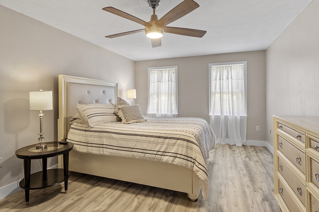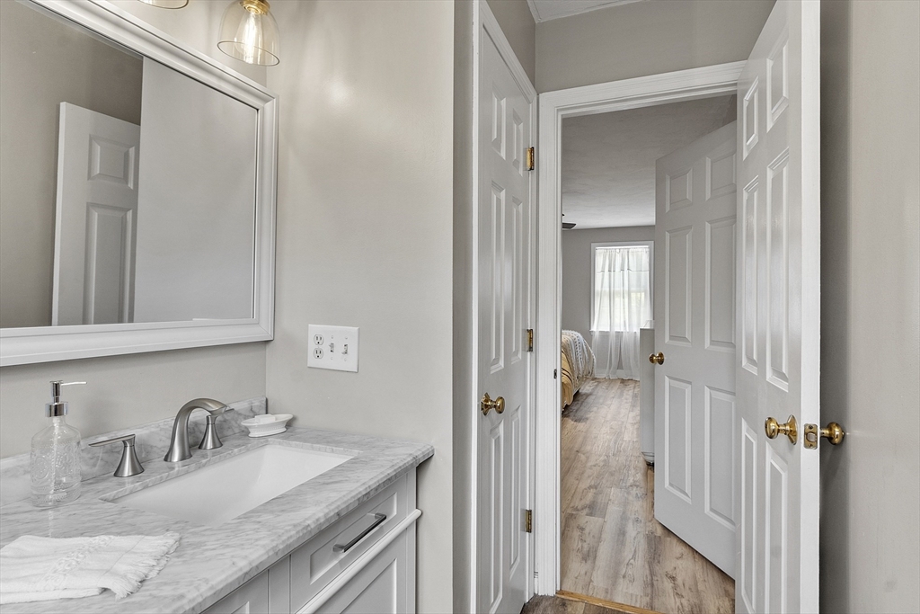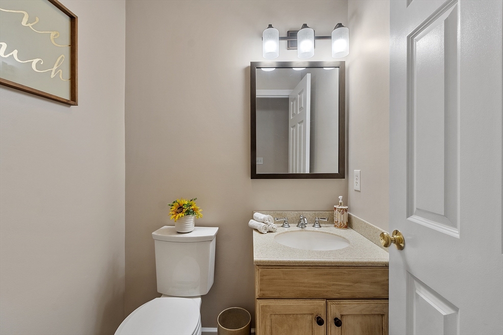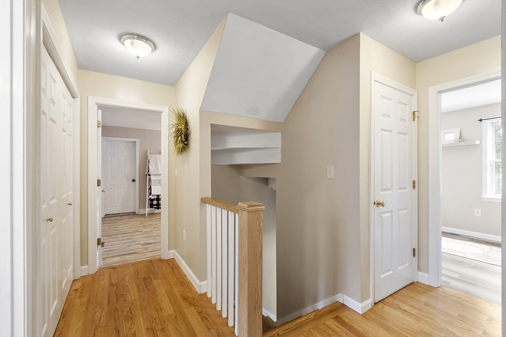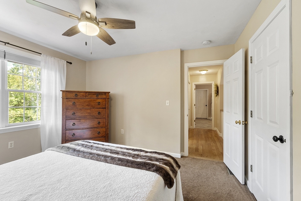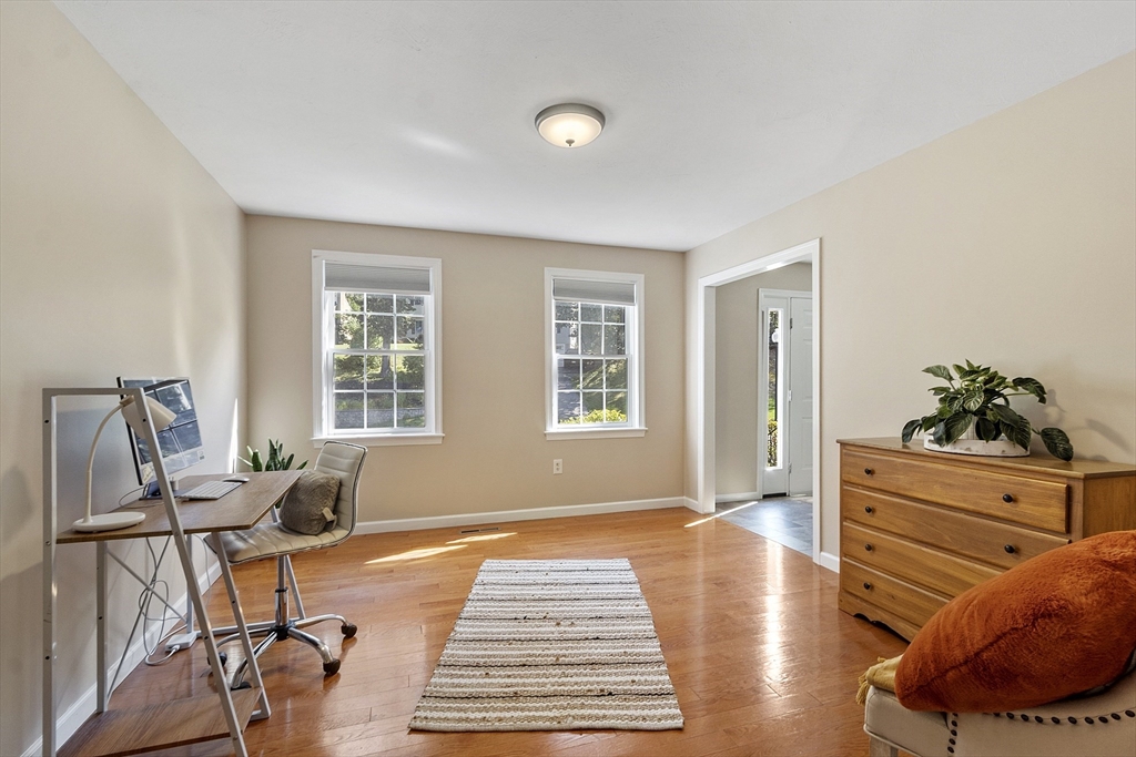 Price Improvement!! Don't miss your opportunity to live in the highly desired Persimmon Woods Heights! This beautifully maintained home overlooks the 18th green of Bradford CC, offering a well landscaped, flat yard with privacy. The Open layout is perfect for entertaining. First floor features hardwood floors, Large living room with recessed lighting, cozy fireplace, and french doors opening to the large deck. Eat-in Kitchen with granite countertops, tile backsplash, and stainless-steel appliances. Kitchen opens to the bright and spacious family room. Half bath and home office complete the main level. The second floor boasts a hardwood staircase, spacious bedrooms with LVP, and an updated full bath. The primary suite offers comfort and convenience with a large walk-in closet, updated bath, and attic access. Unfinished walkup attic provides perfect space to add a bonus room. Newer roof, fresh paint throughout interior, New Garage doors, walk-out basement with garage access.