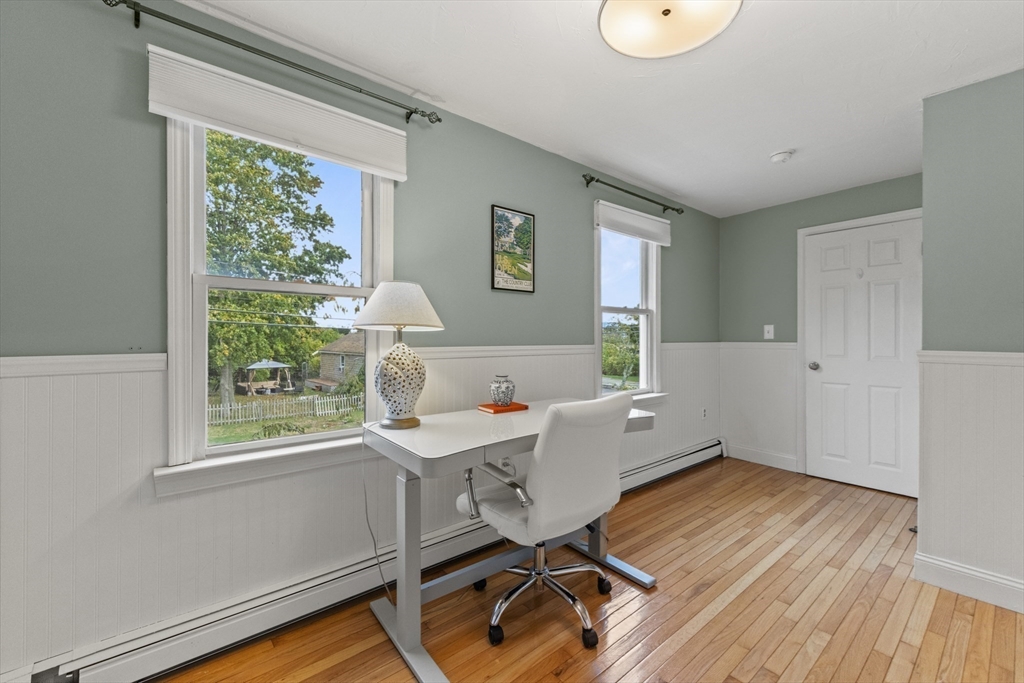 Welcome to coastal living at its finest in the heart of Brant Rock village, where the spirit of community meets the beauty of the sea. Steps from the beach & local dining, this home invites you to savor morning coffee with ocean breezes & sunset strolls by the shore Set back from the main road, the property features a private driveway & a fully fenced yard with a spacious shed for all your storage needs. Inside, the open floor plan includes an updated kitchen with granite countertops, stainless steel appliances, a center island, & abundant cabinet space. The kitchen flows into the dining area & a cozy sitting room with a fireplace, plus a separate living room for added comfort. Upstairs, you’ll find 2 bedrooms & a spacious full bath with a jacuzzi tub, walk-in shower, & laundry. The primary suite features a tray ceiling, walk-in closet, and en suite bath. A spiral staircase leads to a third-floor bonus room with cathedral ceilings and a private deck- offering panoramic views.