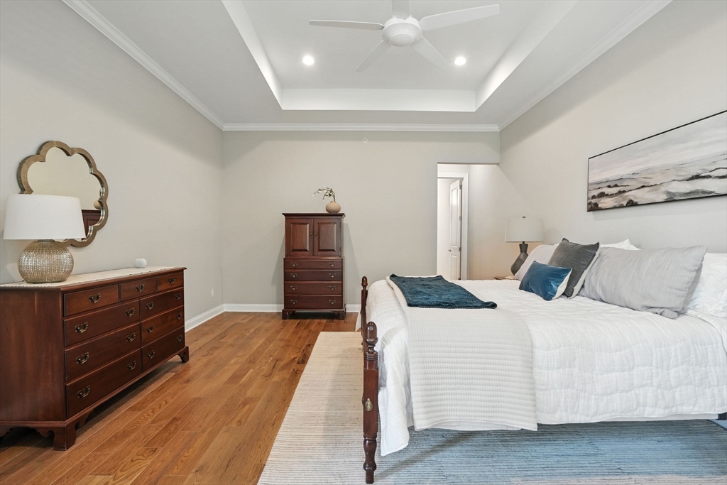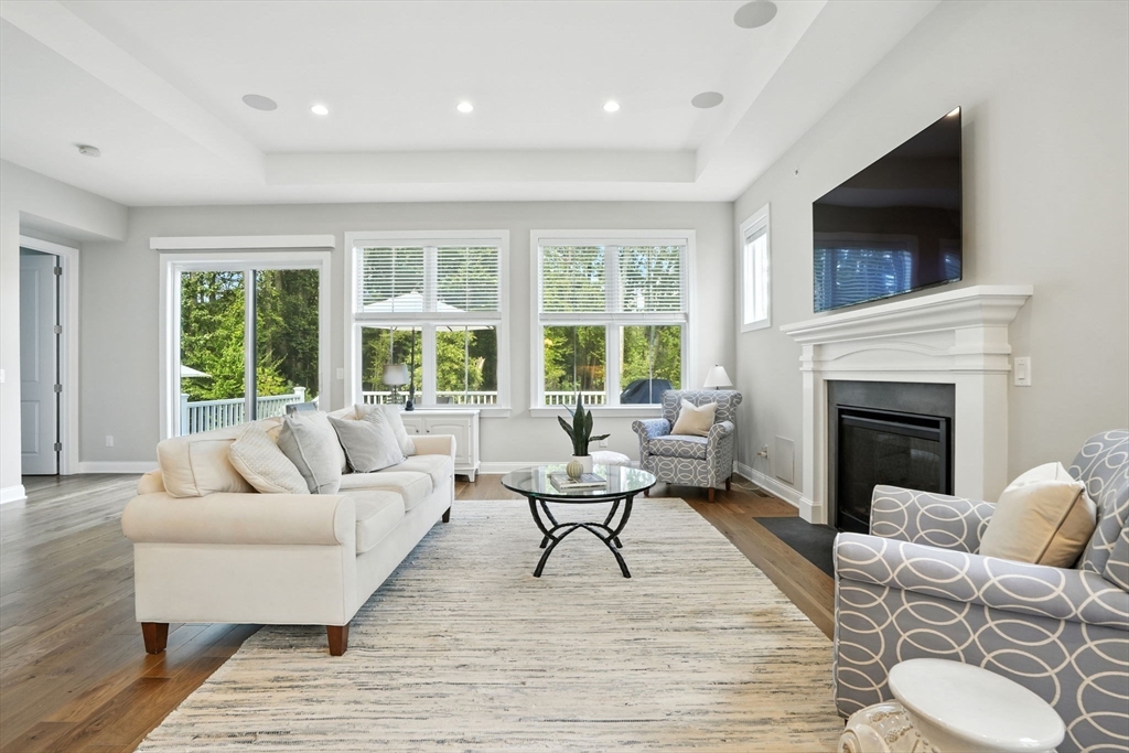 Over $140K in upgrades! This 2022 townhome in the coveted Enclave at Boxborough (a 55+ community) offers more than 3,000 sq.ft. of refined living. The open-concept design showcases a chef’s kitchen w/ an oversized island & premium stainless appliances, flowing effortlessly into the dining & fireplaced living rm. From here, glass doors open to a private deck & patio overlooking conservation land, a tranquil setting for relaxation & entertaining. The 1st floor primary br is a true retreat w/walk-in closet & spa-like bath featuring a double vanity, oversized shower & private wc. A home office, laundry, mudroom & half bath complete the main level. Upstairs you’ll find a sun-drenched family room, guest suite w/ private bath & generous storage. The finished lower level adds ~900 sq.ft. of flexible space, + add’l storage & a workshop area. Residents enjoy resort-style amenities incl. a heated pool, clubhouse & fitness center - delivering the perfect balance of luxury, privacy & convenience.