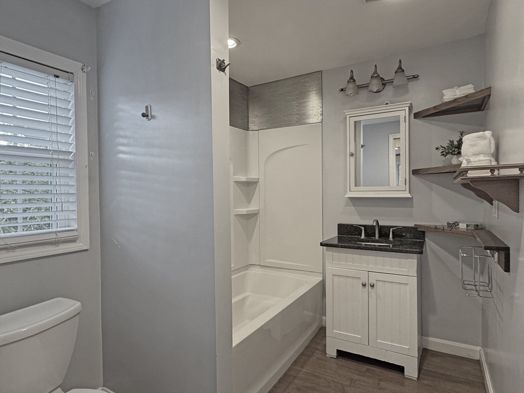 WELCOME HOME to this well-maintained 2-bed, 2 full bath property ideal for first-time home buyers or those looking to downsize. Since 2012, numerous updates have been completed, including a renovated kitchen, 2 updated baths, new flooring, ceilings, walls, 200amp service, touch faucet, convection double oven, soft-close kitchen drawers, Harvey windows, vinyl siding & recently painted interior.. 2 bedrooms were thoughtfully combined to create a spacious primary suite with a walk-in closet & private bath. Add'l improvements include newer roof (6 years), side deck (5 years), hot water tank (4 years), & the option to connect to a tankless hot water system. The open-concept layout features a kitchen that flows seamlessly to the living room, with an adjacent dining area leading to a 12’ x 8’ composite deck. Hardwood floors run throughout the home. The 0.11-acre lot is fully fenced with a gate that allows vehicle access & includes a large shed,& 14’ x 14’ screened house,