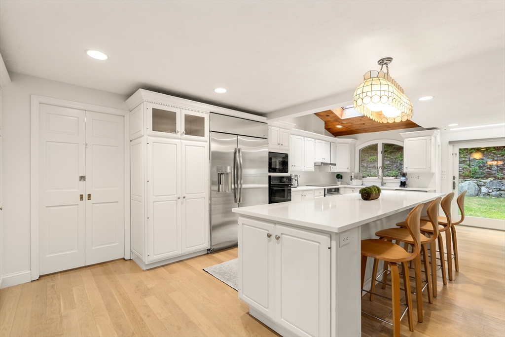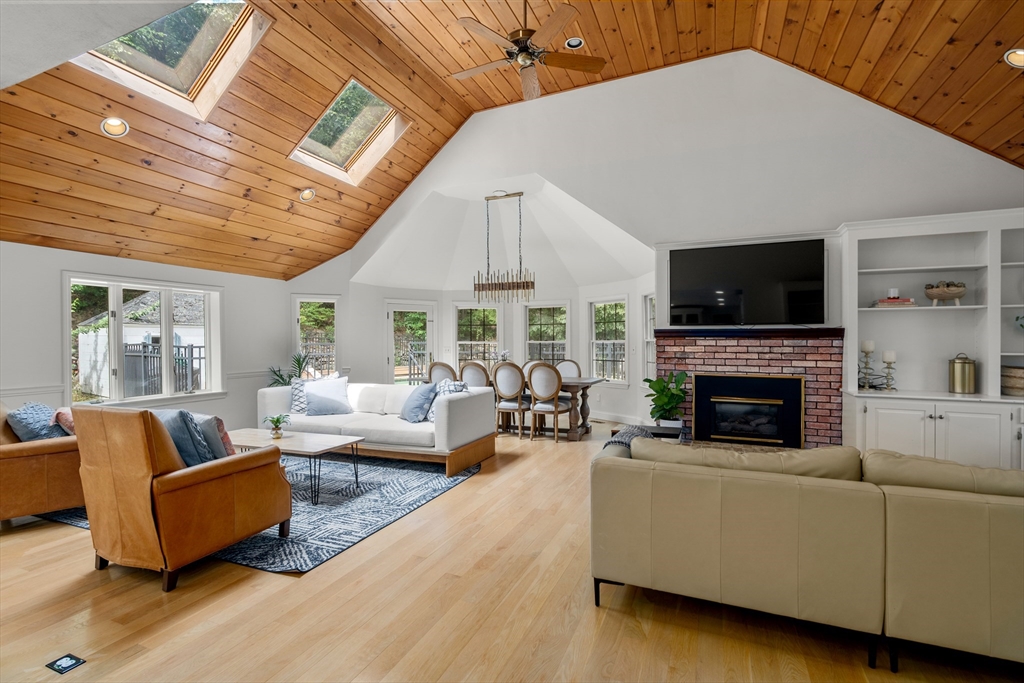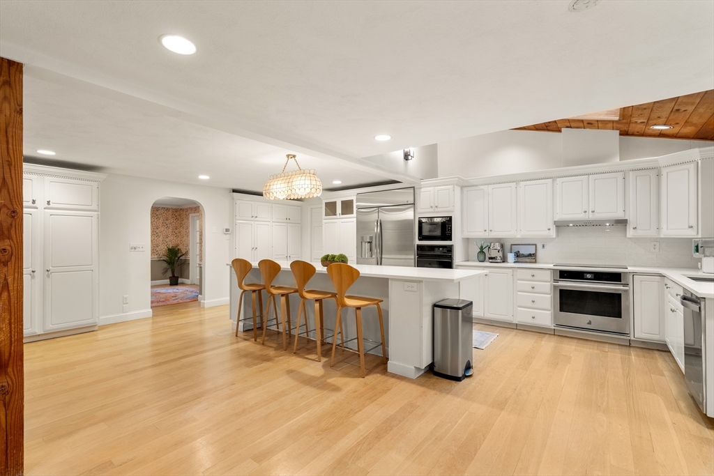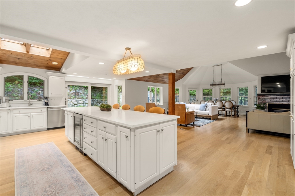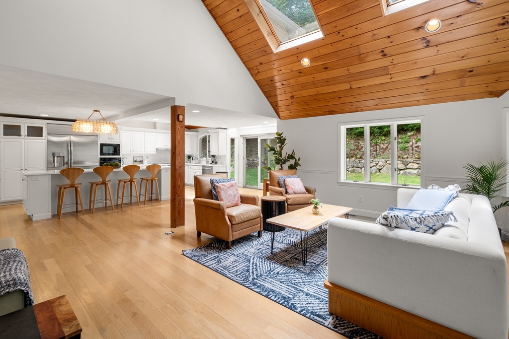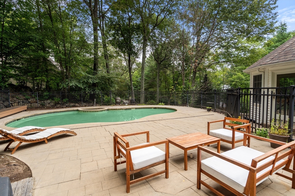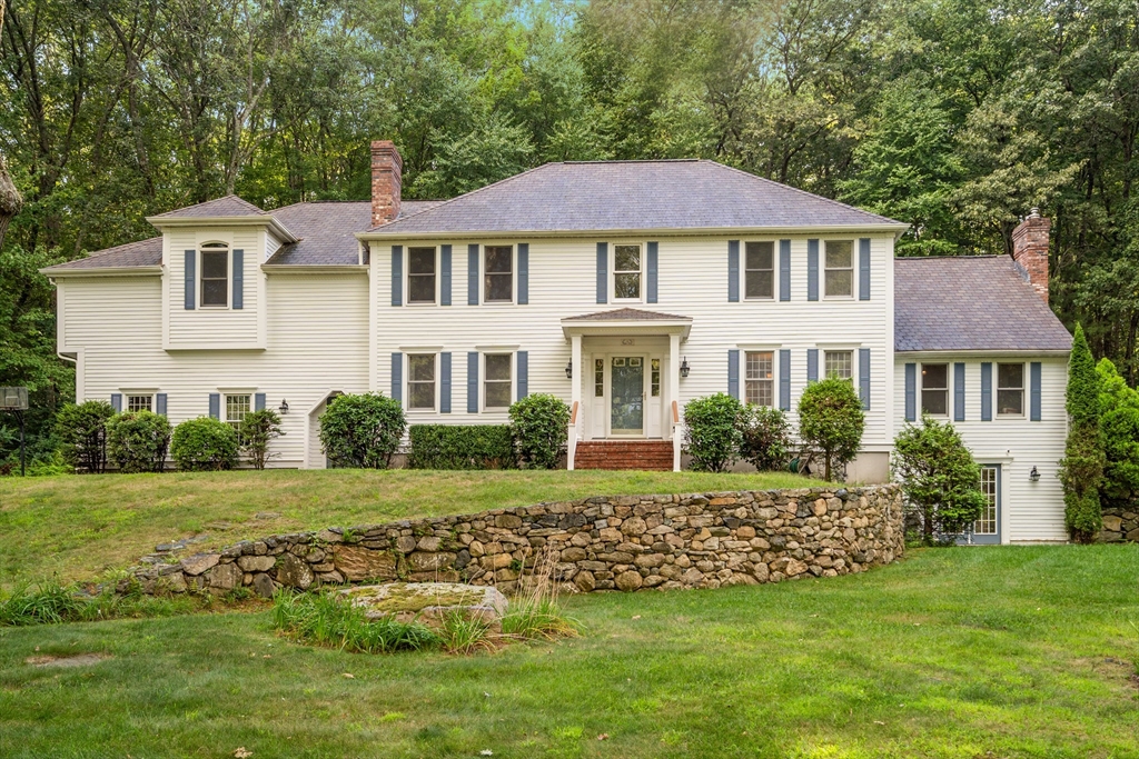 This stately colonial home is nestled in one of Southborough’s premier neighborhoods on a quiet double cul-de-sac, just minutes from Rt 9, 495, Mass Pike, and MBTA. With over 5,000 sq. ft. of flexible living space, this gracious home features 5 bedrooms (incl. a first-floor in-law/au pair suite), 3 full baths, and striking architectural details throughout. The sun-drenched kitchen impresses with wood-plank ceilings, a 12’ quartz island, and abundant cabinetry—opening seamlessly to an expansive great room with skylights, gas fireplace, built-ins, and soaring vaulted ceilings. The spacious primary suite includes a fireplace, oversized walk-through closet/dressing room, and large bath. A bonus room adjoins the suite, perfect for an office/den or nursery. Additional highlights include: garage with workshop/storage and 2 EV chargers, finished walk-out basement with kitchen, heated gunite pool, private acre+ lot, and recent 4" pickled oak hardwoods throughout.