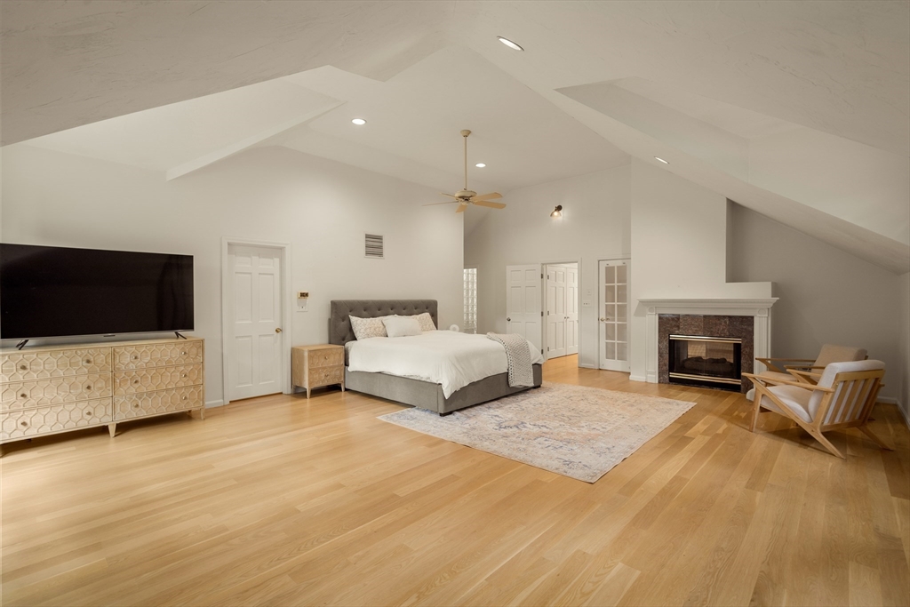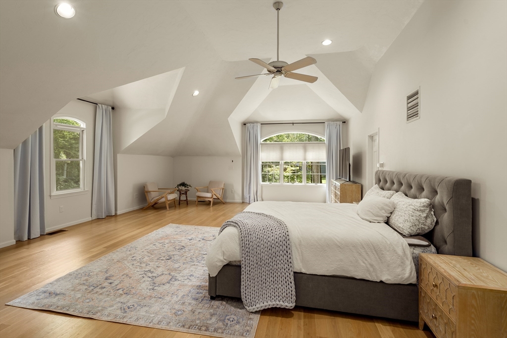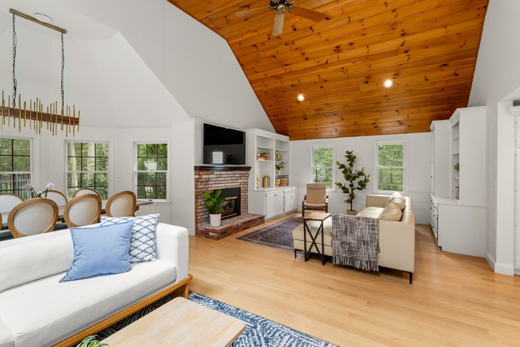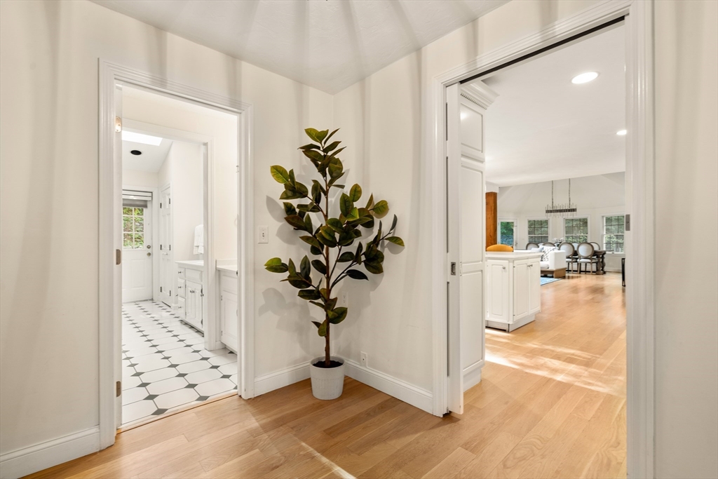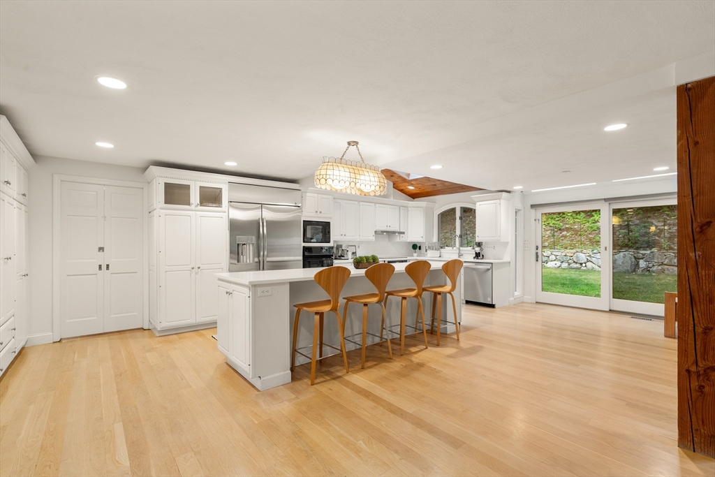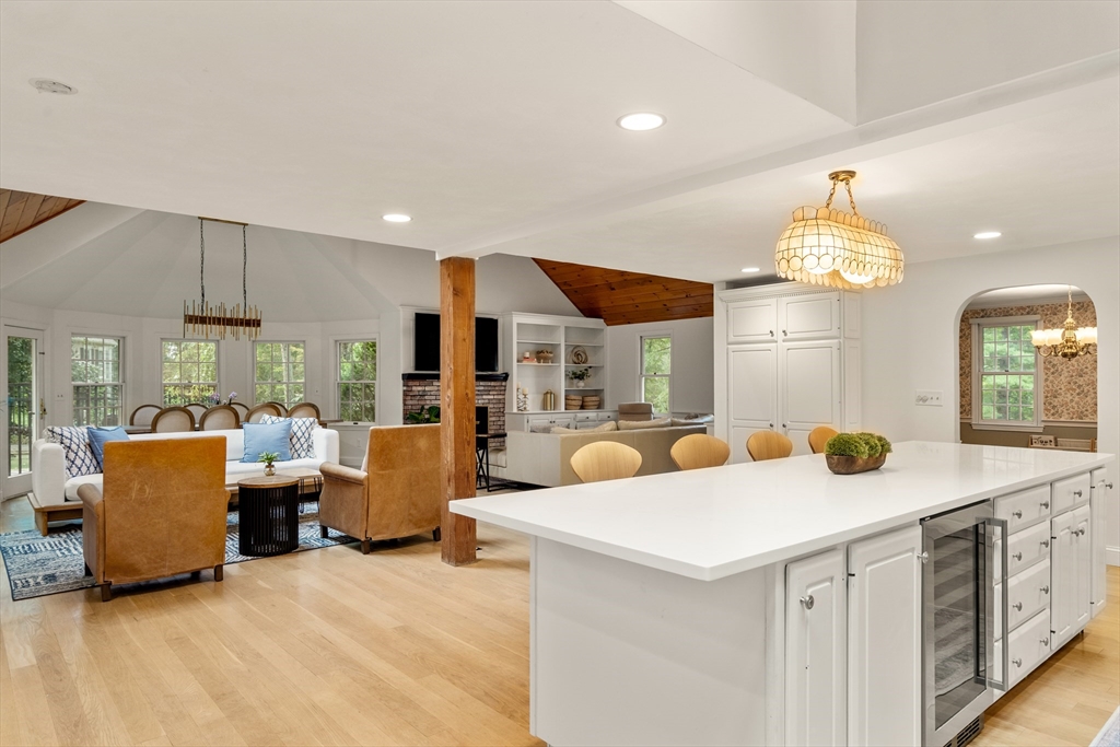 This stately colonial home is nestled in one of Southborough’s premier neighborhoods on a quiet double cul-de-sac, just minutes from Rt 9, 495, Mass Pike, and MBTA. With over 5,000 sq. ft. of flexible living space, this gracious home features 5 bedrooms (incl. a first-floor in-law/au pair suite), 3 full baths, and striking architectural details throughout. The sun-drenched kitchen impresses with wood-plank ceilings, a 12’ quartz island, and abundant cabinetry—opening seamlessly to an expansive great room with skylights, gas fireplace, built-ins, and soaring vaulted ceilings. The spacious primary suite includes a fireplace, oversized walk-through closet/dressing room, and large bath. A bonus room adjoins the suite, perfect for an office/den or nursery. Additional highlights include: garage with workshop/storage and 2 EV chargers, finished walk-out basement with kitchen, heated gunite pool, private acre+ lot, and recent 4" pickled oak hardwoods throughout.