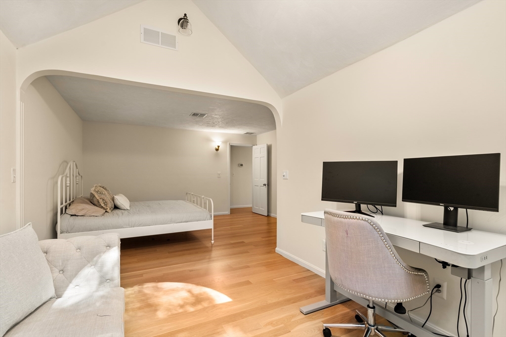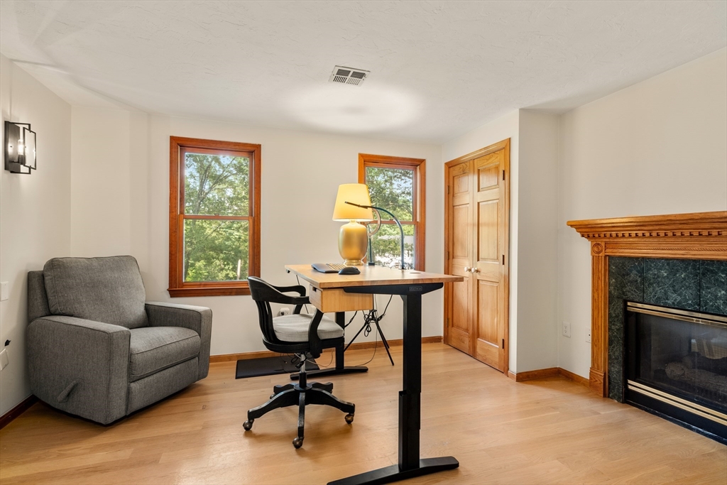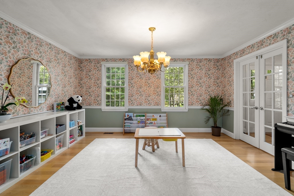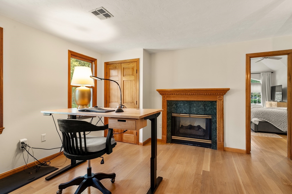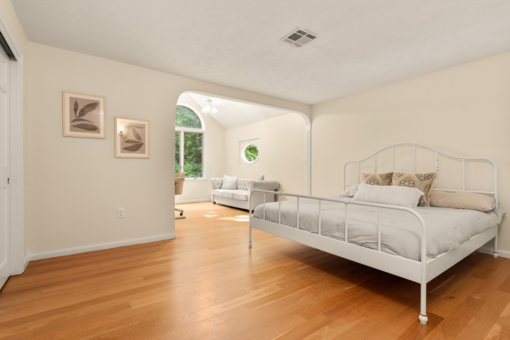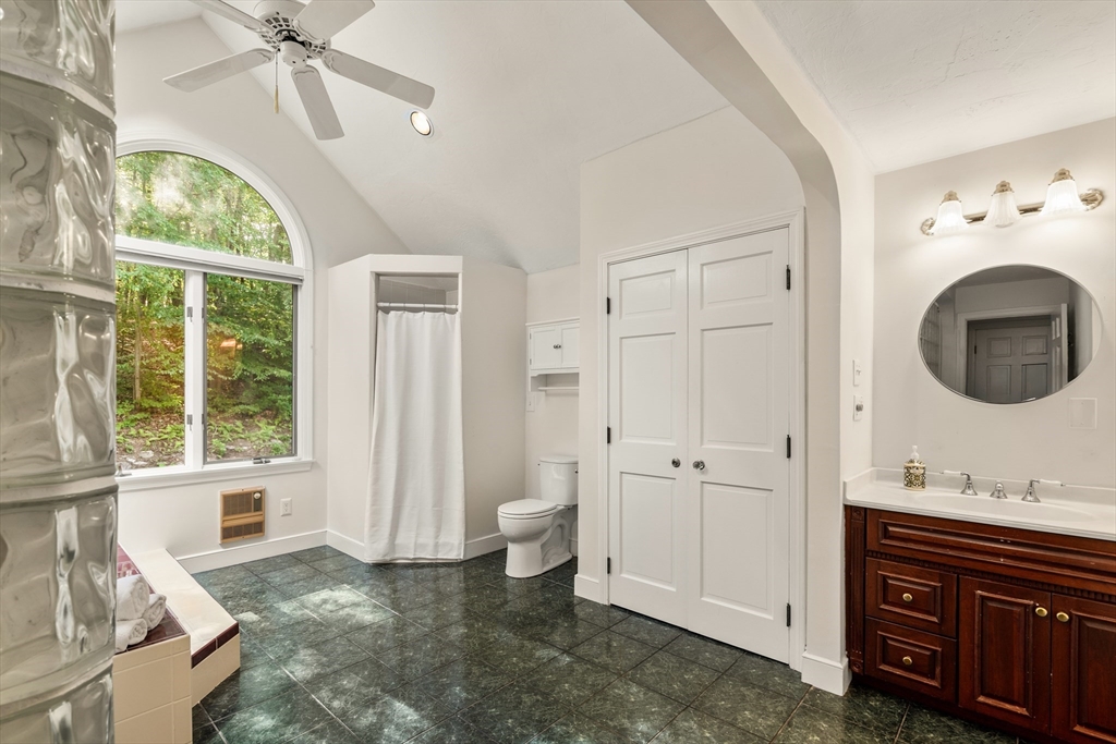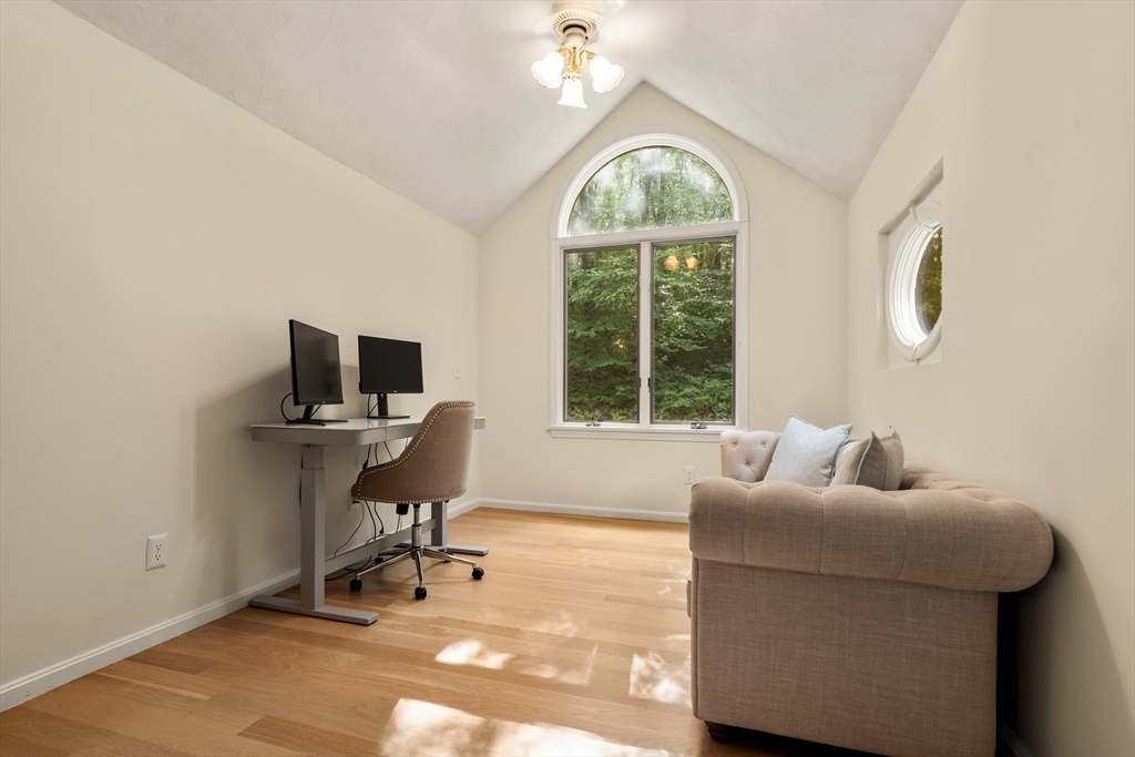 This stately colonial home is nestled in one of Southborough’s premier neighborhoods on a quiet double cul-de-sac, just minutes from Rt 9, 495, Mass Pike, and MBTA. With over 5,000 sq. ft. of flexible living space, this gracious home features 5 bedrooms (incl. a first-floor in-law/au pair suite), 3 full baths, and striking architectural details throughout. The sun-drenched kitchen impresses with wood-plank ceilings, a 12’ quartz island, and abundant cabinetry—opening seamlessly to an expansive great room with skylights, gas fireplace, built-ins, and soaring vaulted ceilings. The spacious primary suite includes a fireplace, oversized walk-through closet/dressing room, and large bath. A bonus room adjoins the suite, perfect for an office/den or nursery. Additional highlights include: garage with workshop/storage and 2 EV chargers, finished walk-out basement with kitchen, heated gunite pool, private acre+ lot, and recent 4" pickled oak hardwoods throughout.