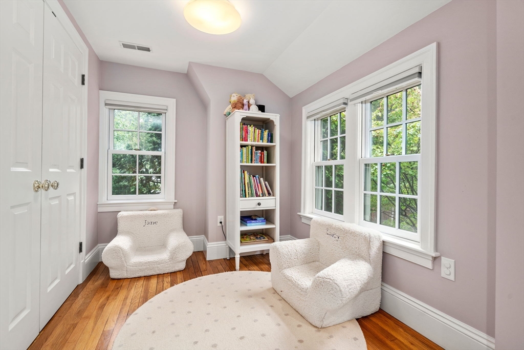 Picture perfect center entrance Colonial on a quite street in desirable West Newton Hill. Renovated in 2016 with timeless updates, it is the perfect mix of old world charm and modern living. The welcoming foyer leads to a large living room with fireplace and custom built-ins as well as a sunroom/family room. The kitchen includes Viking appliances, tons of storage and has direct access to a patio and level yard. The 2nd floor features two gracious bedrooms as well as the primary bedroom/bath with fireplace and additional sitting room/walk in closet. Two additional bedrooms and a full bath are on the 3rd floor. Finished basement includes a half bath and laundry. Close to I-95 and the Mass Pike, shops and restaurants, Brae Burn Country Club, Peirce School.
