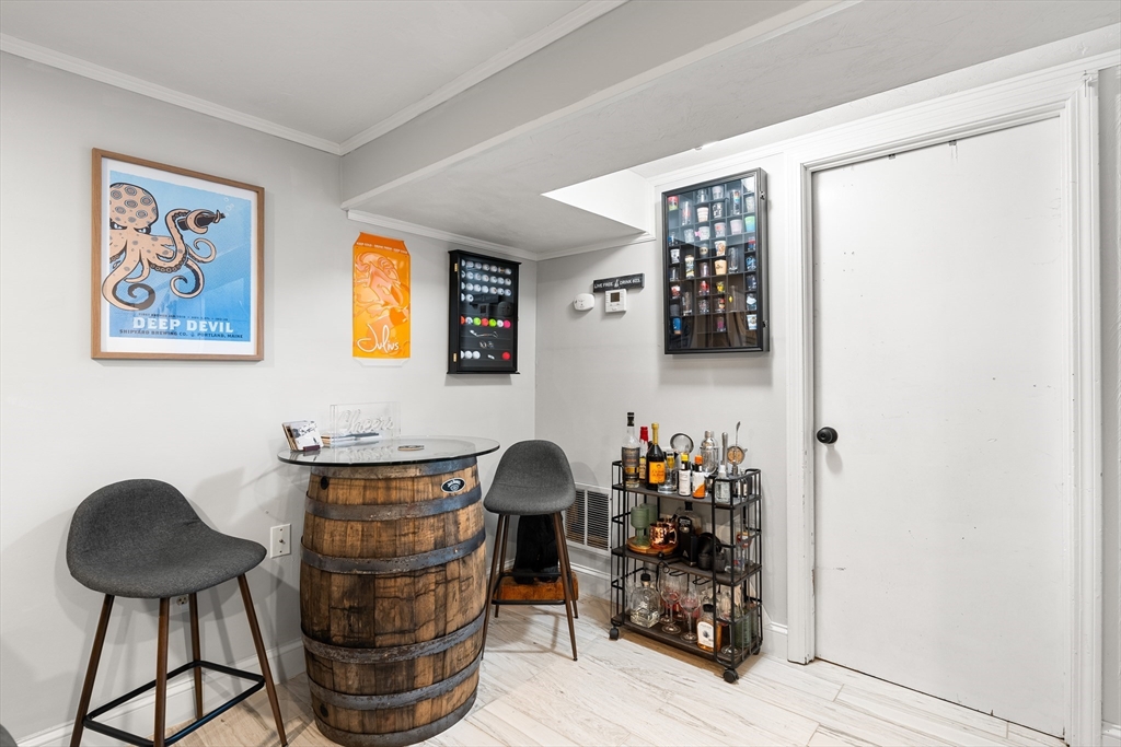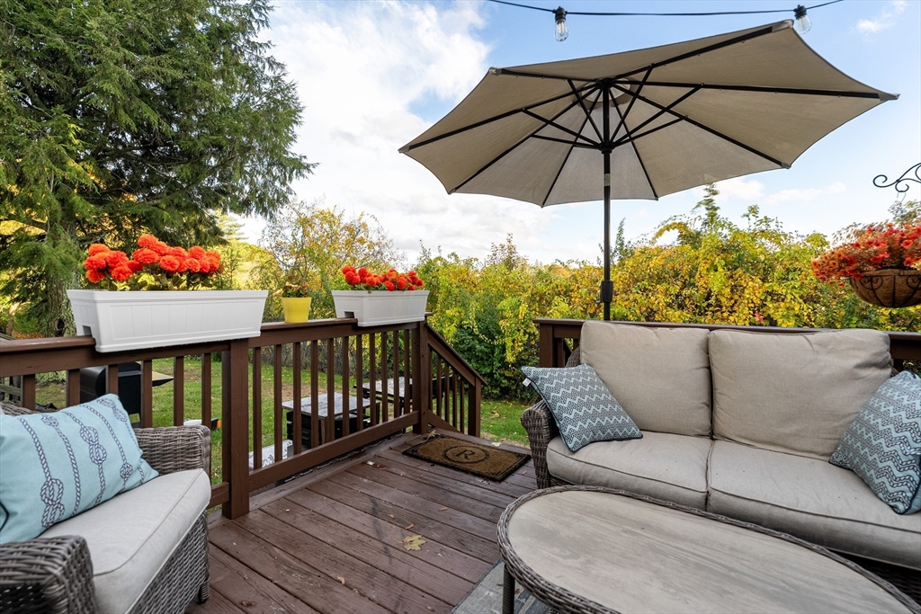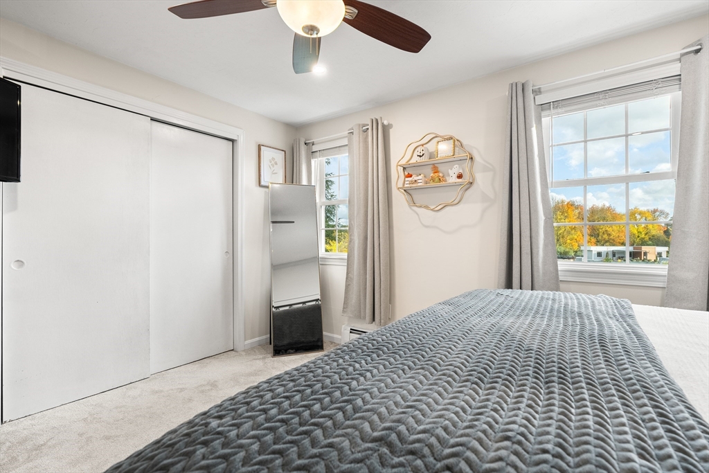Welcome to Halifax Meadow Condominiums. This move-in-ready 2 bed, 1.5 bath home has been beautifully refreshed with new paint, new rugs, new toilets, new lighting and ceiling fans. Plus a new whole-house water filtration system and water pump, along with a new furnace! The kitchen comes with stainless steel appliances and a floor plan opening right onto the private deck, a great space for grilling or enjoying morning coffee. The finished basement features another living space perfect for relaxing or entertaining, while the unfinished side offers ample storage and in-unit laundry. Upstairs the built-in Murphy bed frame will stay, adding both style and function. With one assigned parking space, plenty of guest parking, an in-ground pool, clubhouse, and a short drive to the commuter rail, this home offers the perfect blend of comfort, practicality, and location. Simply unpack and enjoy your life!