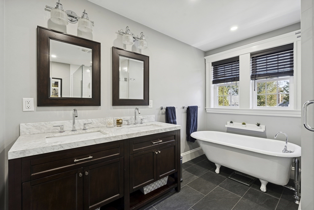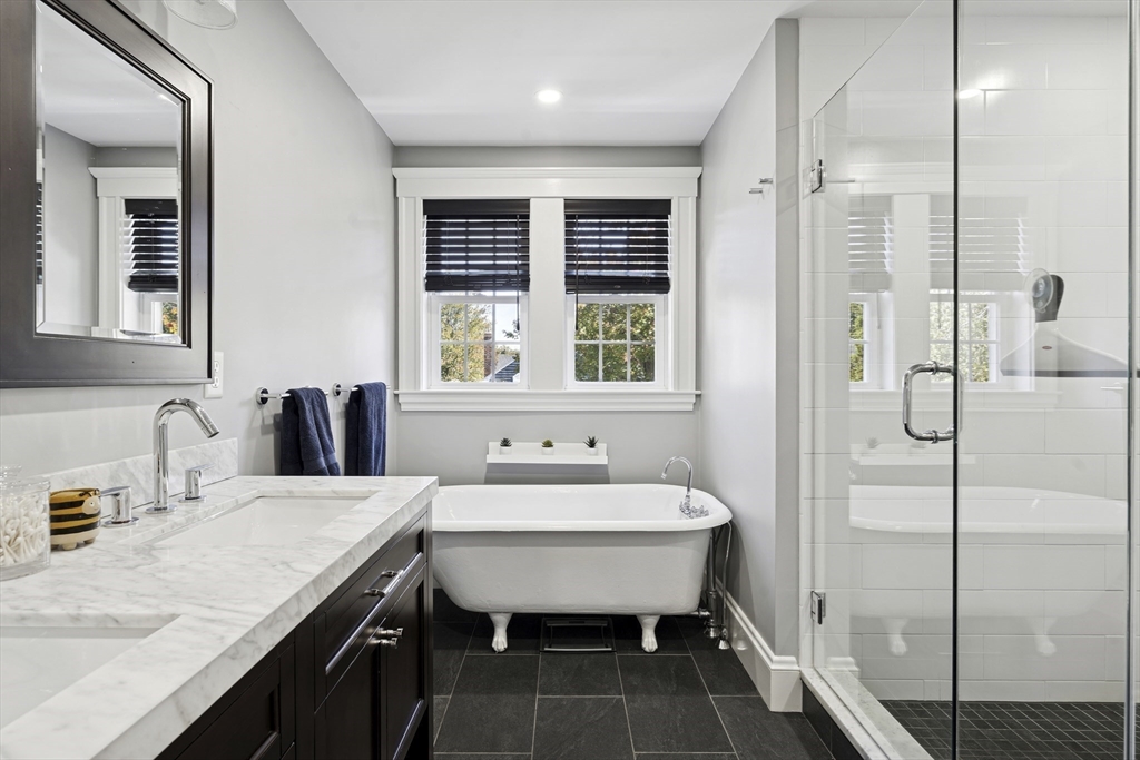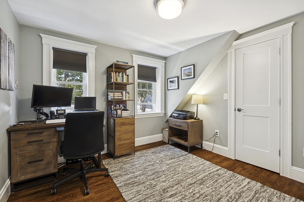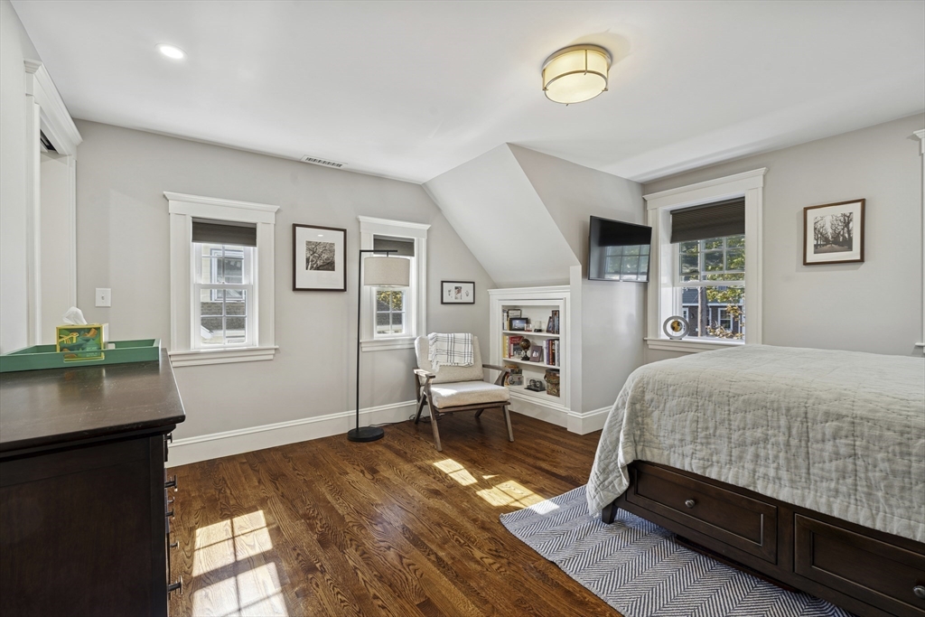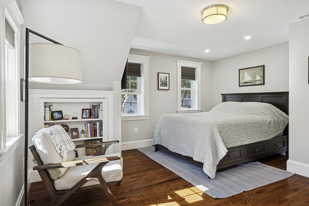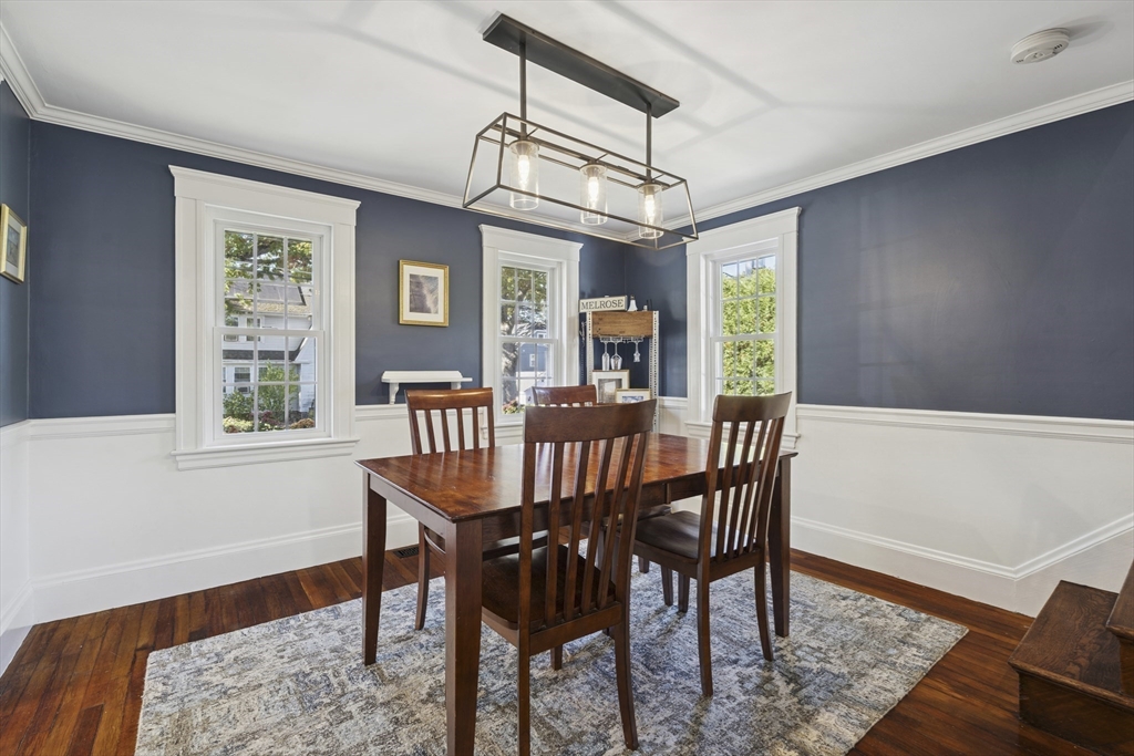 Welcome to this charming Cape Cod style home, where classic charm meets modern comfort in an inviting & warm setting. Located just steps from Hoover School and downtown Melrose, this home offers 3 bedrooms, one w/ custom Murphy Bed, and a beautifully renovated bathroom with soaker tub and separate tiled shower upstairs, plus a convenient half bath on the main floor. The spacious primary bedroom features built-ins, California closets and tons of natural light. The stunning renovated white kitchen features quartzite countertops, stainless steel appliances, and shaker cabinets, leading to a composite deck overlooking a serene yard. Cozy evenings await in the fireplace living room with hardwood flooring, while the dining room adds character with built-ins. Additional amenities include a one-car garage, newer central air conditioning and Heat, + newer windows, insulation, roof and MORE. With its prime location & meticulous maintenance, this home is ready to welcome its next lucky owner!