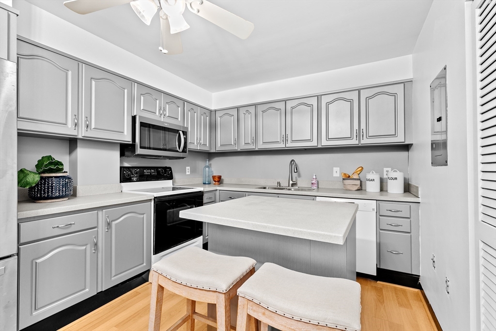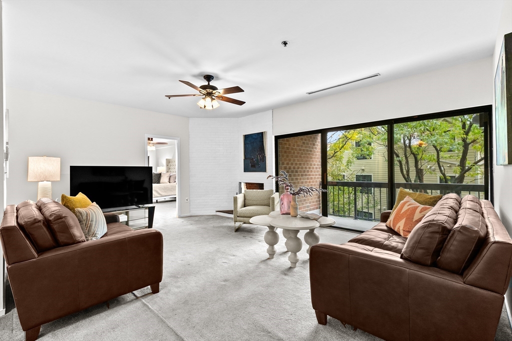 Coolidge Corner Gem! This exquisite 2-bedroom, 2-bathroom condo spans an impressive 1,382 square feet. Upon entering, you'll be greeted by an inviting eat-in kitchen with island, a stove, dishwasher & pantry as well as stainless steel appliances, including a fridge & built-in microwave. The spacious living room adorned with fireplace, seamlessly flows into a dining area & opens up to a private balcony, creating an ideal space for entertaining and relaxation. Retreat to the primary suite featuring a walk-in closet, en suite bath & an exclusive balcony. A second well-appointed bedroom, additional full bath & in-unit laundry round out this condo. With amenities like 24-hour concierge service, a function room, C/A, professional management, 2 ELEVATORS, storage & GARAGE parking, this unit is designed for the ultimate living experience. Guest parking available.. Pet friendly. Located just steps from the T and within walking distance to vibrant shops, eateries, and medical facilities & more!