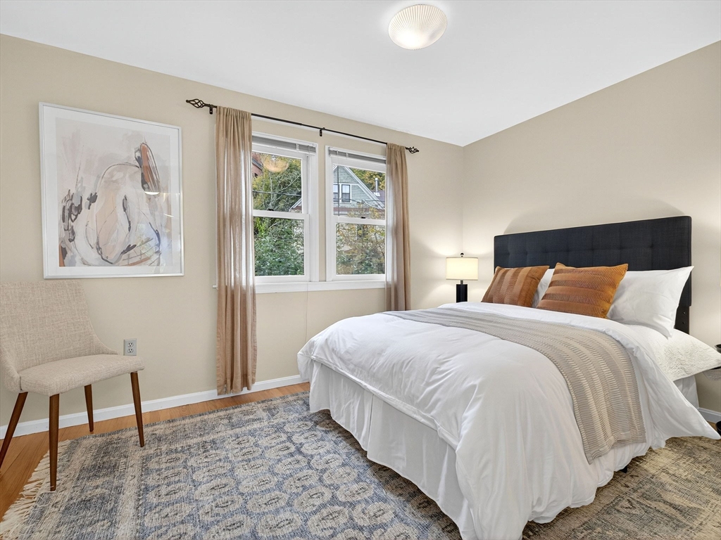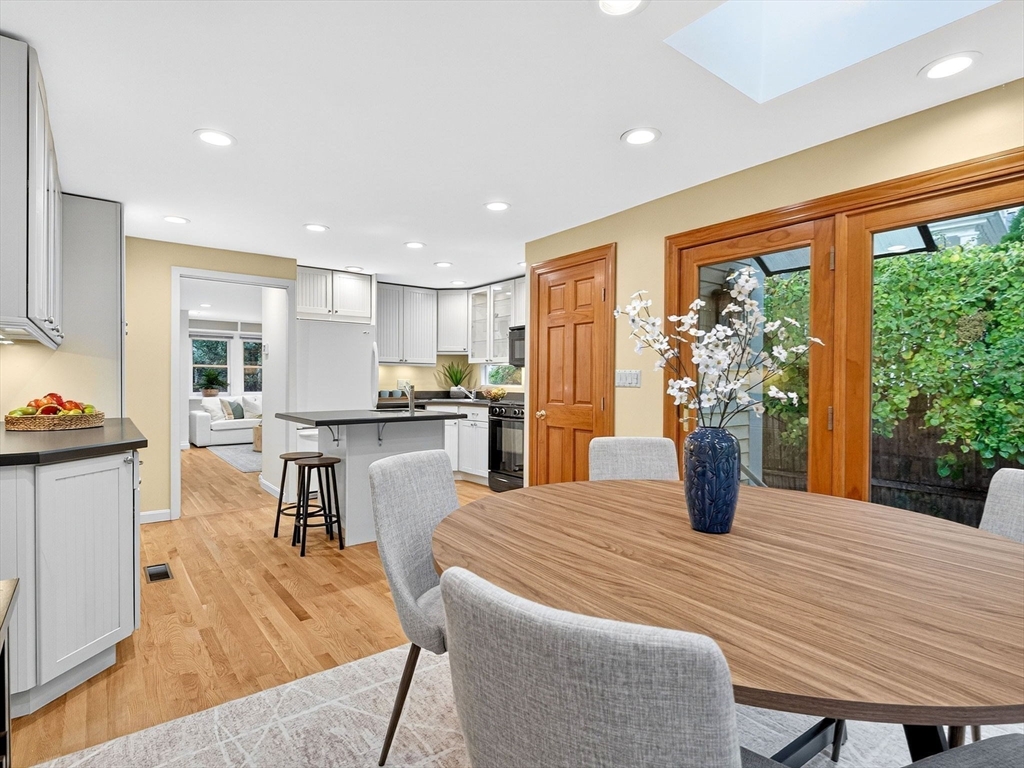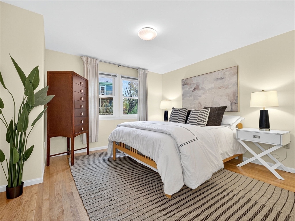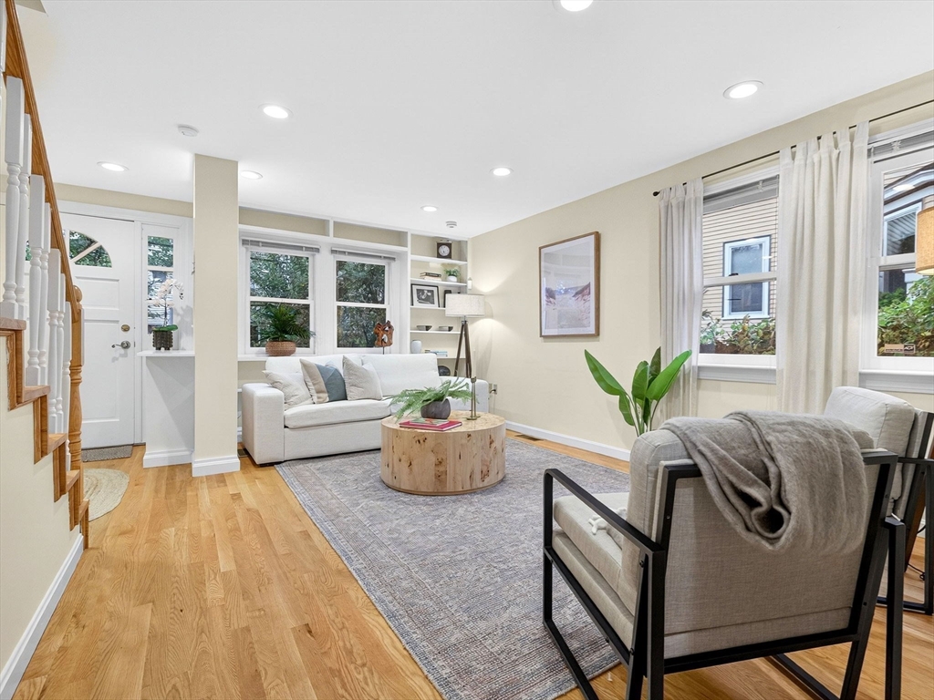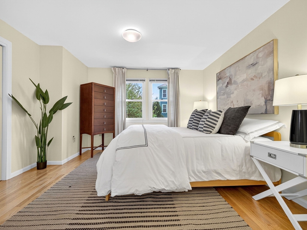 This is the one that checks all of the search boxes—AND MORE! Bright and efficient three-level townhouse built in 1990 with many recent updates throughout. Features 3 bedrooms, 2½ baths, including a large primary suite and beautifully updated bathrooms. The open kitchen to dining area showcases large glass windows overlooking a private garden. Lots of extras include renovated baths, newer roof, a comfortable living room with custom built-in bookshelves, a large top floor bedroom/family room with Cathedral ceiling, and a full private basement offering excellent storage and bonus usable space. Private outdoor space and garden, off-street parking, and central A/C add to the comfort and convenience. Fantastic Jamaica Plain location just blocks from the Orange Line, shops, and restaurants—this home truly combines city living with a touch of tranquility!