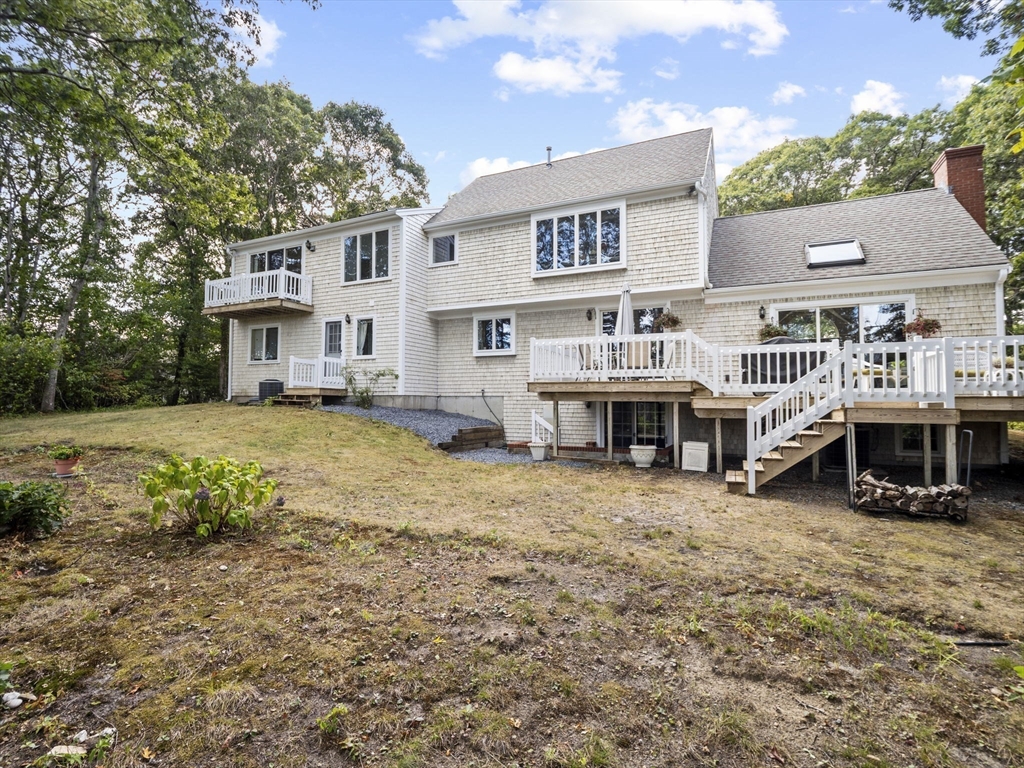 Welcome to 15 Goldie Way, Hyannis — a stunning waterfront retreat on Fawcett Pond offering 2,775 sq. ft. of living space. This 3-bedroom, 2.5-bath home features a first-floor bedroom and laundry, a huge family room with a fireplace and gleaming hardwood floors, a separate living room and dining area along with a chef’s kitchen perfect for entertaining. The spacious primary ensuite bedroom is located on the second level, complete with a private deck to step out and enjoy the pond views. An additional bedroom and full bathroom complete the upstairs. Enjoy a two-car attached garage and full walkout basement for added space and convenience. Outside, a sprawling deck overlooks the water — ideal for relaxing or hosting gatherings. Central air ensures year-round comfort. The property is being sold with an adjoining 17,424 sq. ft. lot at 19 Goldie Way, offering added space and water views. All within 1mile of downtown Hyannis, and within 3 miles of Craigville, Kalmus and Veterans Beach.